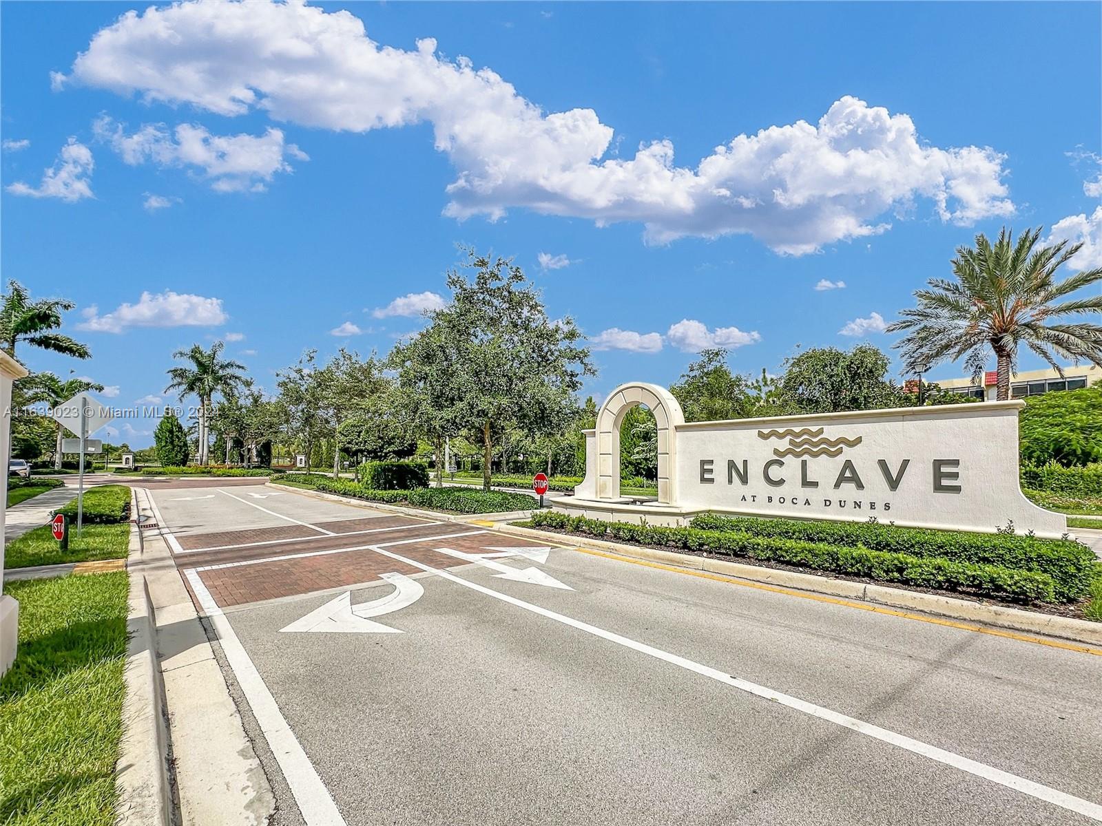 Stunning Townhouse with lake and golf course view. This luxurious and modern property is located in the prestigious gated community of Enclave at Boca Dunes. The home features an open concept with integrated dining and living areas, with high ceilings. 3 bedrooms, plus bonus room and 2.5 bathrooms. Gorgeous gourmet kitchen, walk-in closets in every bedroom, main room with his and hers walk-in closets. Hurricane impact windows. LOW HOA. Two car garage, Oversized Driveway, A+ Schools. No weight restrictions for 2 pets. Great amenities included in the clubhouse. Pool, Spa, Fitness center, Playground, walking paths.