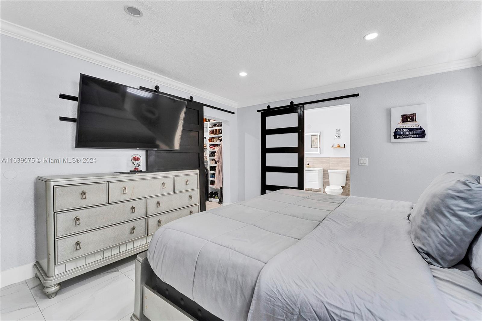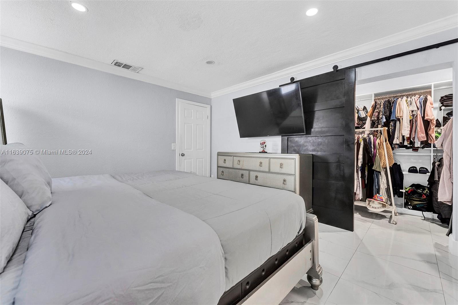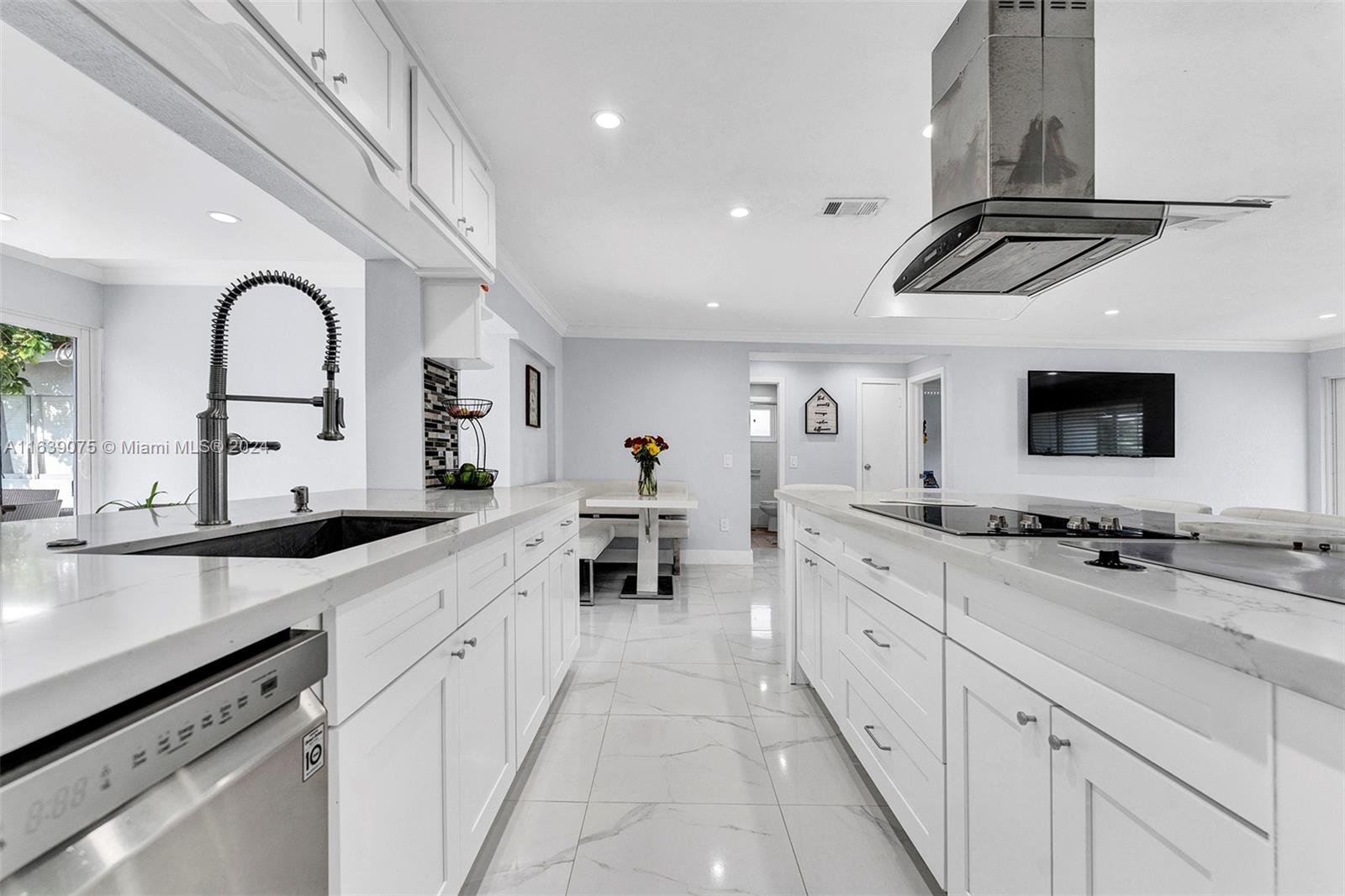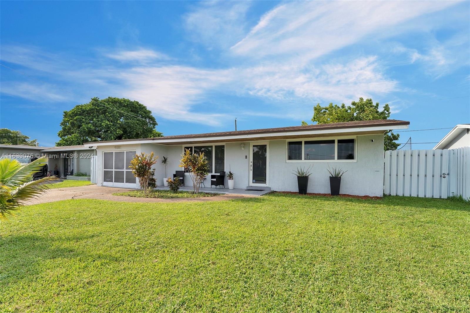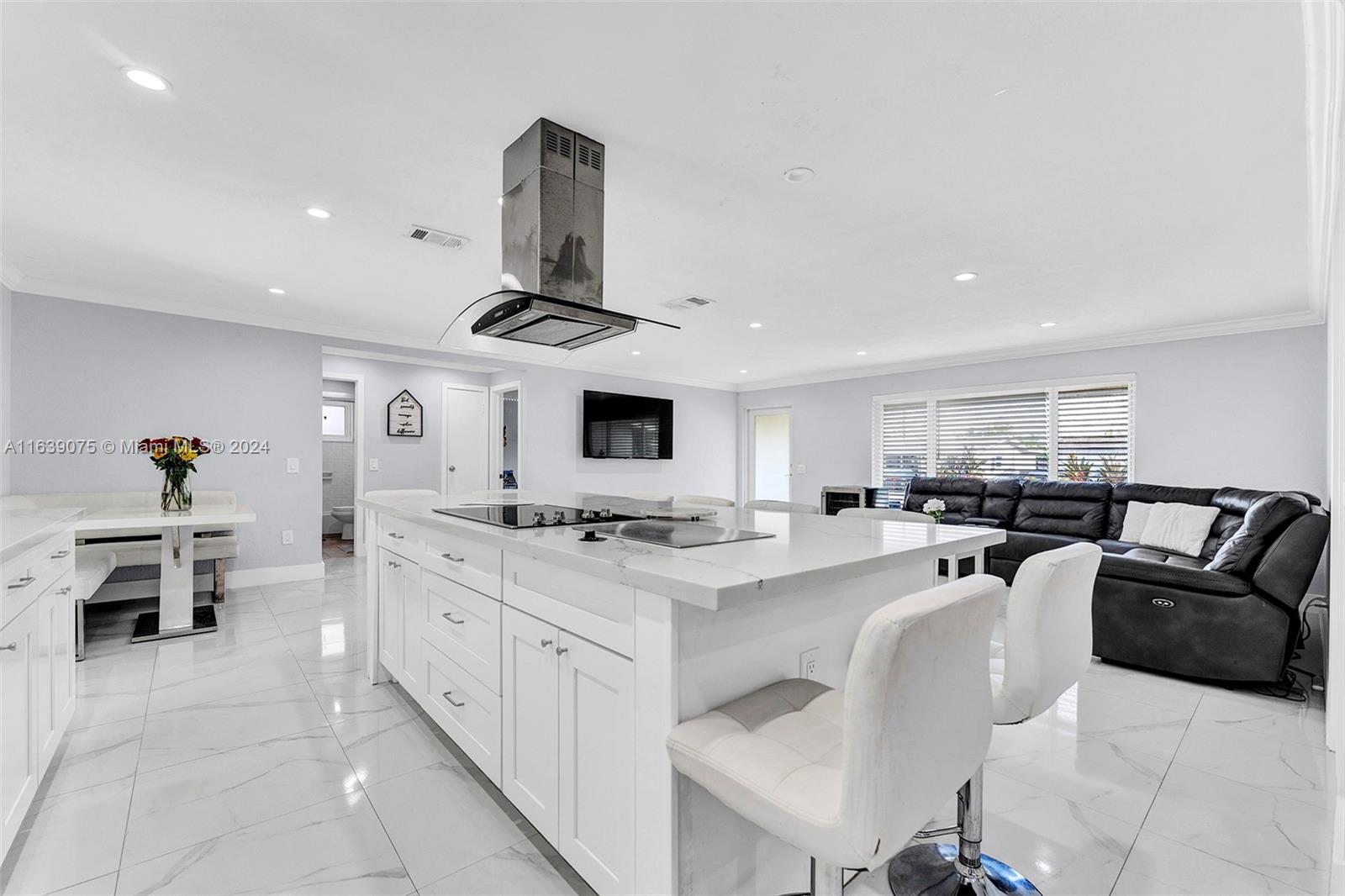 Welcome to the home you've been waiting for, boasting over $100k in upgrades. This stunning residence features 3 bedrooms, 2 bathrooms, open-concept floor plan that offers ample space for a large family and entertaining guests. The kitchen is a true centerpiece, designed to seat 8 people and equipped with quartz countertops, a Hibachi grill, an electric stove, and stainless-steel appliances. The master bedroom includes a walk-in closet, while the master bathroom features a spacious shower. In 2020, the owner made significant improvements, including a new roof, impact windows, porcelain floors, popcorn ceiling removal, recessed LED lighting, crown molding, an updated electrical panel, a new water heater, and a metal fence enclosing the entire backyard. Note: Garage is converted/4th bedroom.