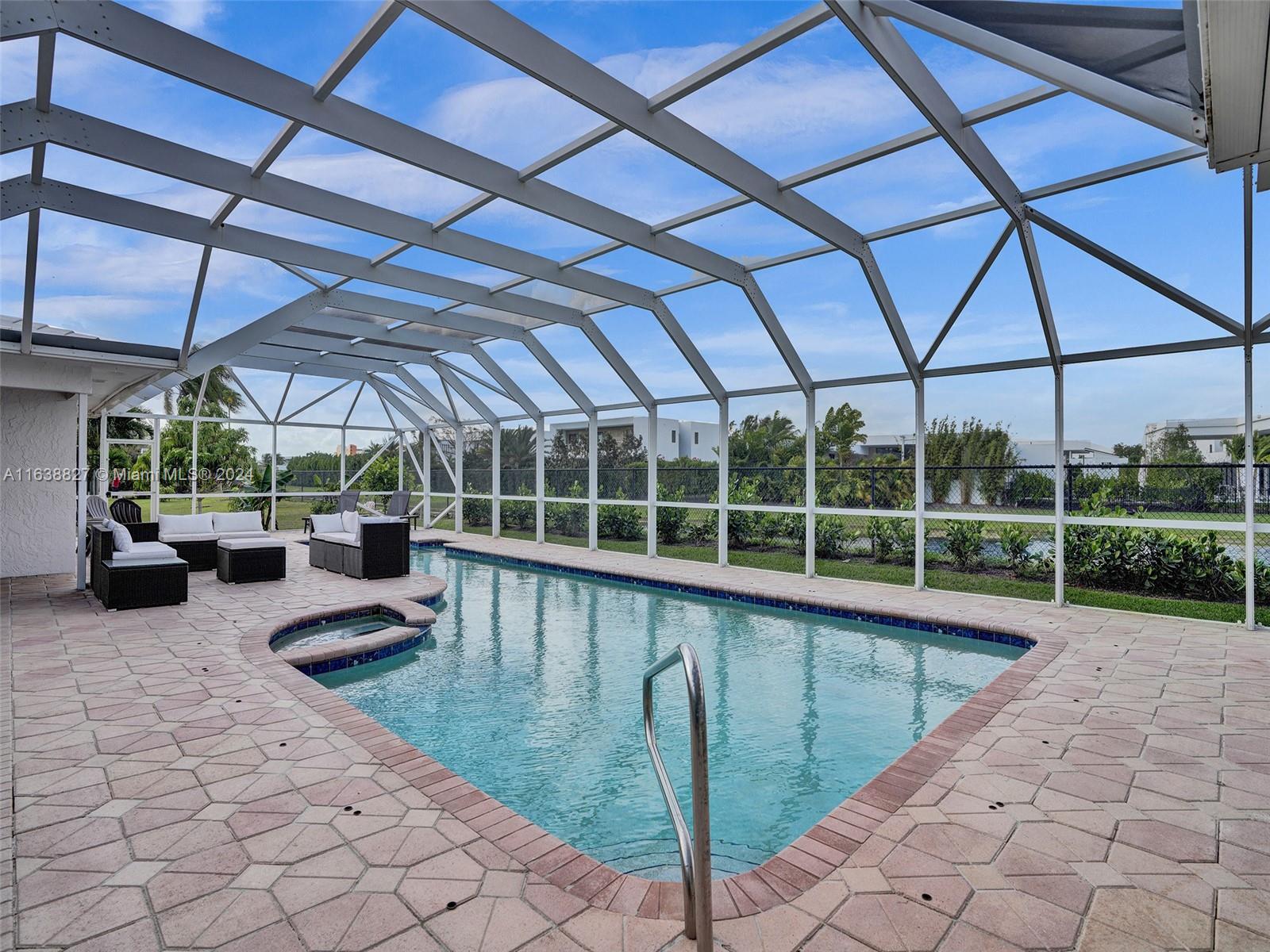 Boasting a vast living space, this 4/4 pool home sits on a corner cul de sac in desirable Weston. Oversized lot and spacious living space for ideal Florida living. Featuring a sunlit atrium this home offers multiple living and entertaining spaces in an inviting layout. Including an office/den that can be converted into a 5th bedroom. Large bedrooms with primary tucked away. Oversized eat in kitchen with a gas stove, double oven, stainless steel appliances, new wine cooler, all overlooking your outdoor entertainment area. Enjoy your screened in pool with a removable safety net offering year round entertainment. Two car garage with extra storage, an outdoor storage/workshop attached. GE generator. Two brand new AC units with nest learning thermostats installed May 2024.