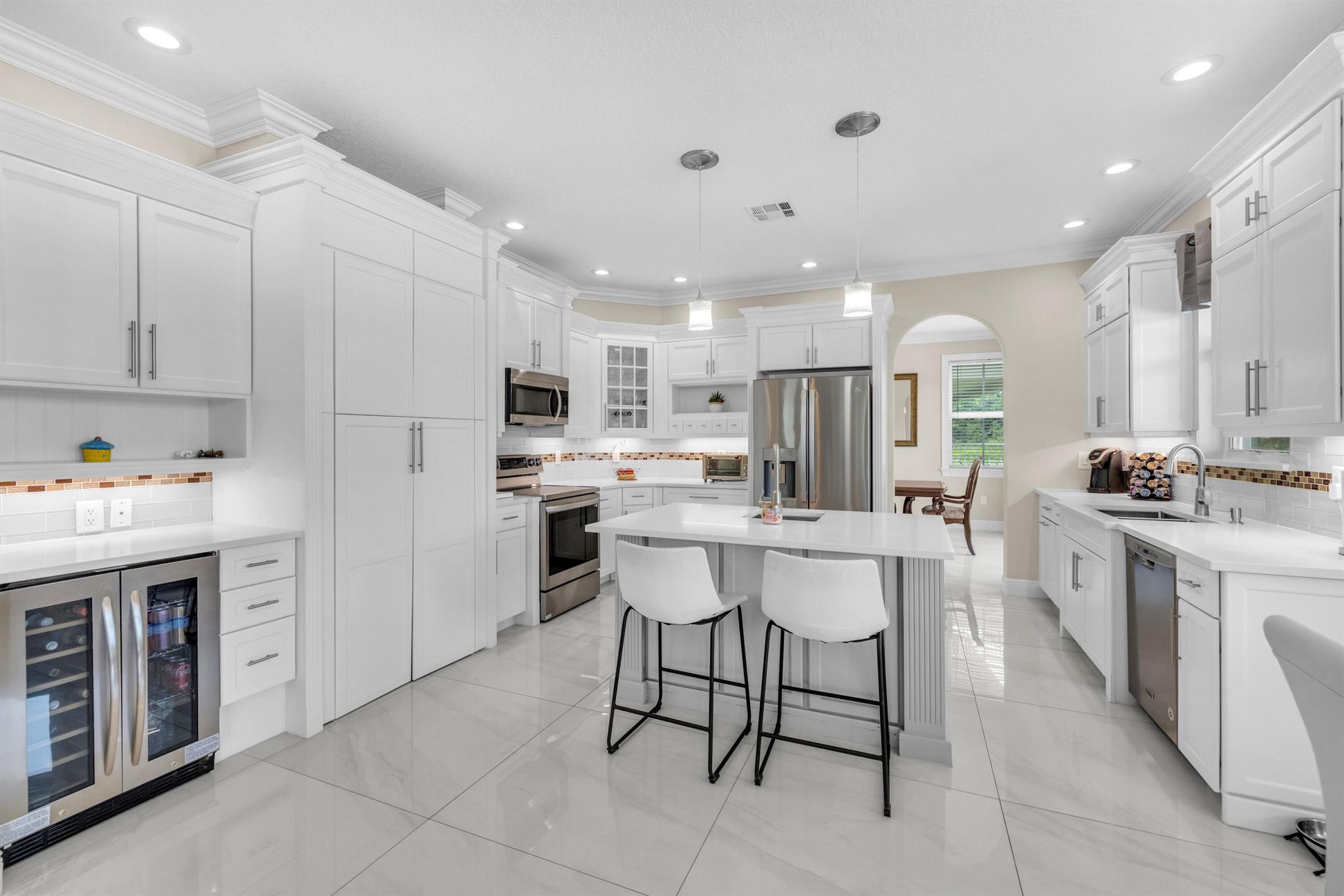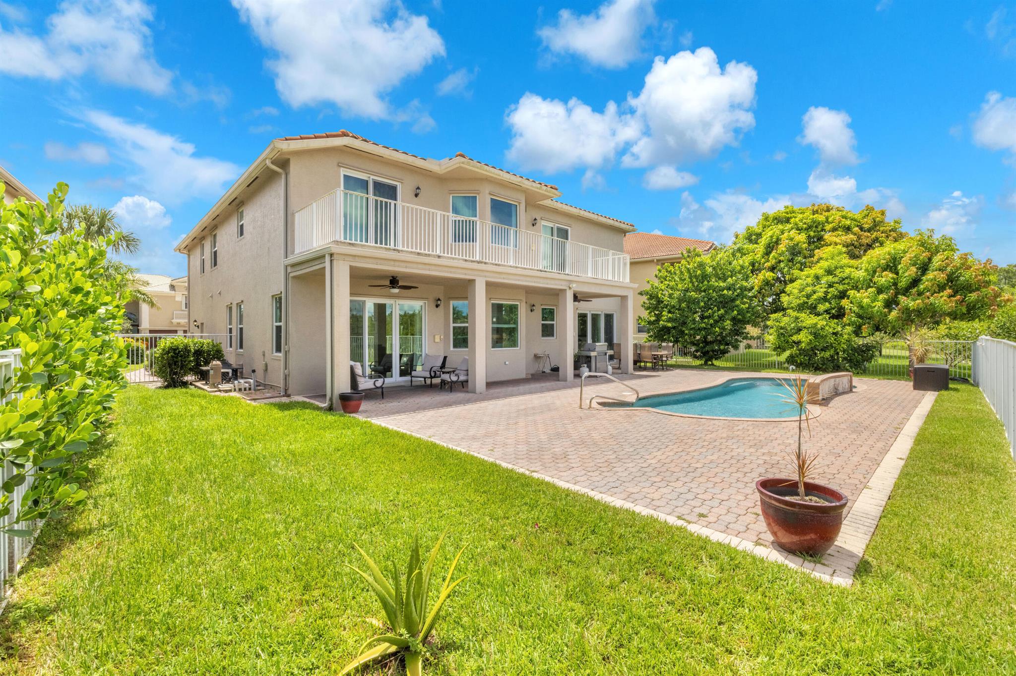 Welcome to this beautifully remodeled 6-bedroom, 4-bathroom home in Wellington's prestigious Olympia community. The open floor plan features stunning new tile flooring and a gorgeous staircase. The modern kitchen includes new appliances, elegant finishes, and a spacious walk-in pantry. The master suite offers a private balcony overlooking a fenced-in yard with a pool and serene garden view, ensuring privacy with no homes behind due to a preserve. The home also boasts a three-car garage. Rest easy during storm season with all new impact windows. Enjoy resort-style amenities like pools, a gorgeous clubhouse, and more in this family-friendly community with top-rated schools. Offering home warranty as well. This is a MUST SEE!