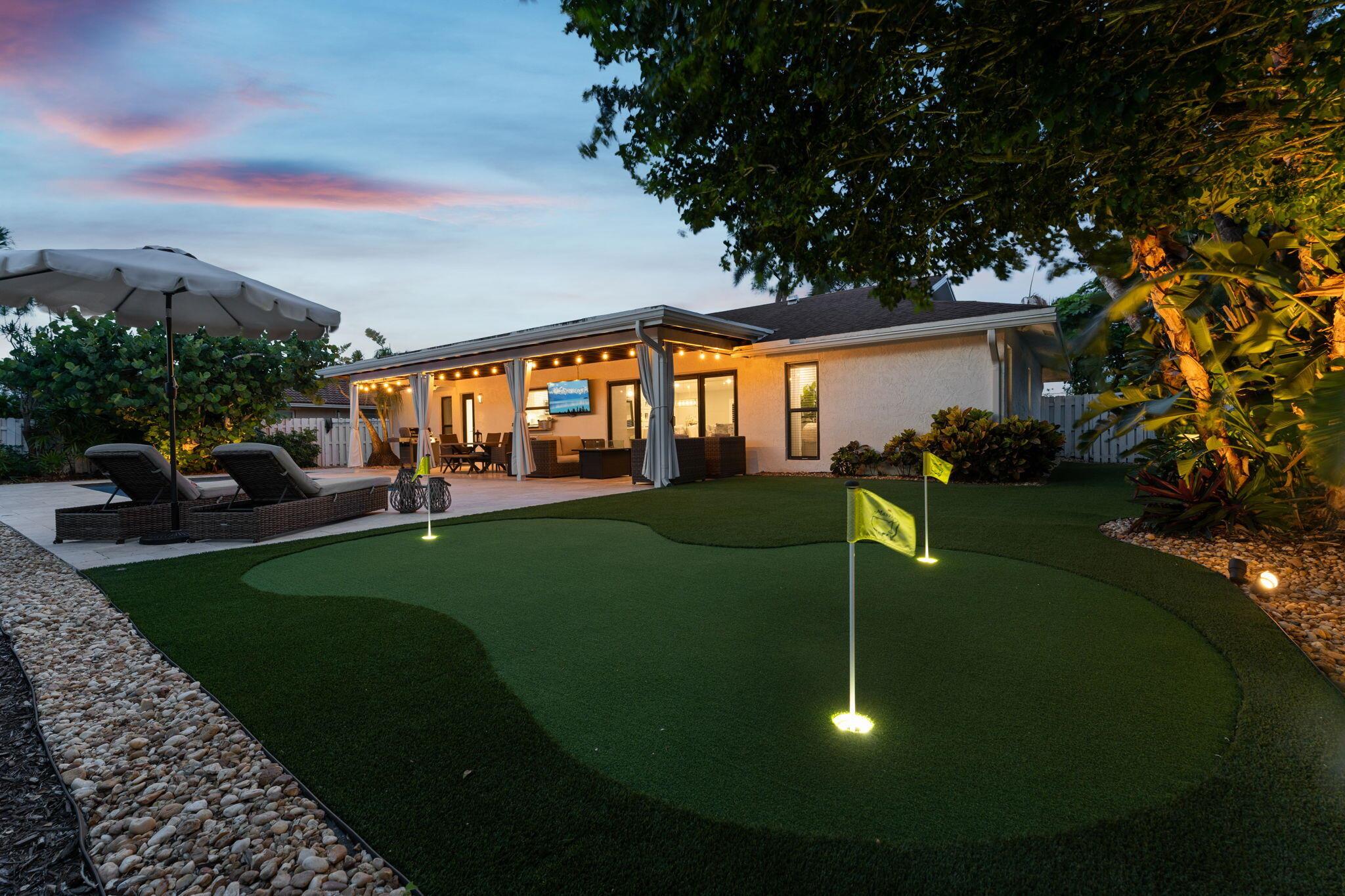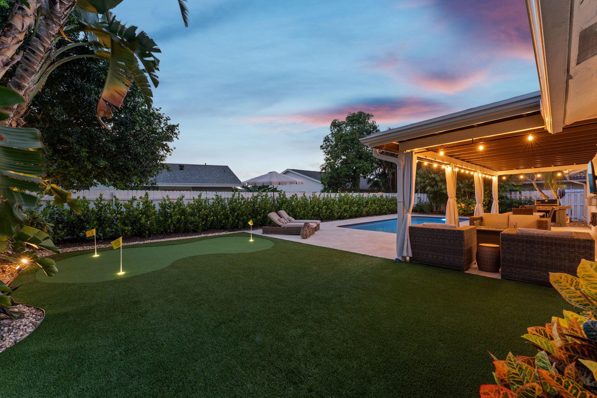 Welcome to your Dream Home in the Serene and Sought-After Pheasant Walk Community of Boca Raton! This Recently Renovated & Pristinely Maintained 3-Bedroom, 2-bath Residence Boasts a Spacious and Inviting Open & Split Floor Plan With Modern Finishes with Elegant Warm Comforts and timeless appeal. The Heart of the Home features a Stylish Kitchen with Stainless Steel Appliances, Oversized Island with Built in Wine Cool & Cabinetry, while seamlessly flowing into the open-concept dining and living areas. The Private Backyard Oasis is the True Highlight of this Property. Enjoy endless Sunny Days lounging by the Recently Resurfaced Pool or Practice your Putting Skills on your Very Own Putting Green. The Backyard is Thoughtfully Designed with a Covered Patio Area, Featuring an Outdoor