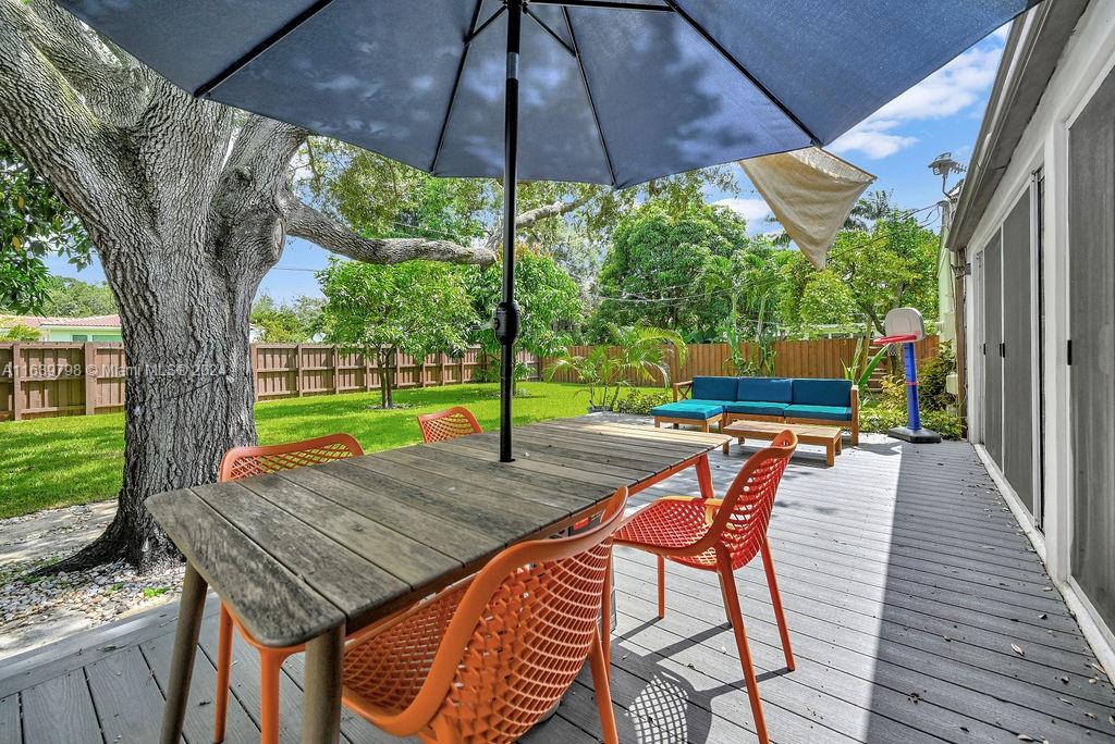 Discover this beautiful Miami Shores home, offering 3 bedrooms, 2 bathrooms, and a versatile office/flex room. Enjoy generous living and dining spaces, an updated kitchen that seamlessly flows into the family room, and abundant natural light throughout. The spacious backyard features a large deck with ample room for a pool, all nestled on a tranquil dead-end street framed by beautiful mature oak trees. With impact windows and doors, a newer roof, a laundry room, and ample parking, this home provides both comfort and convenience. Located in a NO FLOOD ZONE with easy access to the Miami Business District, Miami Beach, Wynwood, and the Design District.