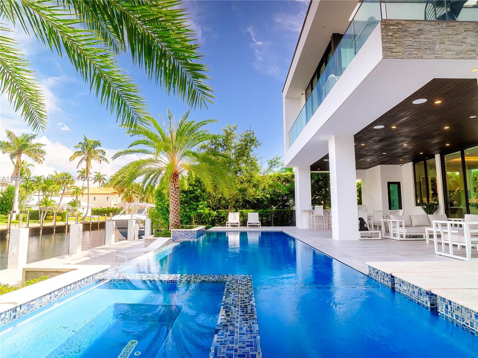 This contemporary masterpiece in prestigious Las Olas Isles was meticulously designed by Michael Gray in 2023. This stunning home boasts 7 beds, 7 full baths, and 2 guest baths on a 11,000 square foot lot with 100 feet of water frontage. The 30 foot ceilings create an elegant airy, light-filled ambiance. The state-of-the-art Italian kitchen complete with Sub-Zero appliances, 2,000 square foot outdoor space with summer kitchen, 40 foot infinity pool and hot tub cater to avid entertainers. This home also features an elevator and a common media/recreation room leading out to the rooftop. This residence offers a 3-car garage with height for lifts and ample parking in the driveway. Las Olas Boulevard, the beach, and vibrant nightlife offer the epitome in luxury living.