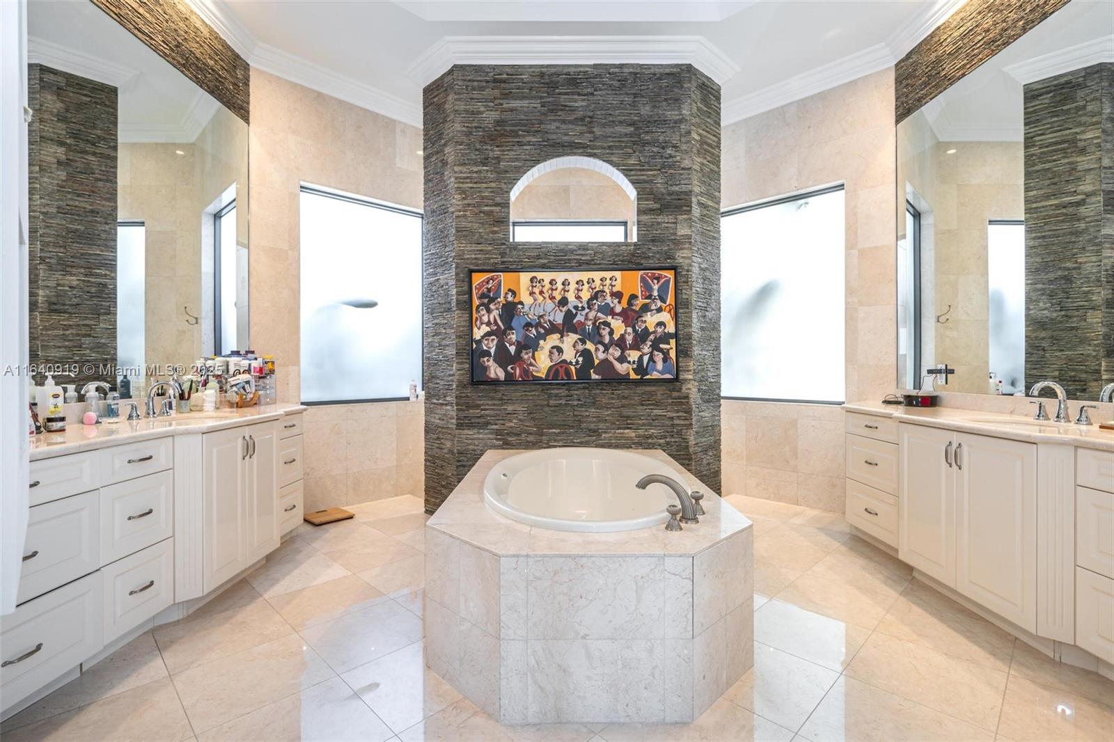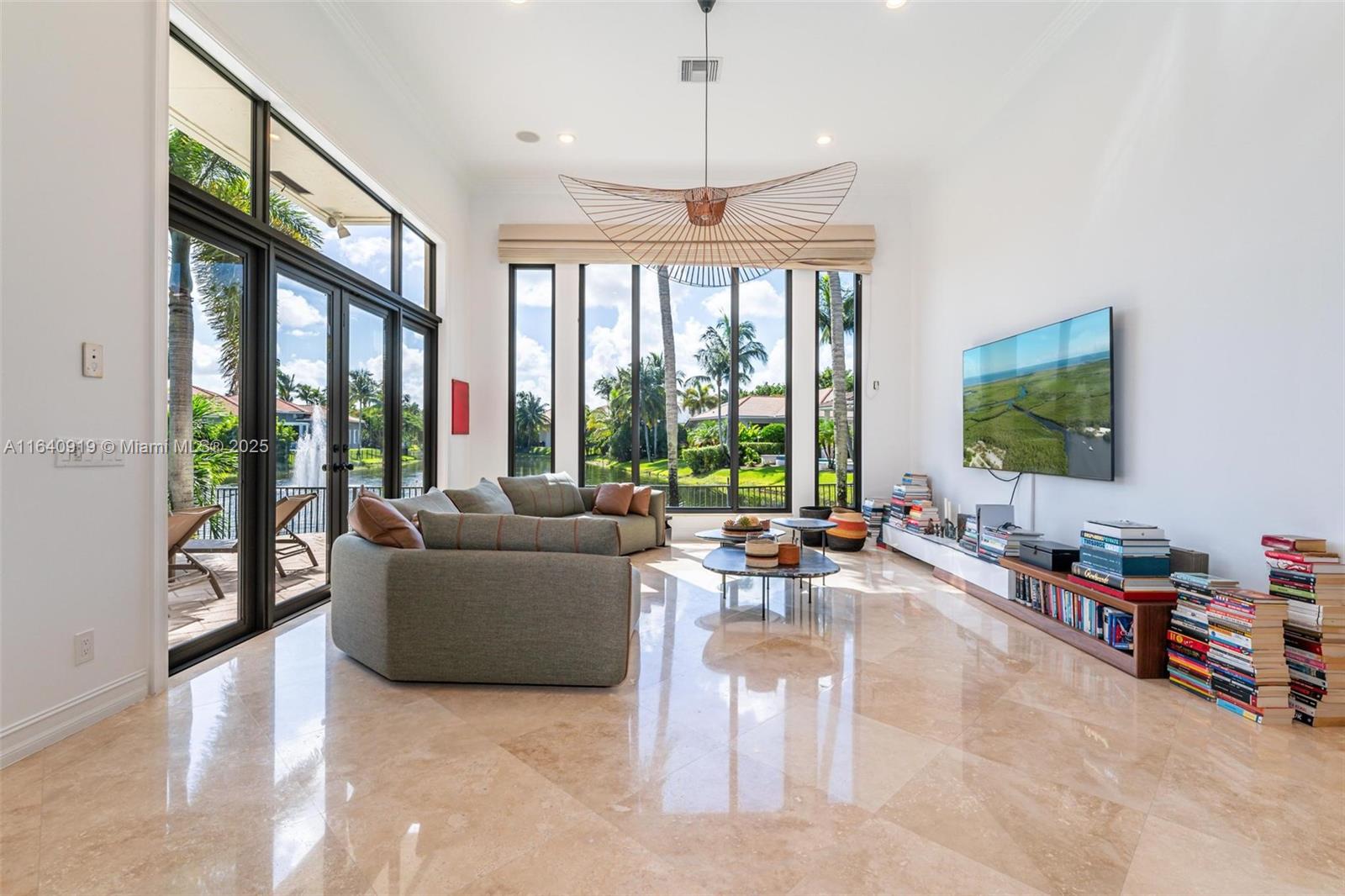 Experience luxury with this one-of-a-kind waterfront home, The roof was completely replaced in 2025. boasting a newly designed open floor plan perfect for modern living. The heart of this home is the double island gourmet kitchen, featuring stainless appliances, a built-in refrigerator, wine cooler, and exquisite cabinetry. Elegant marble floors flow throughout the home, leading you to 5 cozy bedrooms and 5 stylish baths, including a versatile den. Step outside to a large,pool with breathtaking wide water views, all from an oversized patio deck. Additionally, a 3-cargarage comes airconditioned and upgraded with new porcelain flooring, alongside practical closet built-ins. Embrace the high life at Hawks Landing Club&Spa, a community renowned for its exclusivity and charm.All impact windows.