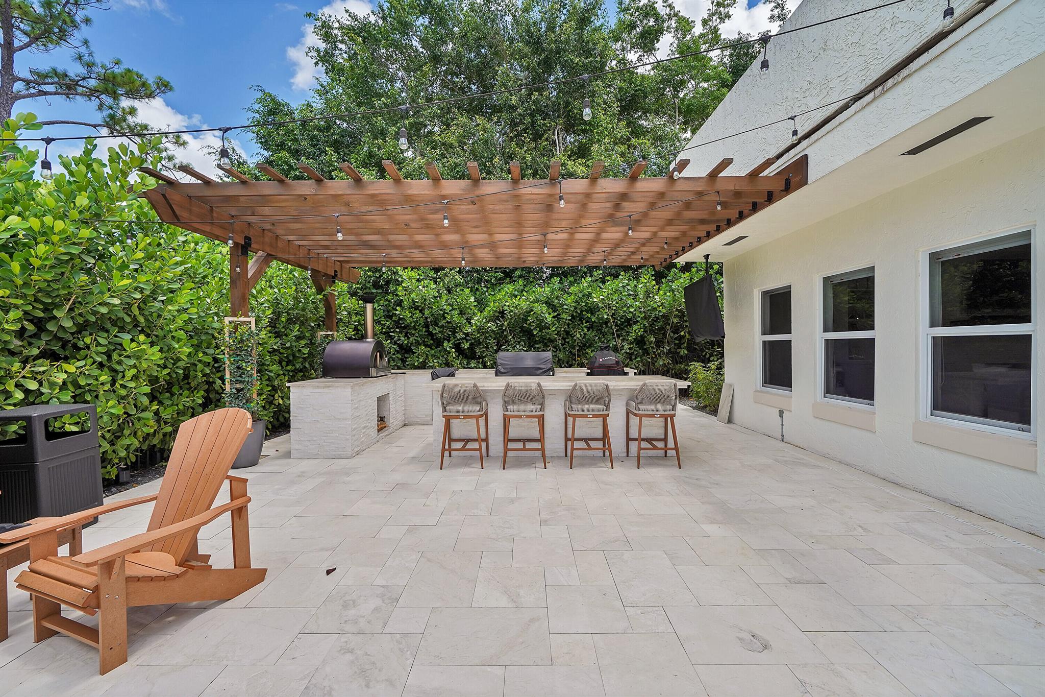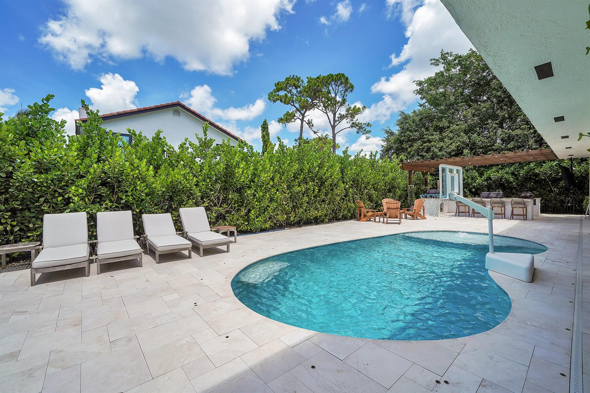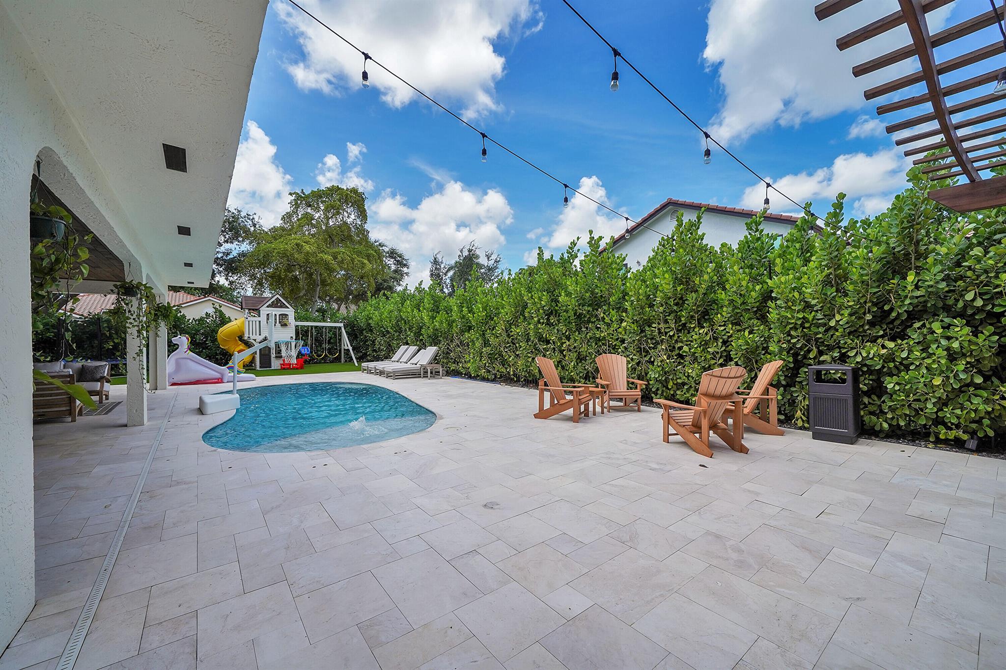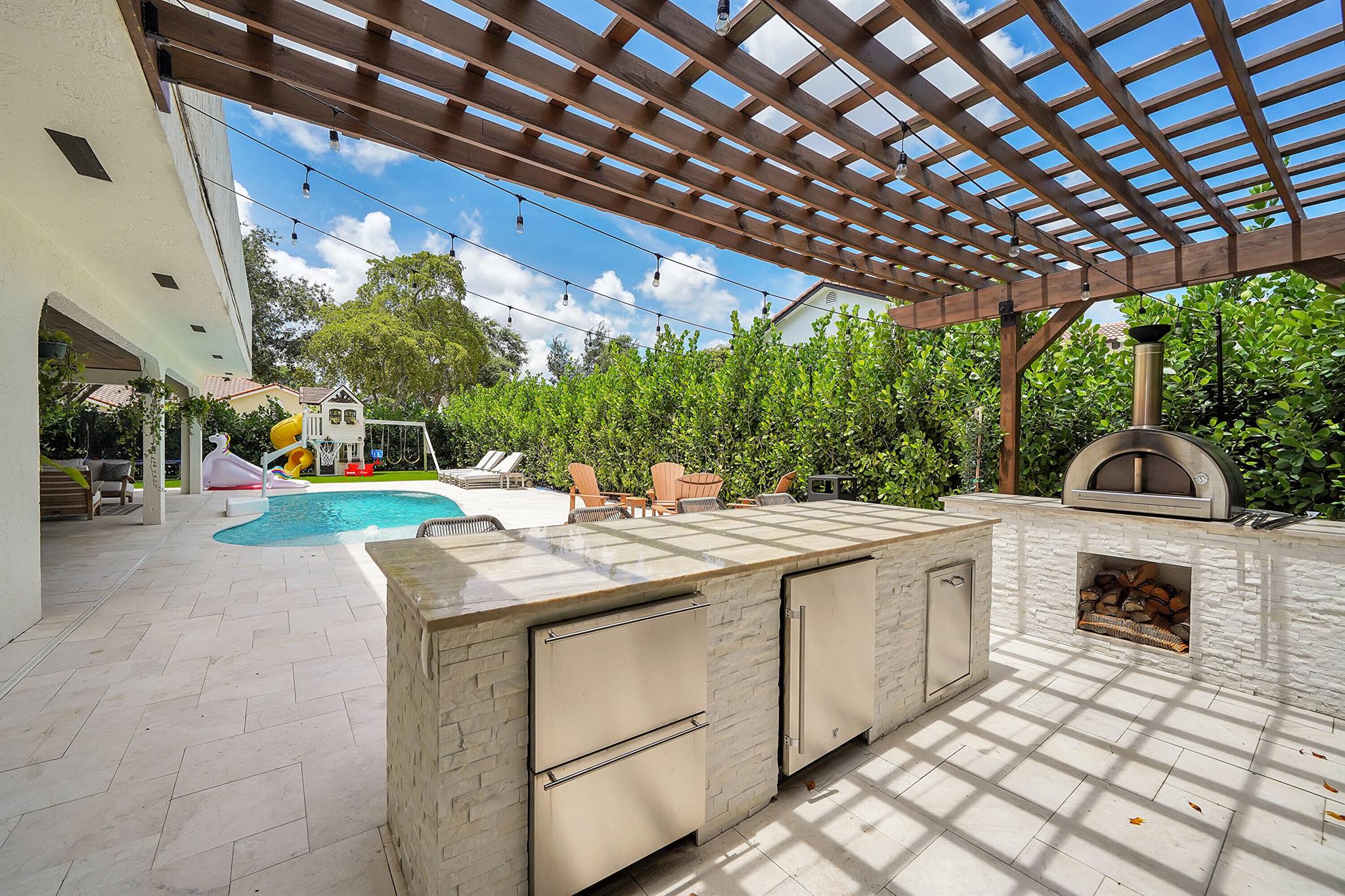 Located in the prestigious New Floresta neighborhood, this newly remodeled home has a Wine Room, large walk-in pantry, full outdoor kitchen with a pizza oven and a large pool patio great for entertaining. On a corner lot, this house has all the comforts and privacy.Great neighborhood conveniently located near prime shopping, great private and public schools , minutes from the ocean and golf courses.