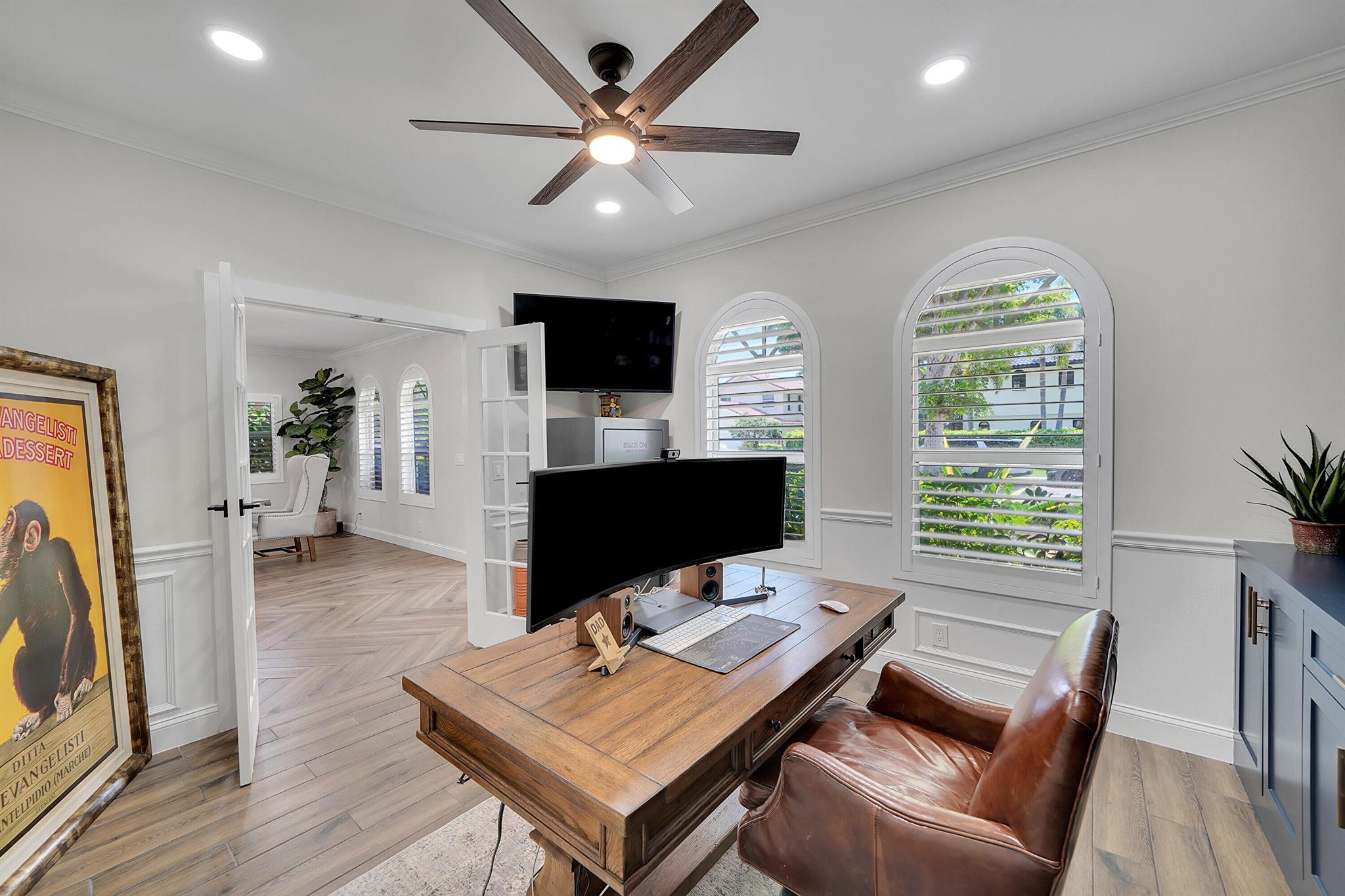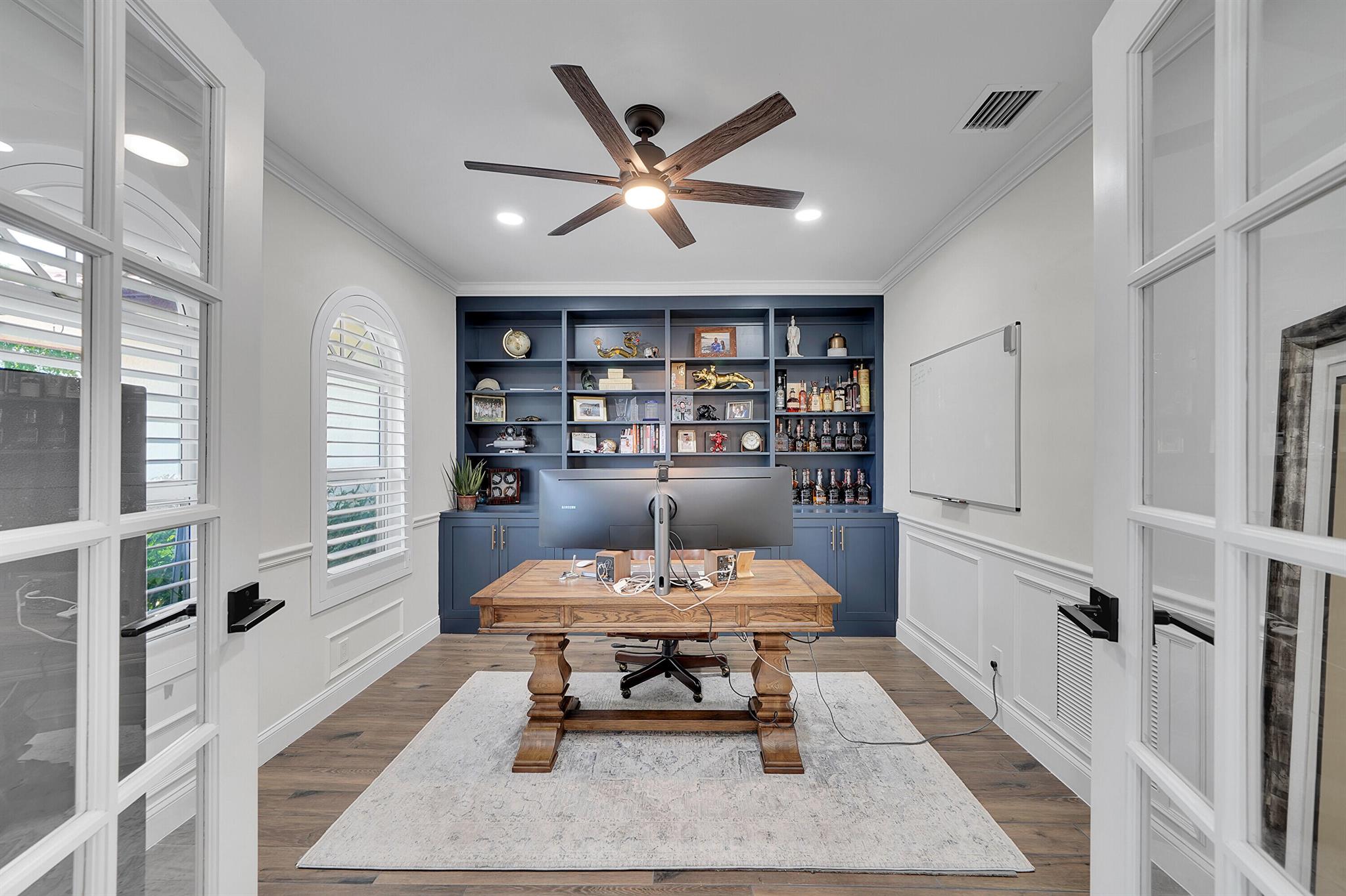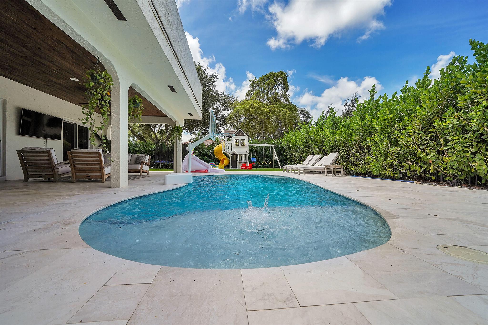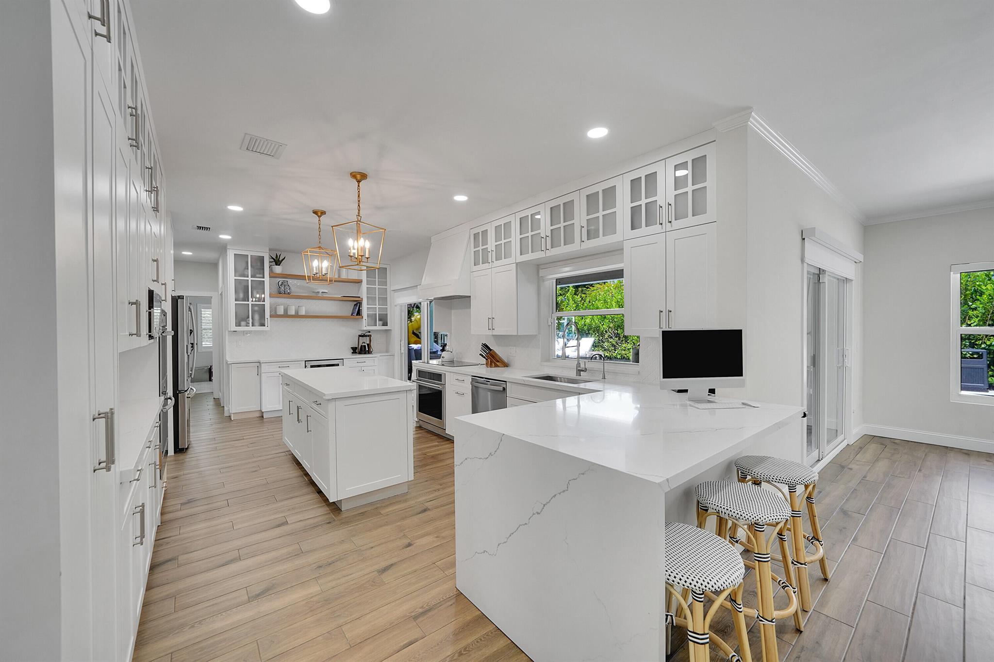 Located in the prestigious New Floresta neighborhood, this newly remodeled home has a Wine Room, large walk-in pantry, full outdoor kitchen with a pizza oven and a large pool patio great for entertaining. On a corner lot, this house has all the comforts and privacy.Great neighborhood conveniently located near prime shopping, great private and public schools , minutes from the ocean and golf courses.
