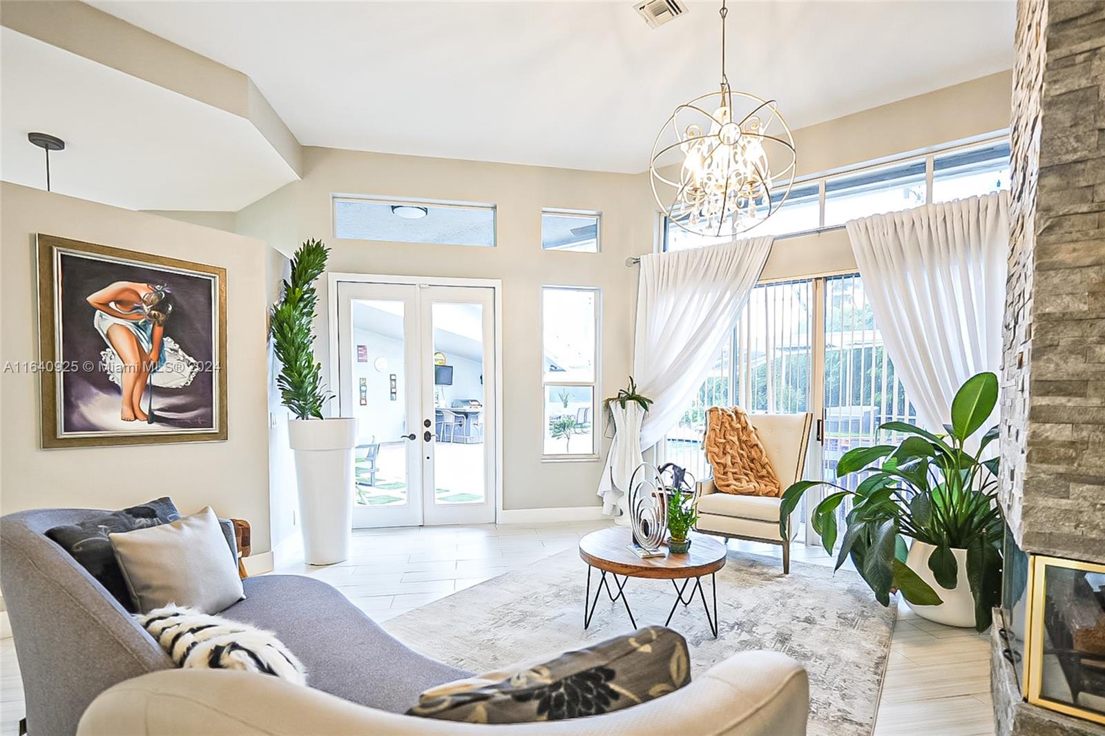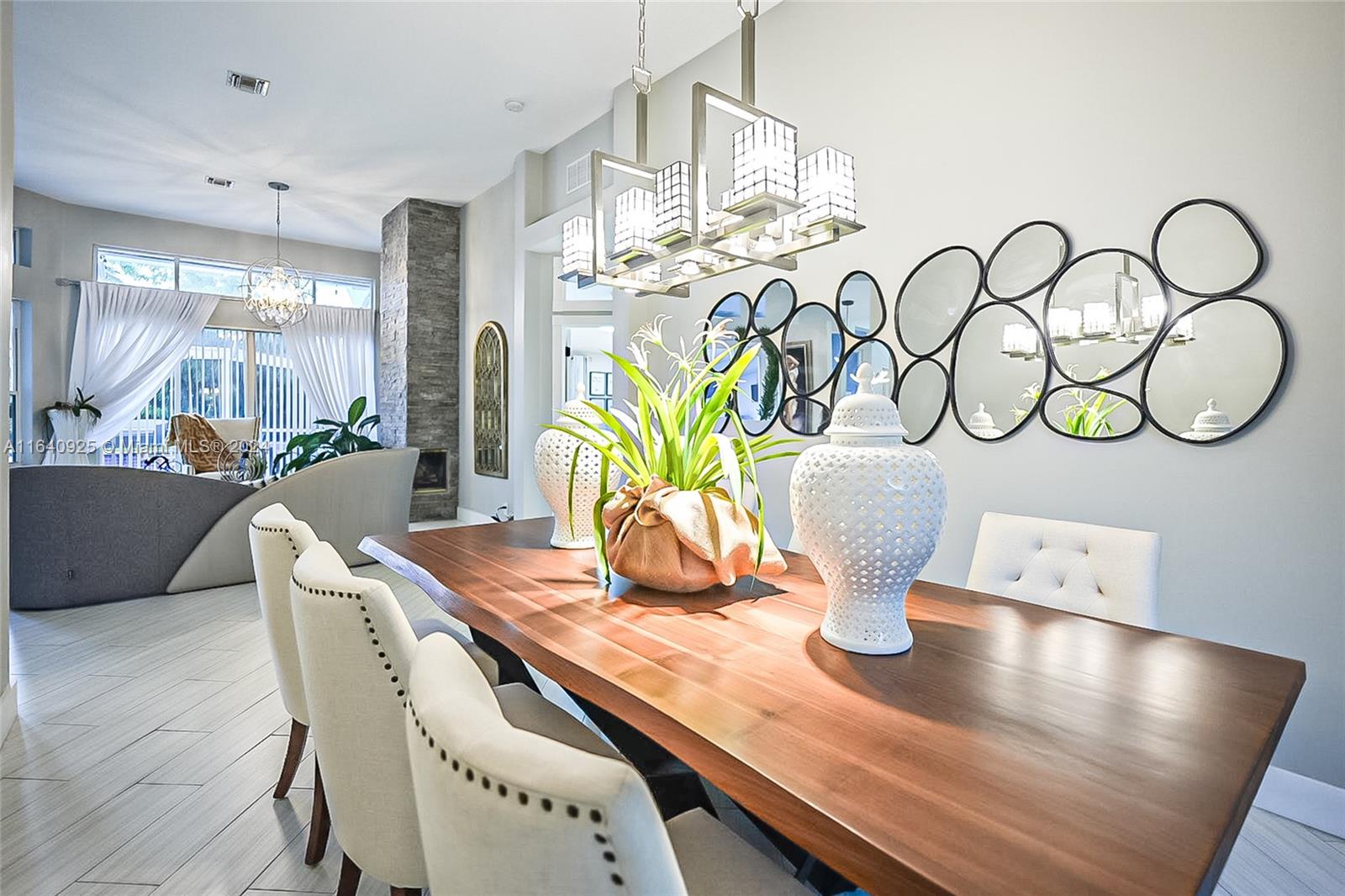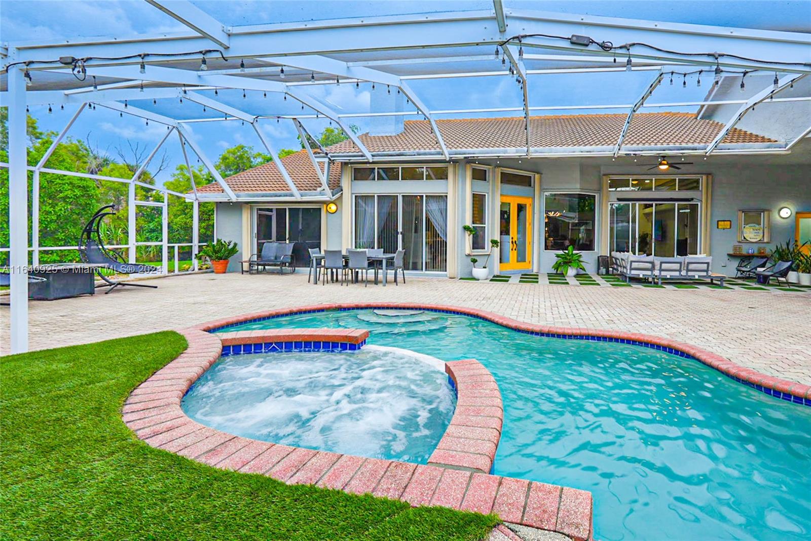 Beautiful, fully renovated house inside Fairways of Eagle Trace Community, New AC (2022), Roof replaced in 2018—gorgeous pool with a Jacuzzi, enclosed with plenty of space for entertaining with outdoor kitchen—modern open kitchen concept with quartz countertops. Everything you can think of has been remodeled with excellent taste, two tankless water heaters (2022 & 2024). The house sits in a culdec sac, and one bathroom leads to the pool area. One of the most oversized lots is a 15,626 SF pie-shaped lot with a canal view and plenty of fruit trees. NOTE SOME ITEMS INSIDE THE HOME DO NOT CONVEY ON THE SALE; SEE ATTACHMENTS—NO HOA APPROVAL REQUIRED. THE TAX ROLL DESCRIPTION ON # THE BEDROOMS IS WRONG. THE HOUSE IS 4/3