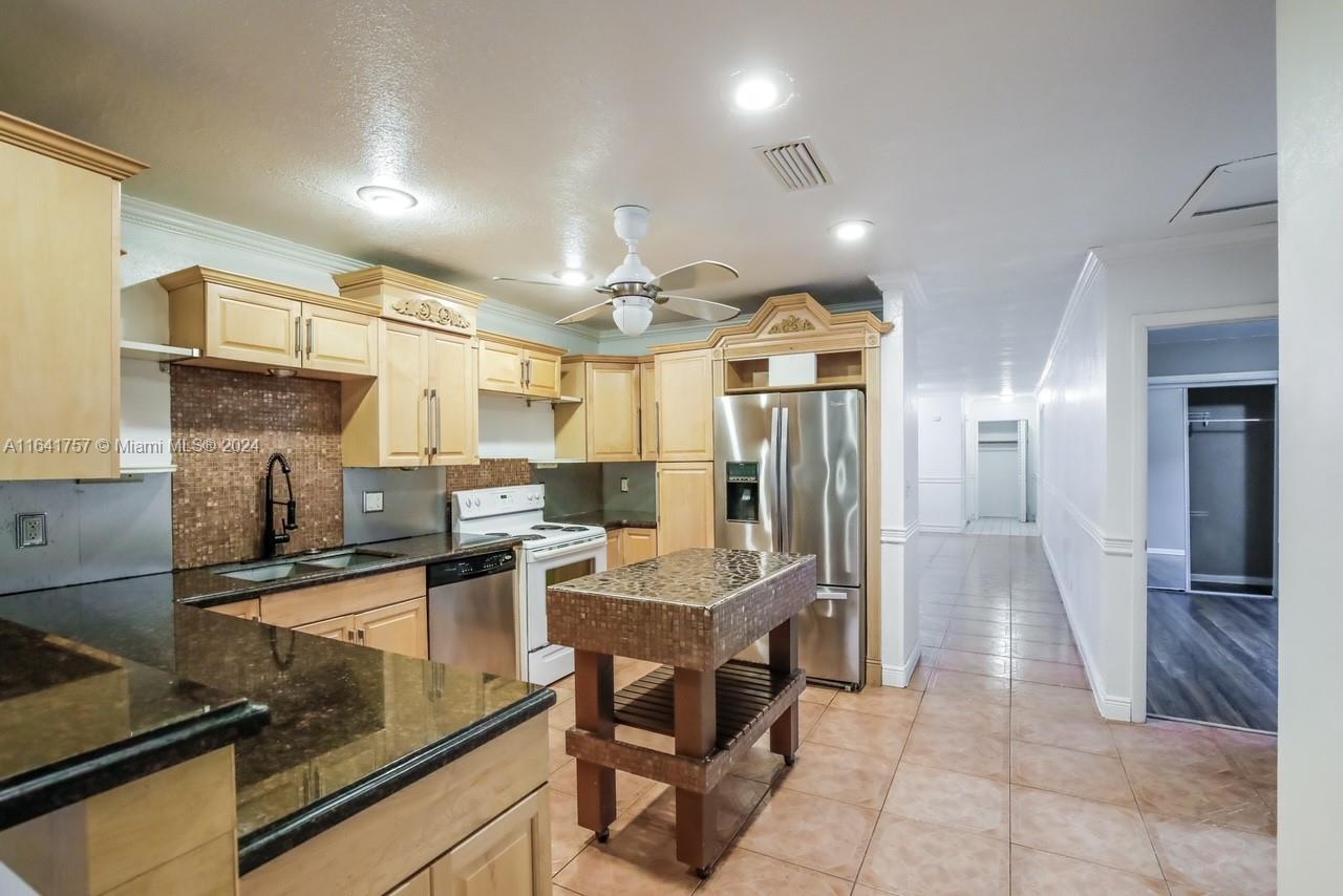 This spacious 1 side of a duplex home showcases a custom kitchen that combines warmth and elegance. Granite countertops offer both beauty and durability, while a glass backsplash adds modern flair. A movable kitchen island provides flexibility for cooking and entertaining, and custom molding throughout the space enhances its refined craftsmanship. The refrigerator is seamlessly integrated into a custom enclosure, maintaining a polished look. The open floor plan creates a spacious, inviting atmosphere, with natural light pouring in through four sliding glass doors, brightening the entire home. This home is nestled in a quiet neighborhood with close proximity to schools & shopping. Buyers must use sellers title company. Seller will pay title. See attachments on MLS. Must submit with offers.