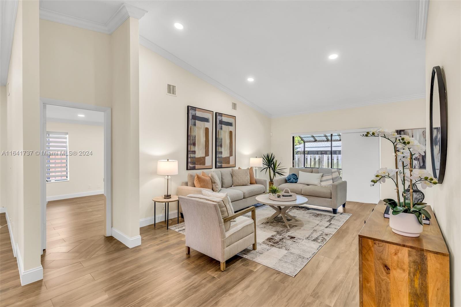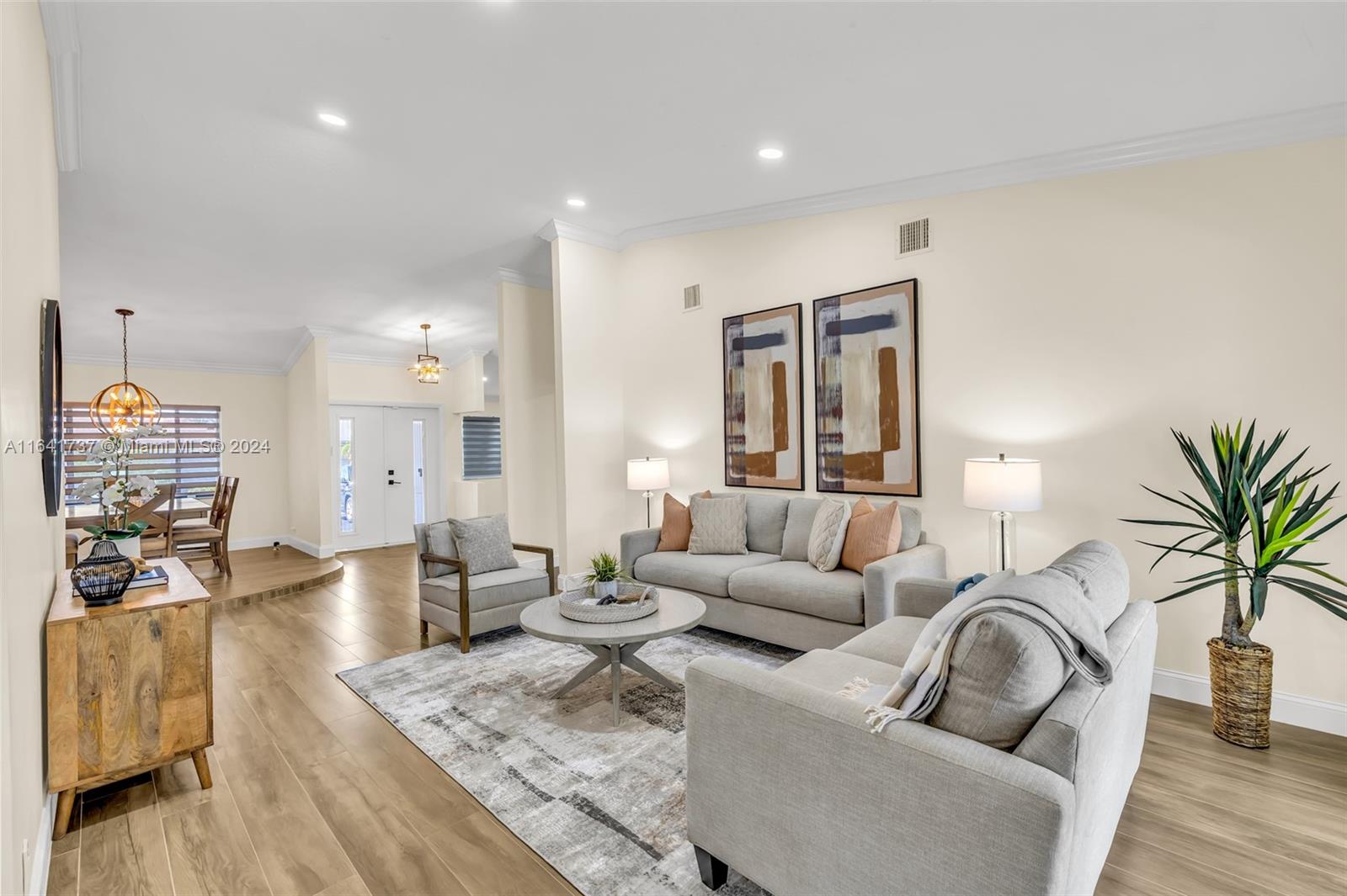 BEAUTIFUL 4/2.5 BATH HOME IN WELLEBY. THIS HOME IS TOTALLY REMODELED, NEW ROOF 2023, NEW KITCHEN-2021 WITH QUARTZ COUNTER TOPS, NEW FLOORING, IMPACT FRENCH DOORS, HURRICANE IMPACT GARAGE DOOR WITH MYQ REMOTE OPENER, RECESS LIGHTING THROUGHOUT, CROWN MOLDING, AND MUCH MORE. LOW HOMEOWNERS ASSOCIATION FEE OF 130 ANNUALLY.