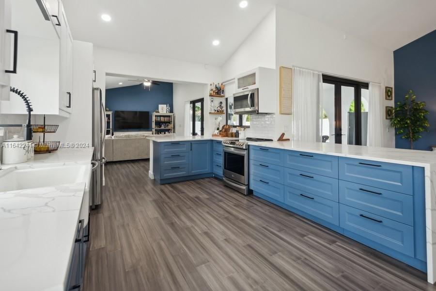 A captivating home in Weston. Beautiful 3 bed/2 bath, 2-car garage, single-story home located in the desirable gated community of Laguna Springs. Move-in ready with lots of natural light, spacious open floor plan with high ceilings perfect for family and friends’ gatherings. Large covered porch, privately enclosed patio w/vinyl fence, and new pool. Interior painted in neutral colors, luxury bamboo vinyl flooring, ceiling fans, high hat LED lighting. Kitchen w/new cabinetry, white tile backsplash, stainless steel appliances, oversized farm sink, quartz countertop. Brand new impact-resistant windows. Tastefully landscaped front yard with beautiful tropical plants. Brick pavers on the driveway. Walking distance to Weston Town Center. Easy access to major highways. Grade A-rated schools.