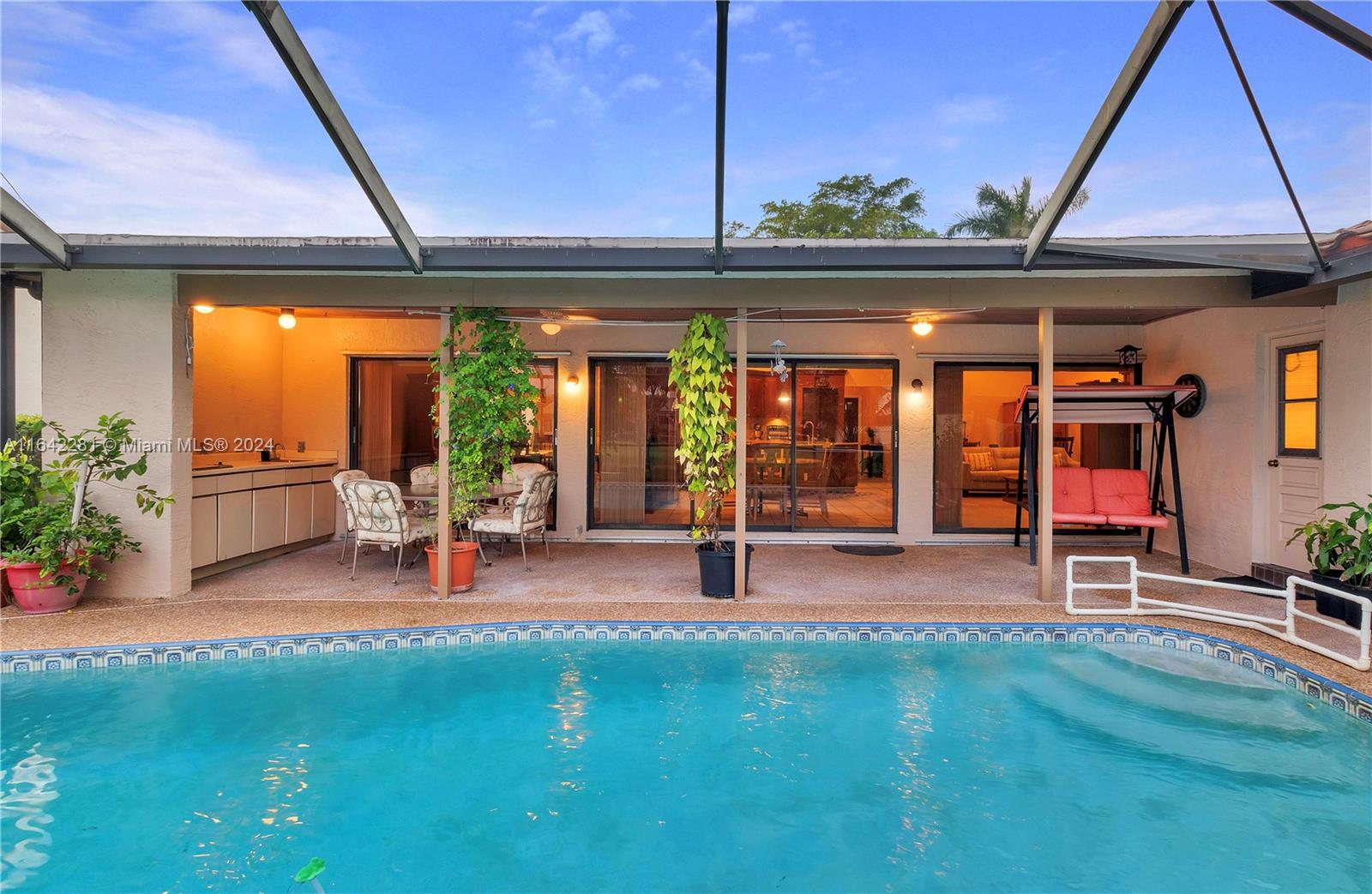 Welcome to Your Dream Home in Cypress Run! Move-in ready 4-bed, 2-bath home in the highly sought-after Cypress Run neighborhood. Floor plan offering comfort and style. The kitchen features granite countertops, SS appliances, & storage space—perfect for culinary enthusiasts. Formal Dining & Living Rooms are ideal for entertaining guests or enjoying family meals. The primary bedroom is tucked away from the other bedrooms. Outdoor Oasis has a sparkling screened-in pool perfect for relaxation and outdoor gatherings. 2-Car Garage. A/C 2 years old. Maytag washer & dryer less than 6 months new. Updated electrical panel. New pool pump. Roof 2014. New smart system garage door opener. Wireless security cameras & surround sound Bose speaker system included. Mango & Apple trees. Do not miss this one!
