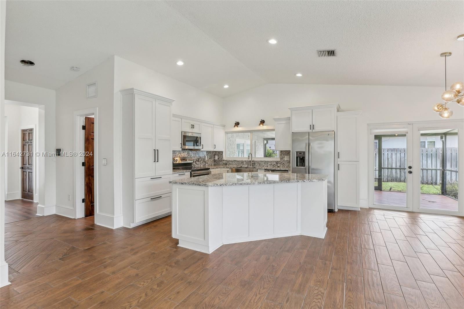 Welcome to this beautiful 4 bdrm, 2.5-bath home, perfectly designed for modern living. Recently upgraded with permitted additions, the home now offers 1,680 sq ft of stylish and functional space. The heart of the home is the stunning white kitchen, featuring a center island, sleek granite countertops, & stainless steel appliances w/ a farmhouse sink. High vaulted ceilings & decorative baseboards throughout adds a touch of elegance, while impact windows & doors provide both security and peace of mind. The primary bedroom includes a luxurious en-suite bathroom w/dual sinks, and a generous walk-in closet. Step outside to your expansive backyard w/ room to accommodate a pool, making it an ideal space for entertaining or unwinding. Don’t miss the opportunity to make this charming home your own!