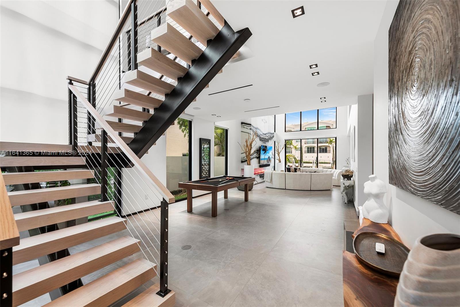 Discover unparalleled luxury in Coral Ridge with this exquisite canal-front residence in Ft. Lauderdale. This three-story home features a private elevator, a saltwater pool, and a covered summer kitchen perfect for entertaining. Enjoy panoramic views from the rooftop deck, or dock your boat at the 50ft slip. Inside, find four bedrooms plus a loft office, four full baths, and a guest bath. The Italian kitchen boasts high-end appliances, complemented by a floating steel and wood staircase, a master suite with boutique closets and a wet bar. Complete with window treatments, private entry gates, and deep-water access, this home offers both exclusivity and convenience, just minutes from the Intracoastal.