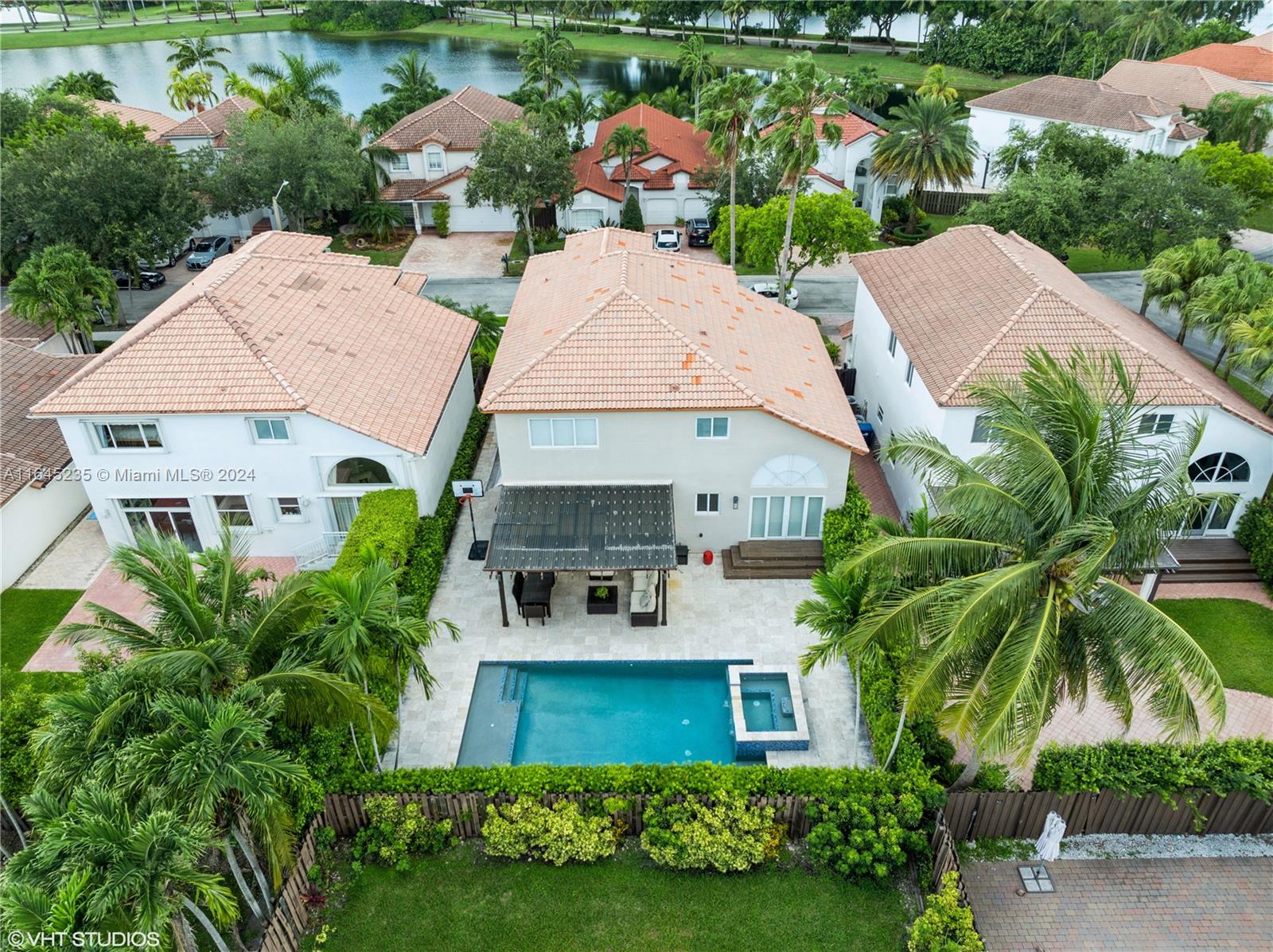 Stunning completely remodeled single-family home, 4beds & 3 Baths. The floor plan seamlessly connects the living, dinning, family room and kitchen areas, creating & inviting spaces perfect for everyday living & entertaiment. The kitchen boasts sleek WOLF brand appliances, elegant quartz countertop, wine cooler, an eat-in counter, making it a chef's dream. Upstairs, the primary bedroom is a true retreat with built-in closets, walk-in closet, and in-suite bathroom which exudes luxury with a modern vanity, double sink, marble flooring, rain shower head with glass door. Additional features includes impact windows and doors, 2 car garage, pool, spa and pergola. Located close to the club house with luxury amenities: 3 pools, gym, sauna, restaurant, soccer field, basketball & tennis court & more