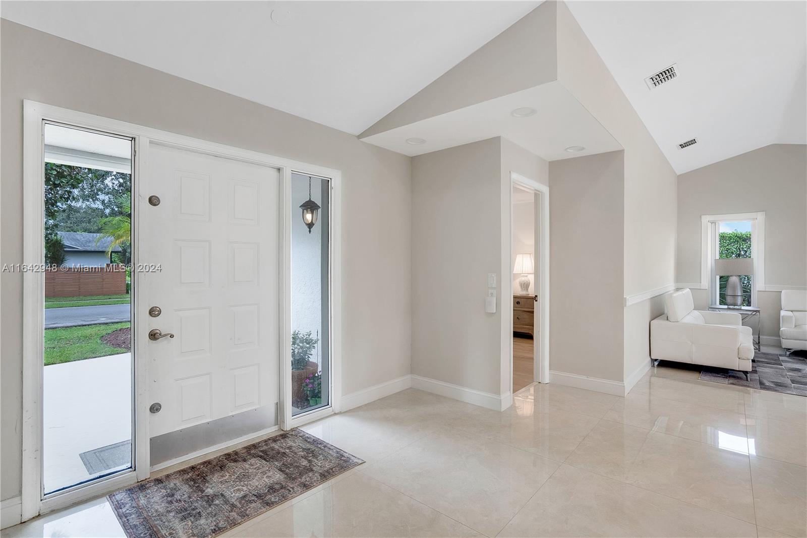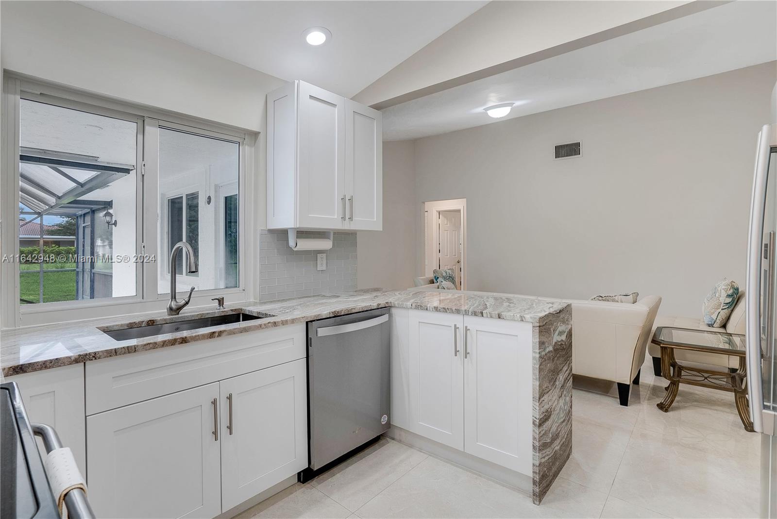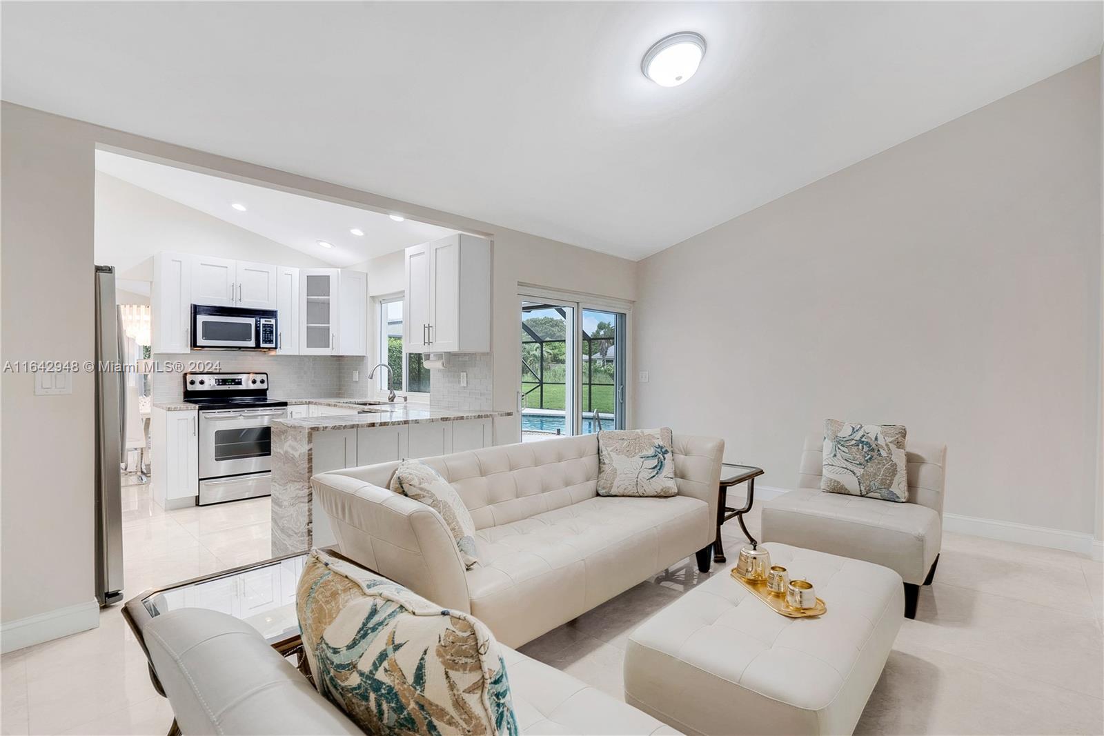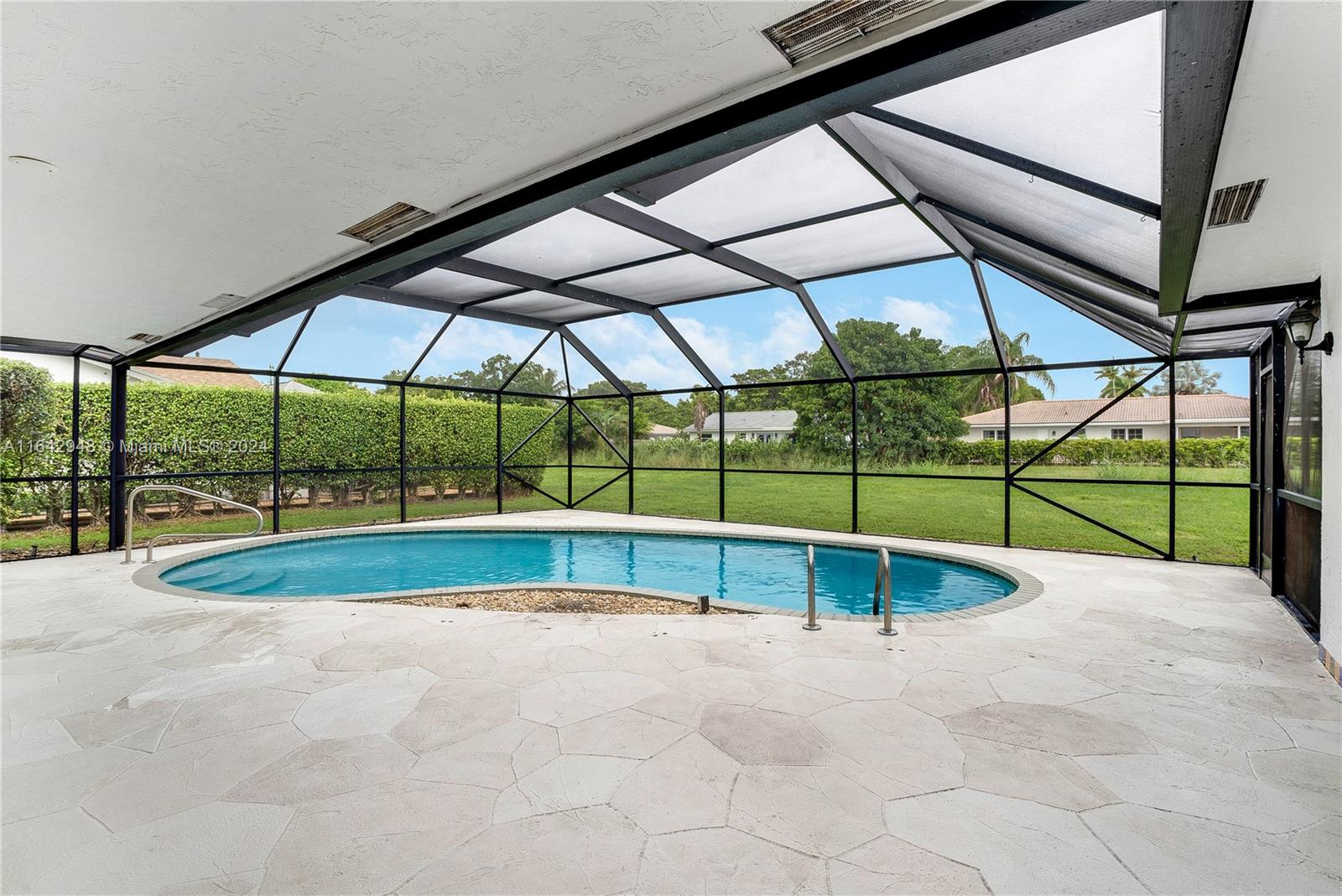 Renovated one-story home with 4 bedrooms, 2-1/2 bath, 2CG, pool home. Is located in the sought-after Strathmore location in Central Boca and zoned for Blue Lake Elementary School, Omni, and Spanish River High School. Several A-rated private schools are within walking distance. This open and bright canal-front home features hurricane-impact windows and sliding doors, vaulted ceilings, maintenance-free floors, and modern shaker kitchen cabinets with Brown Fantacy countertops. New roof, AC ductwork and center AC in 2024. Close to I-95, Turnpike, 5 minutes to Town Center Mall, 10 minute- drive to the beach, close to restaurants, supermarkets and parks.