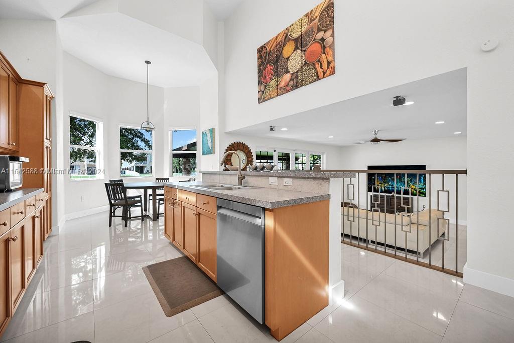 Welcome to this stunning two-story lakefront home in Riviera Isles, West Miramar! Situated on an oversized lot, beautiful patio, this property features 4 bedrooms and 3 bathrooms, including a first-floor bedroom with a full bath. The luxurious master suite has an office space and two additional bedrooms upstairs. Ideal for entertaining, the home offers formal living and dining rooms, expansive kitchen with a beautiful island, stainless steel appliances, and serene lake views. The bright, airy family room is bathed in natural light and overlooks the tranquil lake. New Roof. Residents enjoy a clubhouse, big pool, tennis and basketball courts, gym, and 24-hour security. Conveniently located 5 minutes from I-75, near top schools, shopping, and dining. Luxury and convenience await!