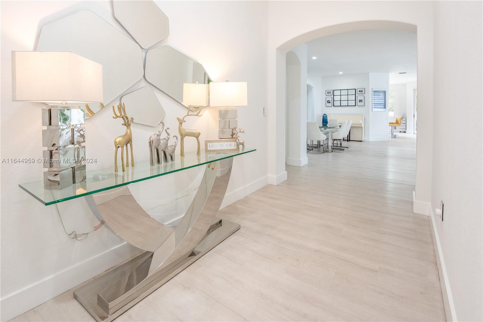 No other House like this one. . Very Desirable One Story Totally upgraded, Open concept, Single Family Home in Doral. Move-in ready. Huge lot with almost 7,000 Sq Ft perfect for a pool and entertainment. Very private home with Doral Legacy Park on the back. 4 Beds, 3 Full Baths, 2 Car Garage + 2 spaces on the driveway with an electric car station. Gourmet Kitchen with a big island, quartz countertop, black SS appliances with separate glass stove and oven, waterproof laminated floor in living area, bedrooms and kitchen, porcelain floor on the bathrooms. Custom-made closets in all the bedrooms, almost new Air Conditioner. High hat led lights in all the house. Front-loaded washer and dryer. Buyer has to pay $ 3,600 for Title Transfer to the Associations at Closing.
