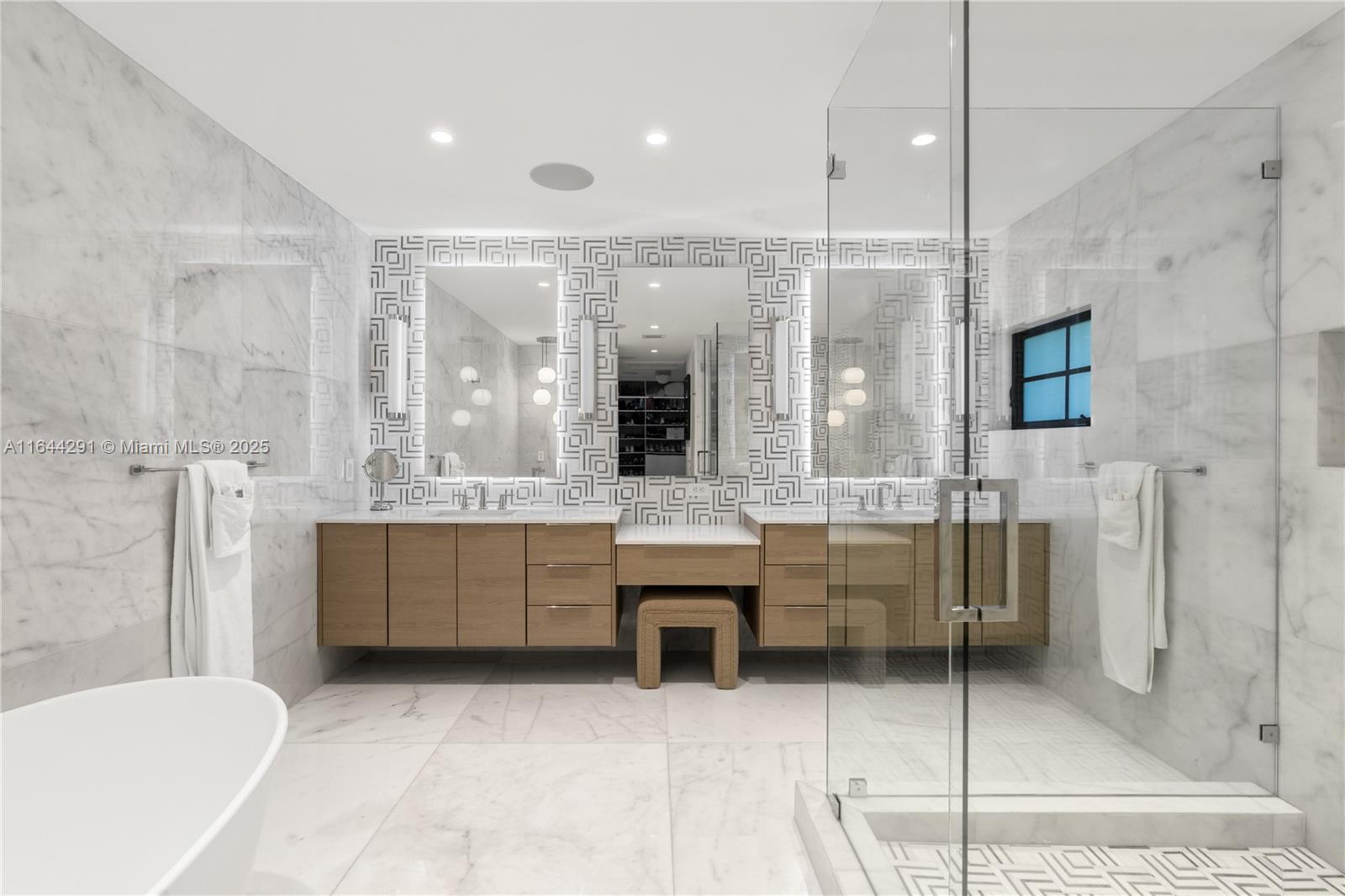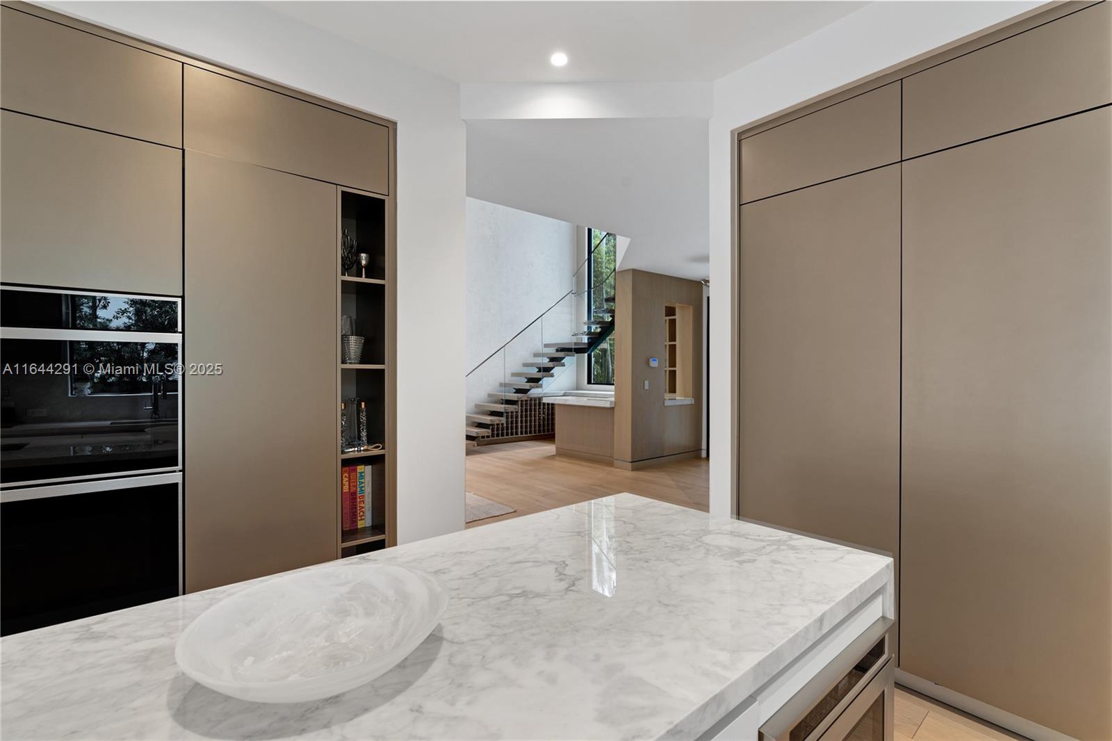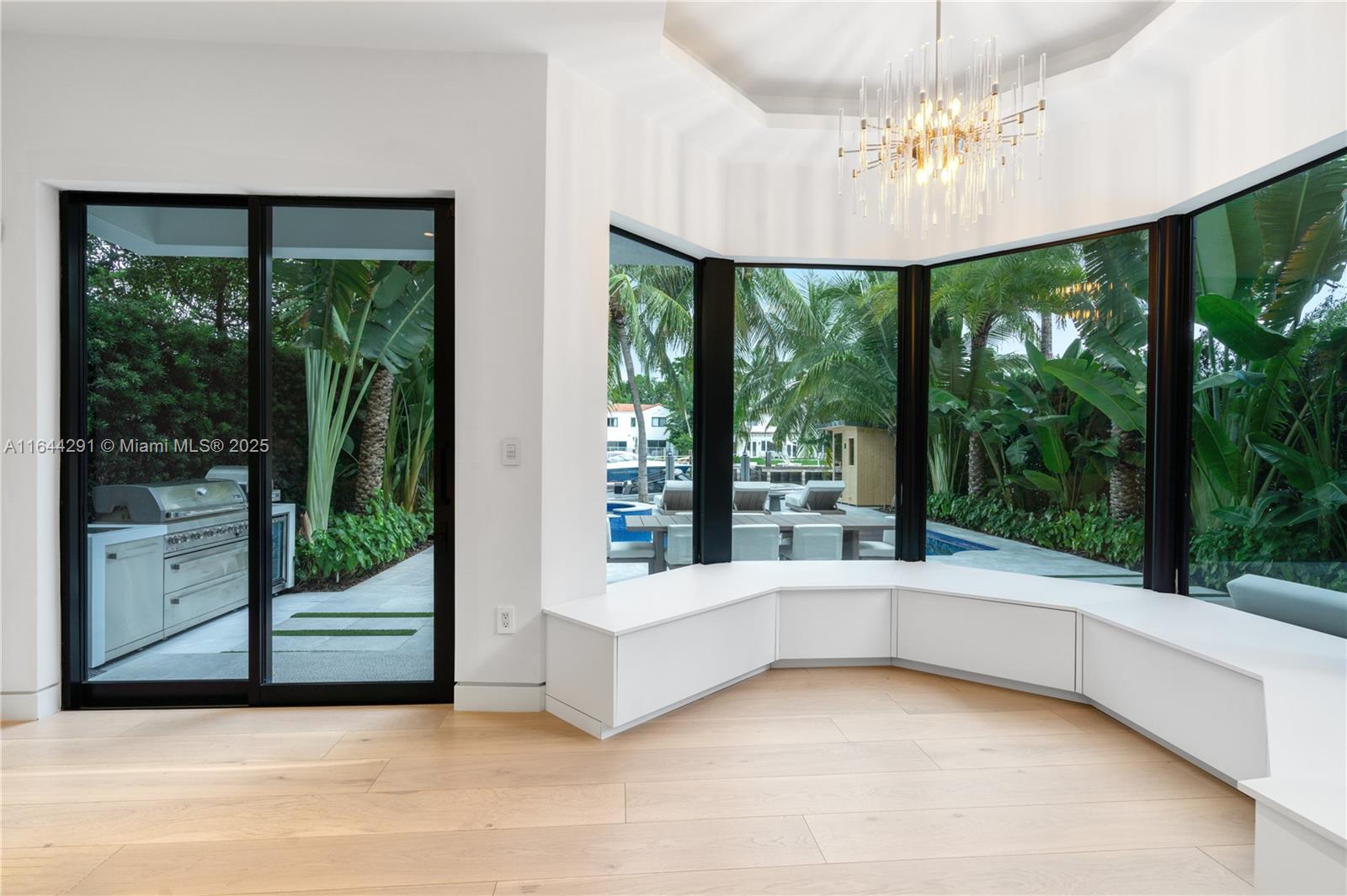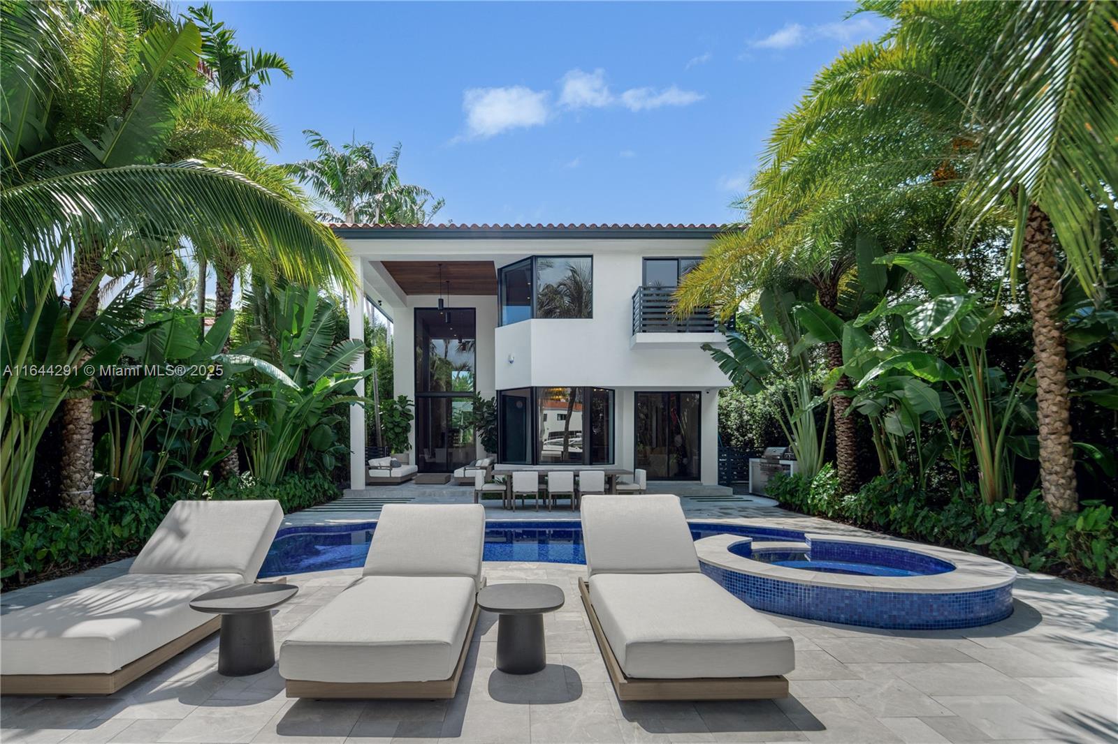 Dive into the tropical fully-renovated turnkey waterfront Modern Mediterranean villa boasts 6 beds/7 baths w/ white oak wood floors, arched doorways, floor to ceiling glass windows unveil natural light & water views. Gather by the fireplace & entertain in the living room w/ 20 ft high ceilings, a built-in bar and a kitchen with high end appliances, fridge & sink with marble countertops. Primary suite brand new custom master closets, outdoor balcony, views of the water, dual vanities & oversized soaking tub. Brand new floor to ceiling new glass doors blur the lines between interior & exterior spaces. 2 car garage. Auto-blinds offer privacy & light control as well. In the backyard there is an outdoor BBQ, pizza oven, pool & spa, sauna & cold plunge, covered terrace, new dock w/ shore power.