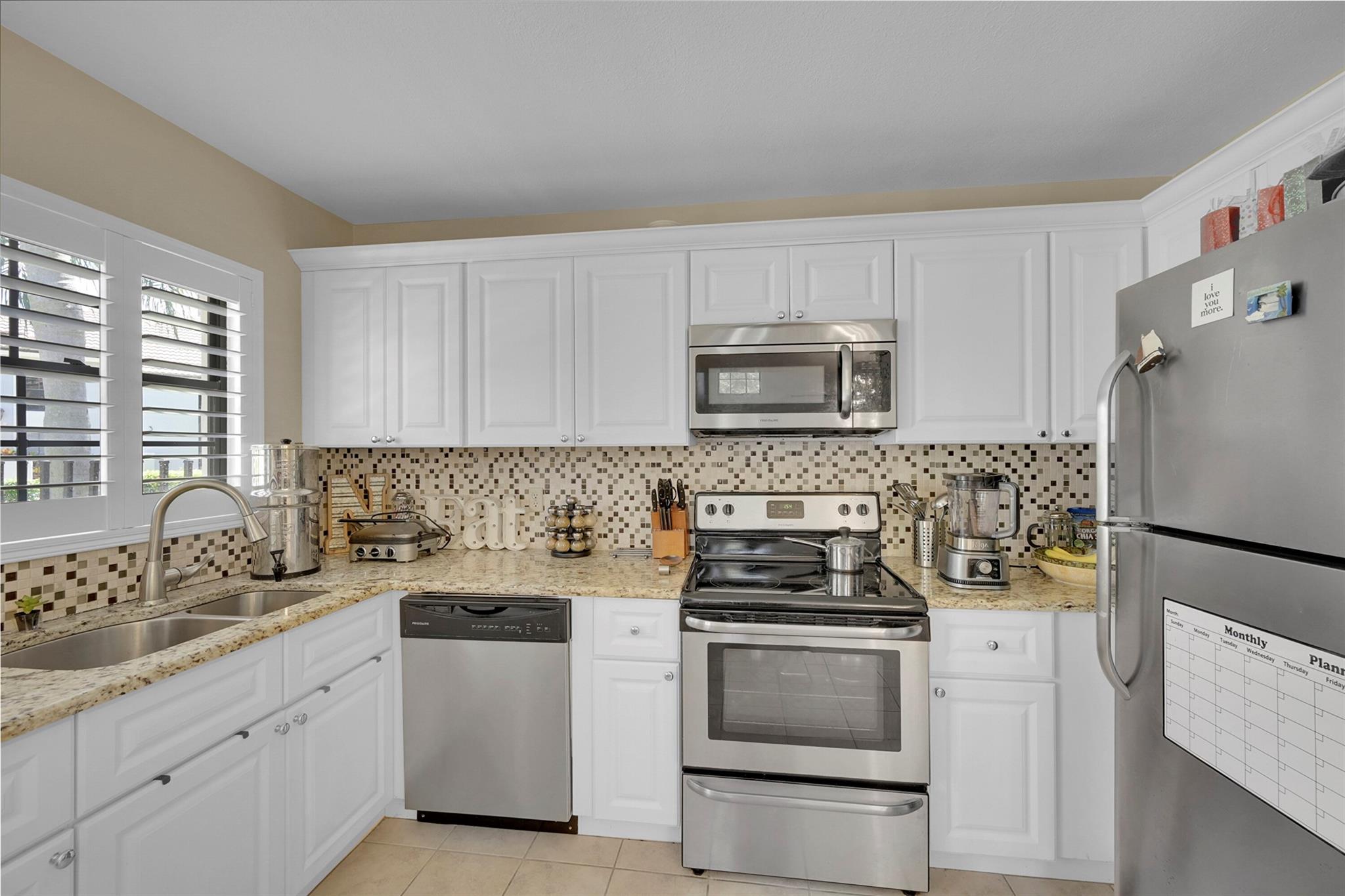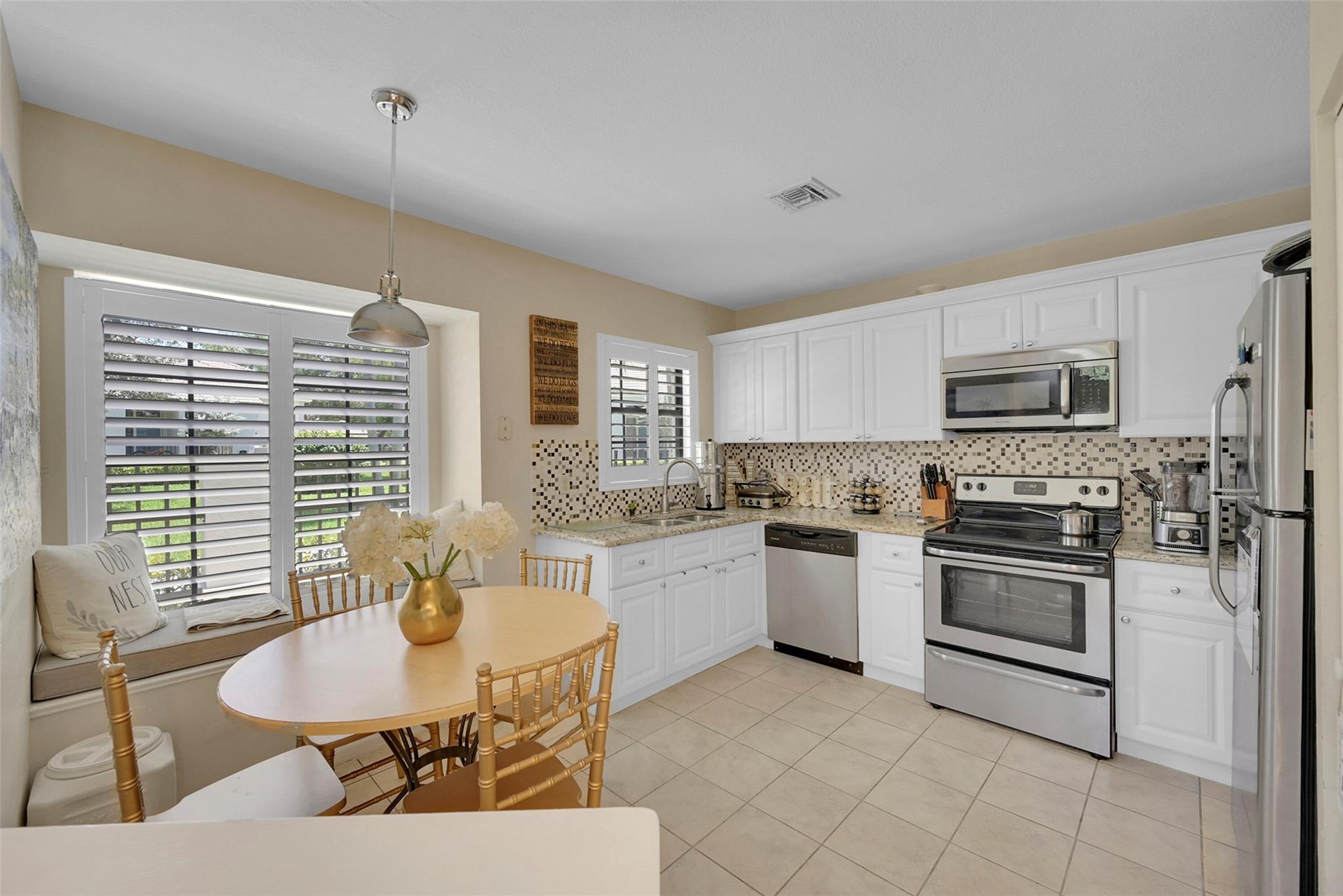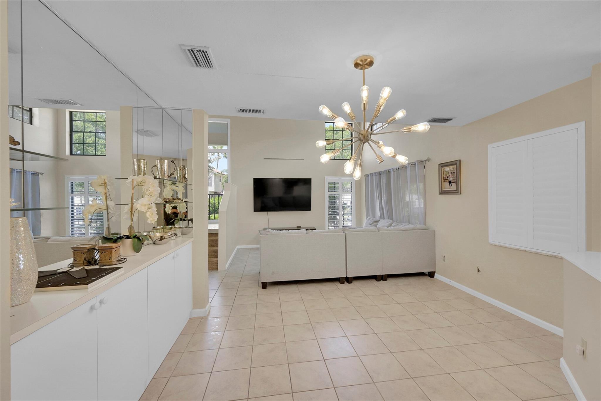 Welcome to Prestwick Chase located in PGA National, one of the highly desired Communities in the County. PGA is known for it's Championship Golf Courses and many amenities for it's residents including the Famous PGA Resort. This desirable Two Bed, Two Bath Townhouse features an open floor plan and 2 Story Ceilings. Neutral tile flooring on the ground floor with exception of guest bedroom. Kitchen boasts white cabinets with granite counters, SS Appliances and custom backsplash. Dining Room has custom built in cabinets and mirrors, Spacious Master Bedroom upstairs has large walk in closet and en-suite bathroom with double sinks, separate tub and shower. Plantation Shutters throughout. Inside Laundry Room. It has a glass enclosed patio to enjoy the views of the community.