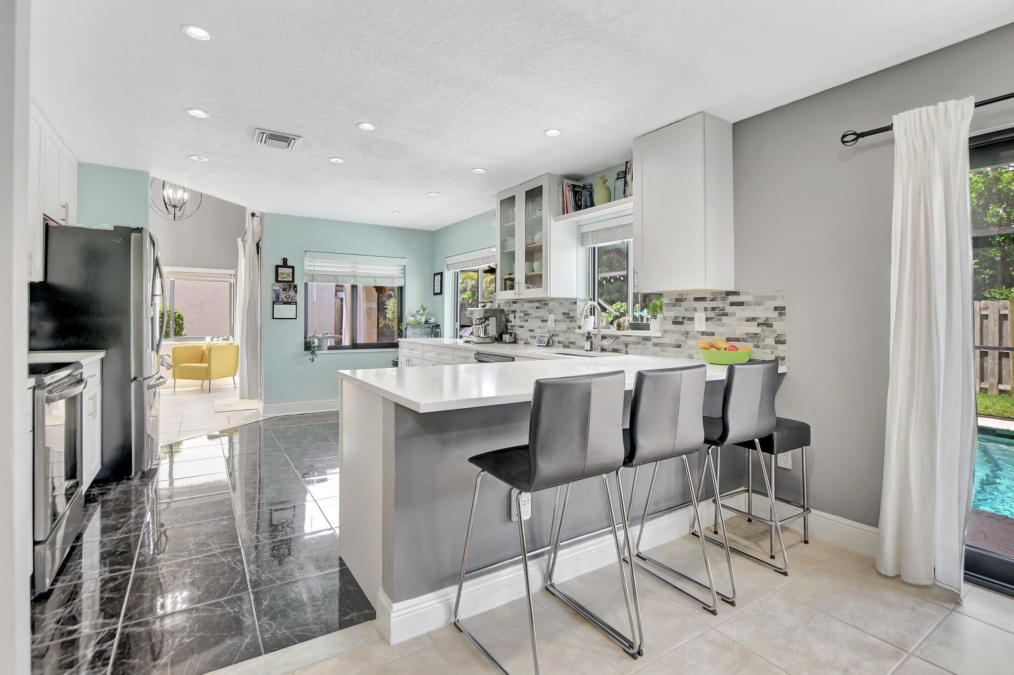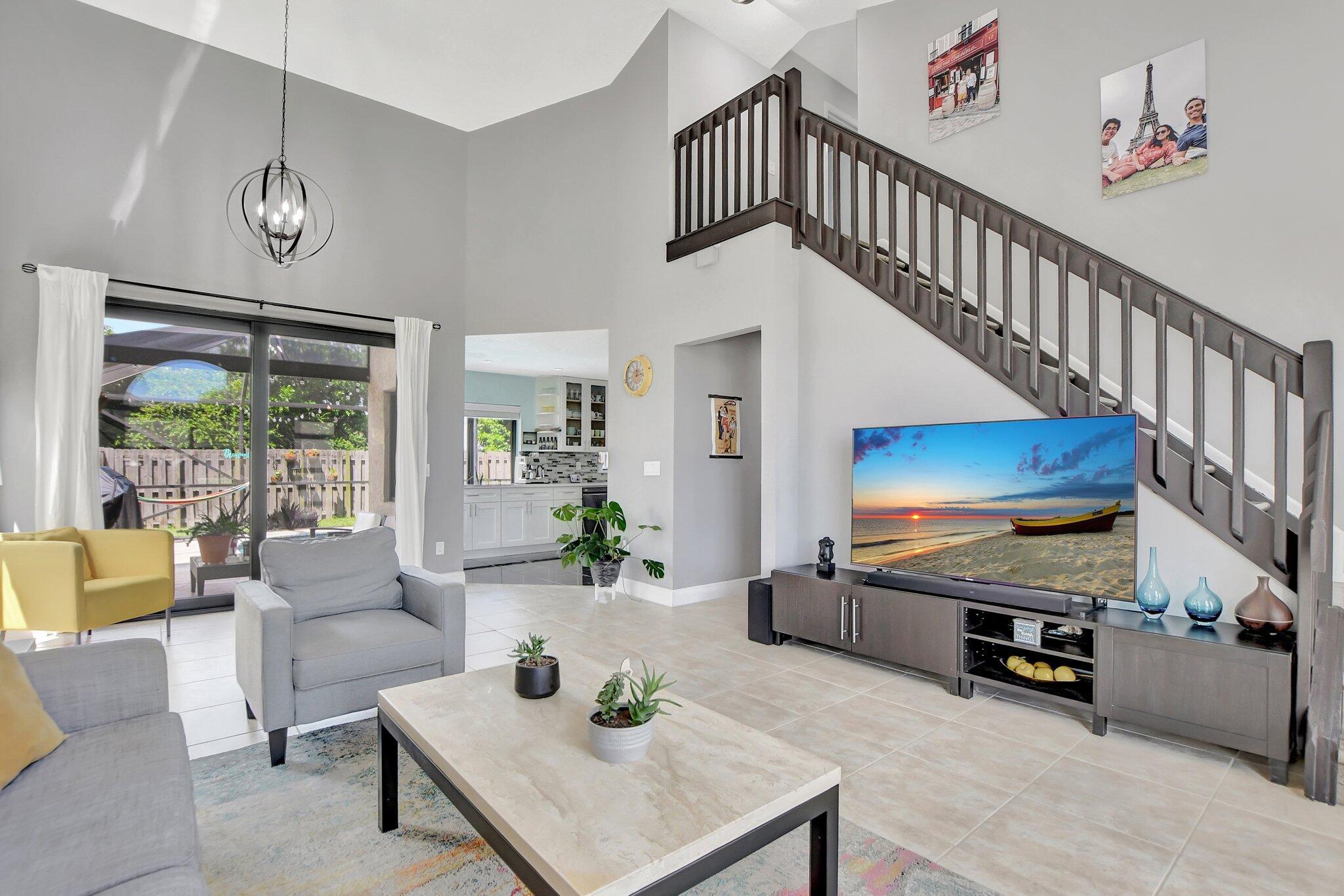 BEAUTIFUL 3 BED / 2.5 BATH POOL HOME IN THE HIGHLY DESIRABLE COMMUNITY OF BOCA TRENDS. OPEN FLOOR PLAN WITH HIGH VAULTED CEILINGS!RECENTLY UPDATED KITCHEN WITH STAINLESS STEEL APPLIANCES AND QUARTZ COUNTERTOPS! RENOVATED HALF BATH AND UPSTAIRS BATH WITH BEAUTIFUL CONTEMPORARY TOUCHES! HIGH END LAMINATE FLOORING UPSTAIRS AND STAIRS, IMPACT WINDOWS THROUGHOUT, AC REPLACED IN 2024, WATER HEATER IN 2022, WASHER & DRYER IN 2023 AND POOL PUMP IN 2022. THIS HOME IS FULLY AUTOMATED! ENTRANCE, OUTDOOR PORCH, CAMERA SYSTEM, GARAGE DOOR AND THERMOSTAT CONTROLLED BY CELL PHONE!FENCED IN GORGEOUS BACKYARD WITH LARGE POOL AND CUSTOM DECK! TRENDS IS CENTRALLY LOCATED CLOSE TO MAJOR RETAIL, RESTAURANTS AND HIGHWAYS! ZONED FOR ALL 3 ''A RATED'' PUBLIC SCHOOLS!