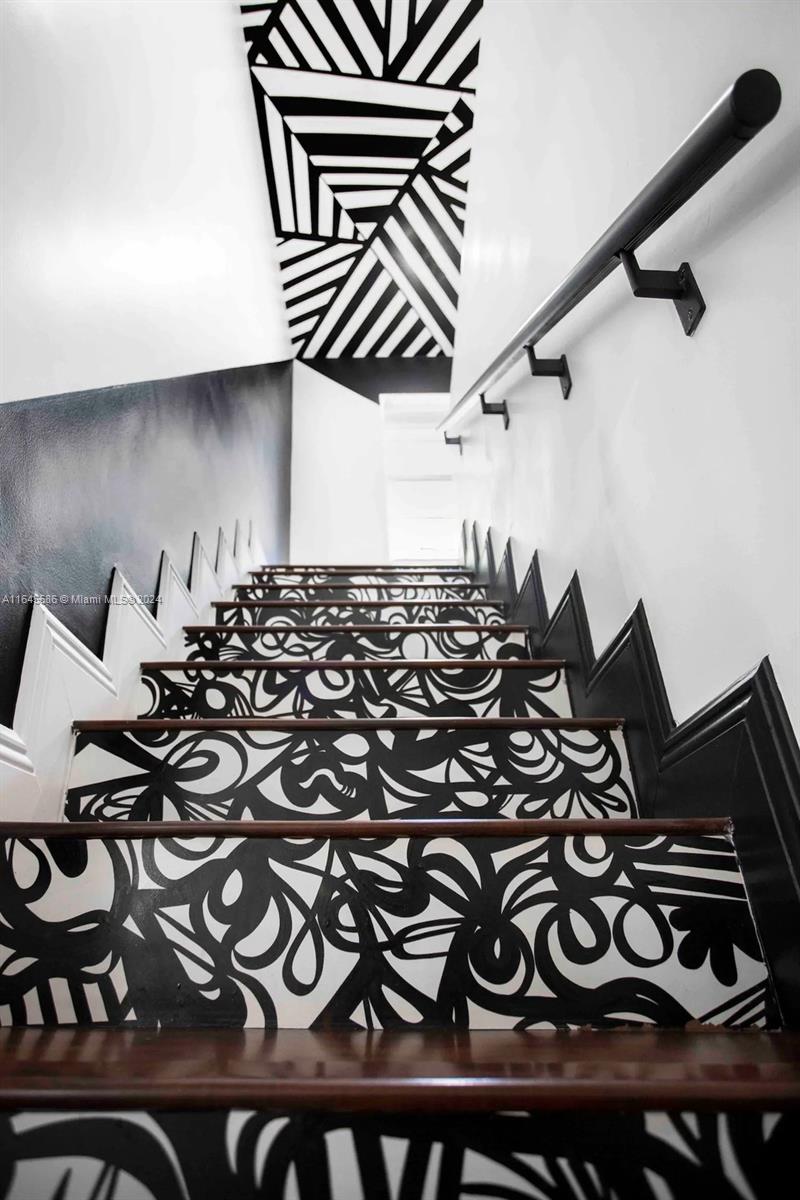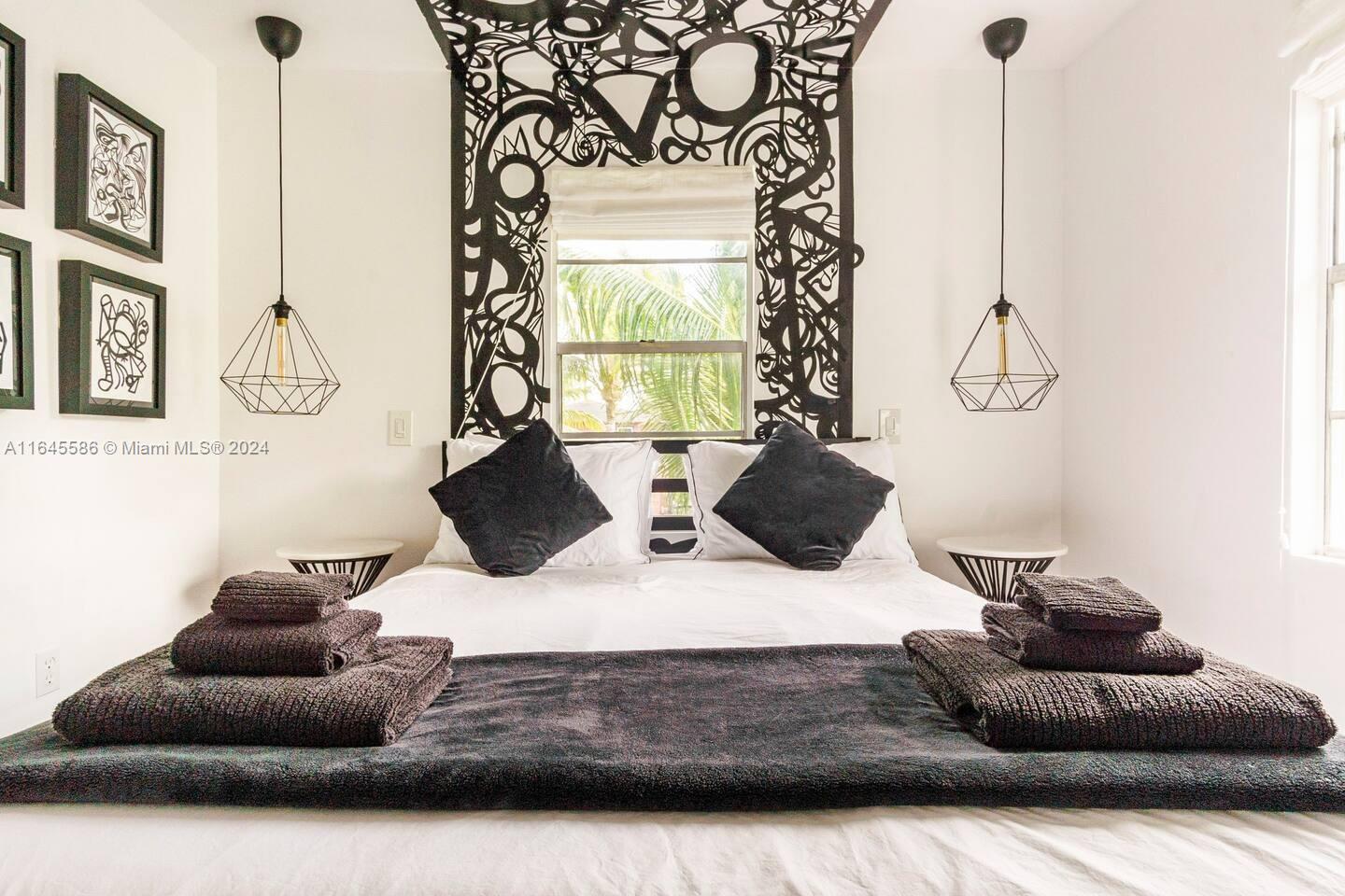 Unique, modern, and professionally designed DUPLEX property in prime location. The property is adorned with original artwork and installations throughout. The main house spans 1342 square feet and features 4 bedrooms and 2 bathrooms. The home’s striking B&W theme has been thoughtfully curated to provide a one-of-a-kind living experience. In addition to the main house, the property includes a 450 square feet guest house, offering 1 bedroom and 1 bathroom with an open floorplan, industrial steel barn doors, and polished concrete floors. The property also has a landscaped garden with a grill, fire pit, swing chairs, and outdoor dining area.