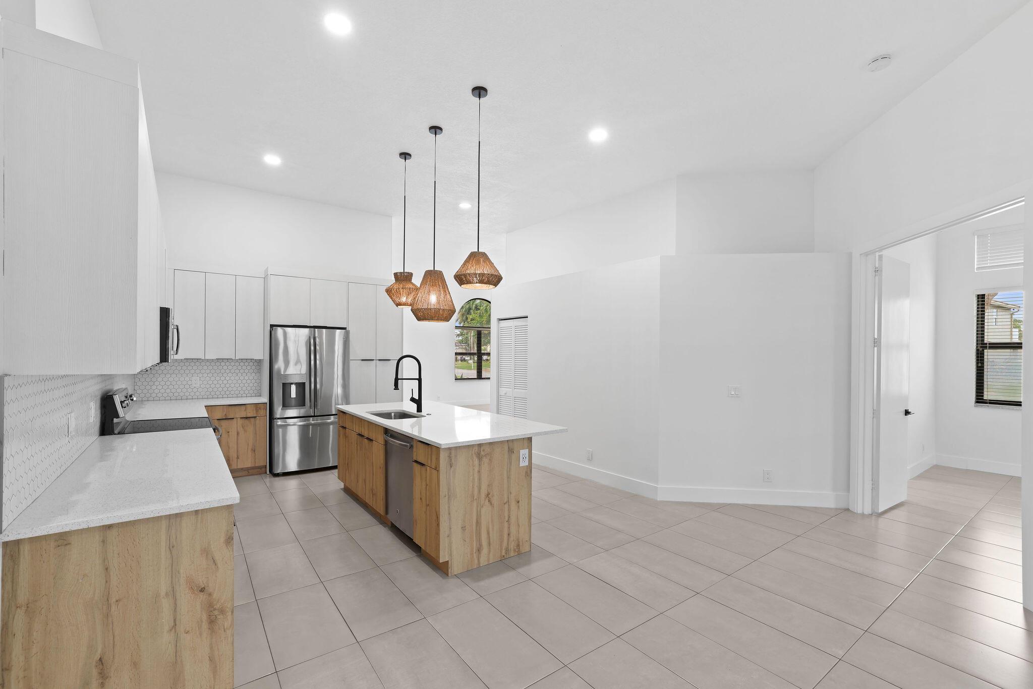 PRICED TO SELL! Exceptional 4br, 2ba single-story modern home on cul-de-sac in Boca Isles. Reconfigured open kitchen features high ceilings, hurricane impact windows/doors, hurricane garage door, tankless instant hot water system, stunning fireplace, updated cabinetry, appliances, vanities, quartz counters and ceramic plank-style floors wall to wall. Completely repainted interior/exterior. Central vacuum. Finished garage. Professionally landscaped with decorative driveway. Master suite has own wing away from bedrooms. Spacious master bathroom features double-sink vanity, walk-in shower and standalone tub. Boca Isles is a manned guard gated & patrolled community. Exceptional recently updated clubhouse featuring resort-style pool, tennis courts, playground, fitness, billiards & much more!