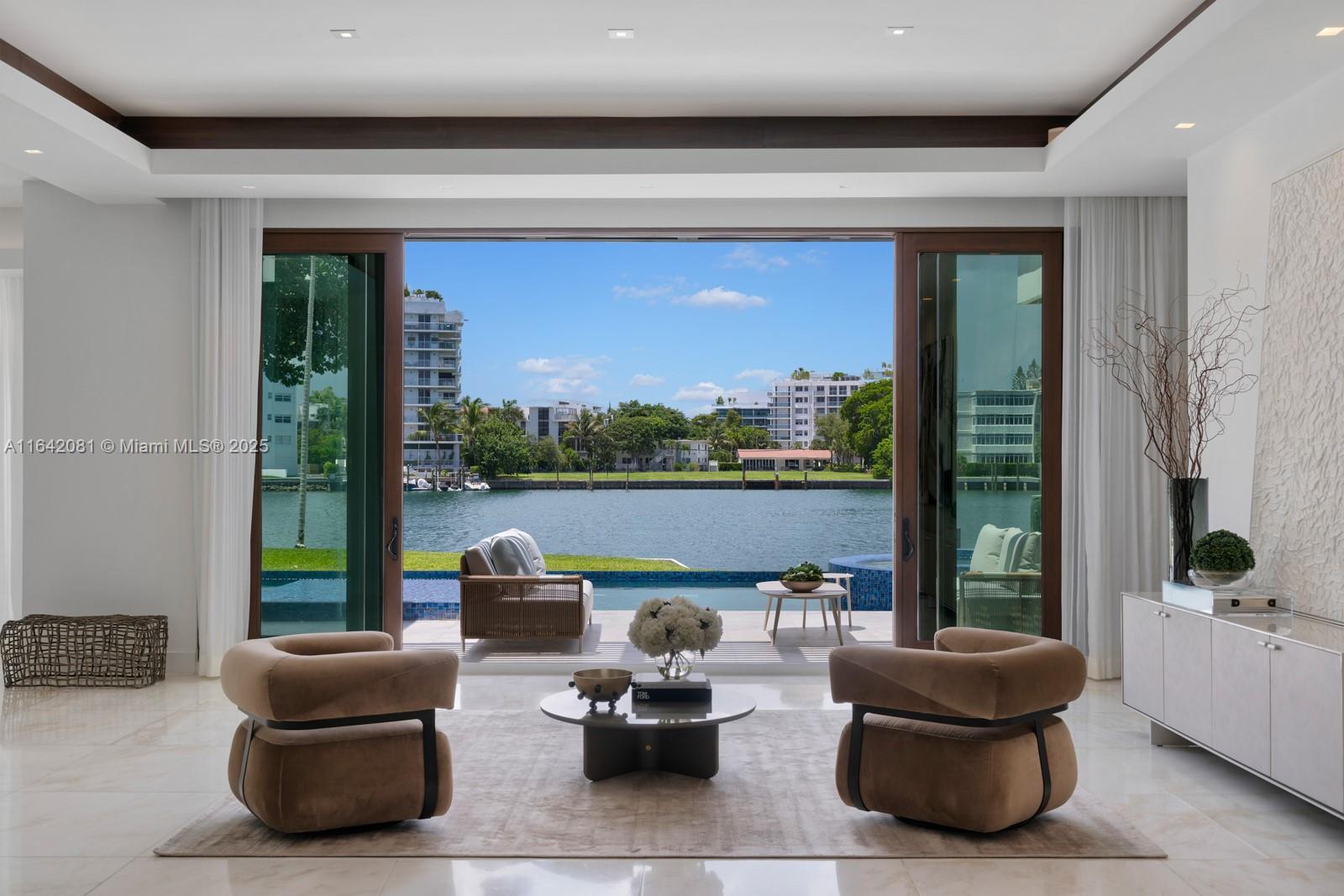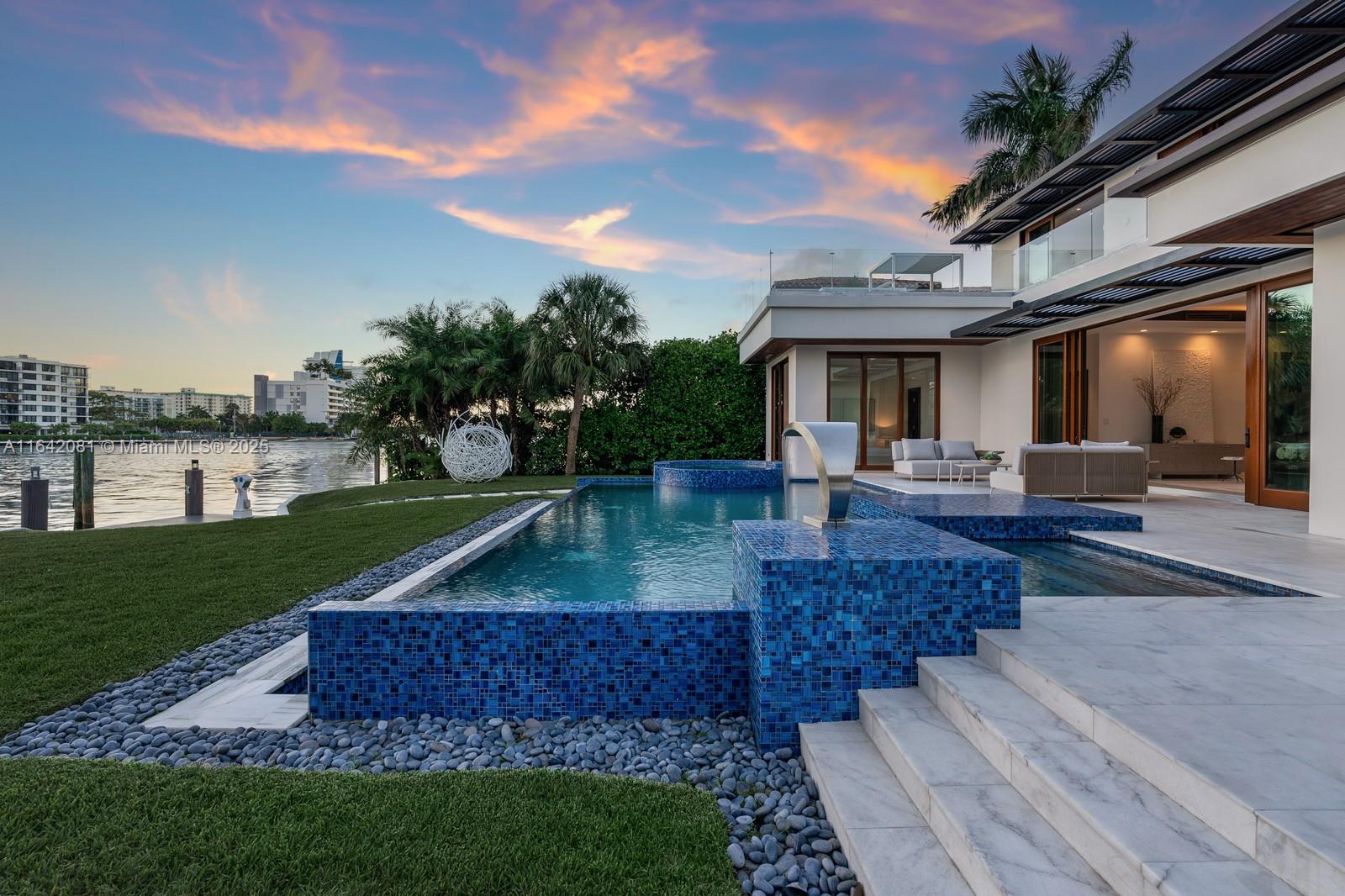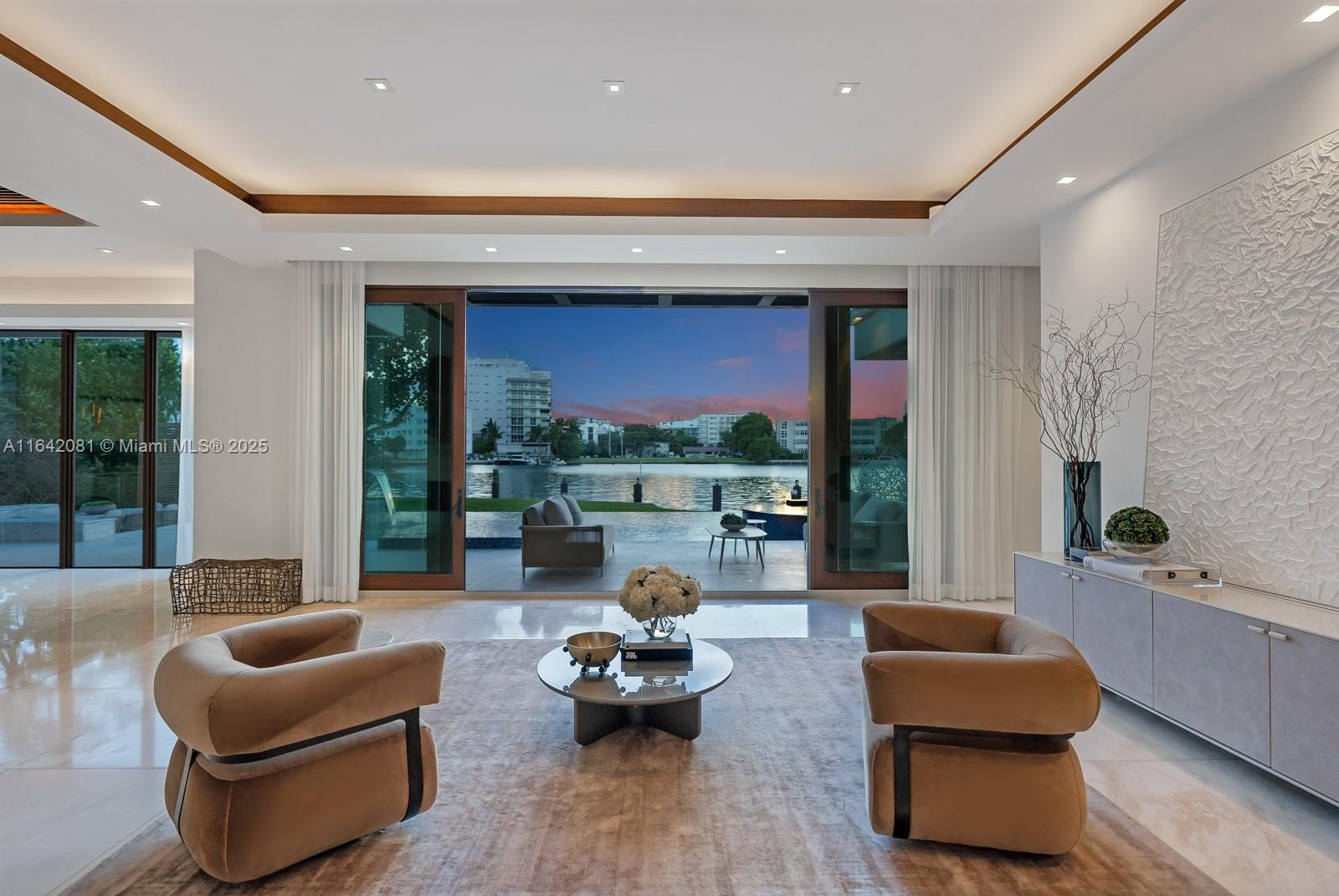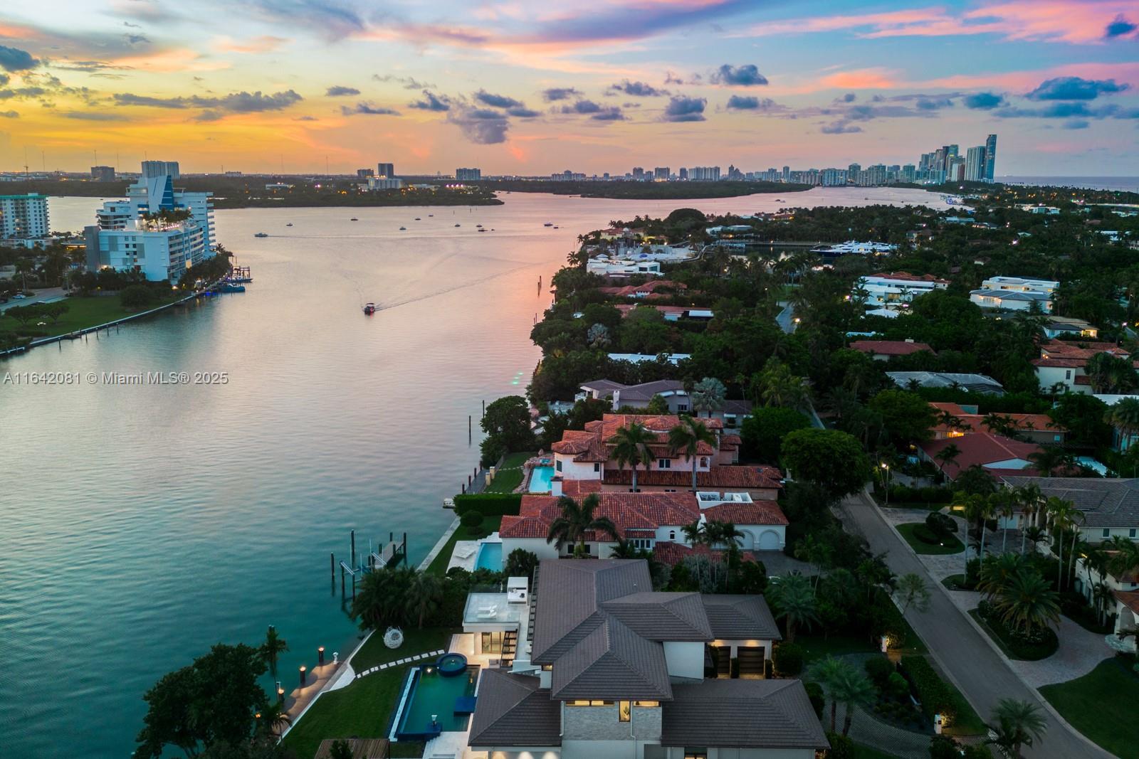 Step Inside with Me! Nestled within guard-gated Bal Harbour Village, 100 Bal Bay is 1 of only 36 waterfront addresses in this private enclave. 25' foyer ceilings open to a wood paneled hosting salon, graceful dining room and breakfast lounge all with Western views. The main level is completed with a contemporary marble kitchen + expansive eat-in island as well as 5 spacious guest suites. A modern staircase leads to the upper level dedicated to a palatial primary with seating area, dual dressing rooms and dual baths, adjacent study, and sun-deck to take in the sunsets. Embrace the outdoors at the mosaic pool + spa, 2 cabanas, greenspace, and dock along 95' of waters with open bay access. An elevator, 4-car garage, and proximity to Bal Harbour Shops, parks & the beach complete this offering.