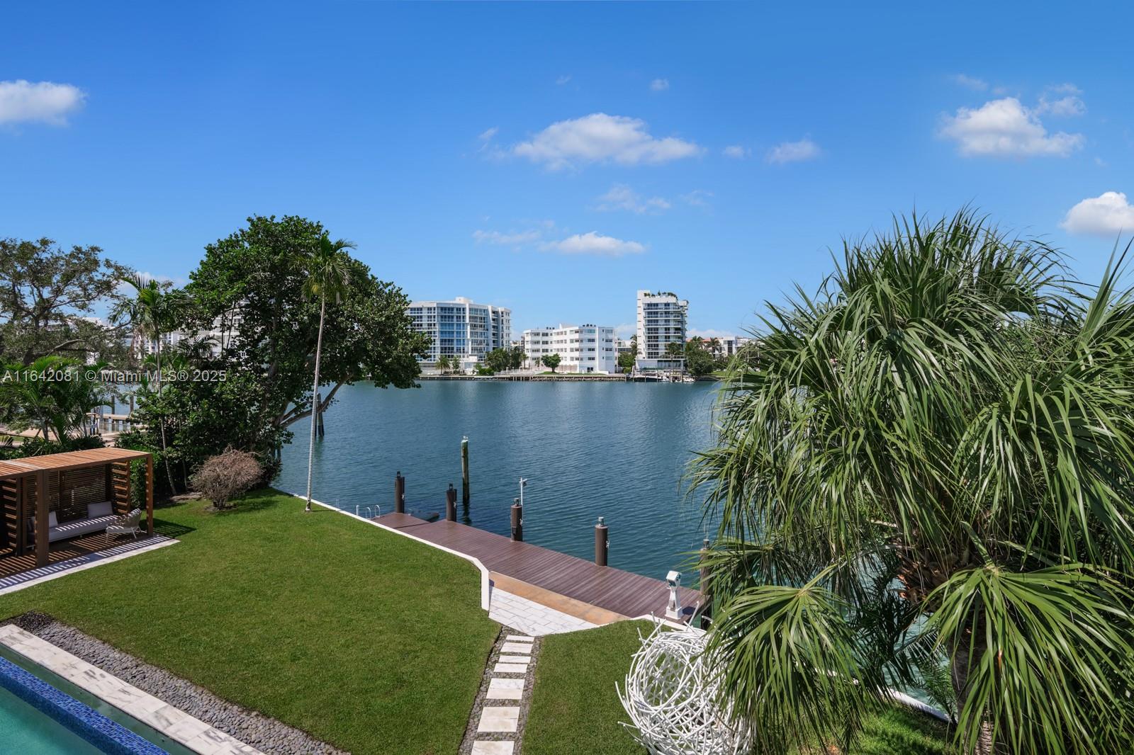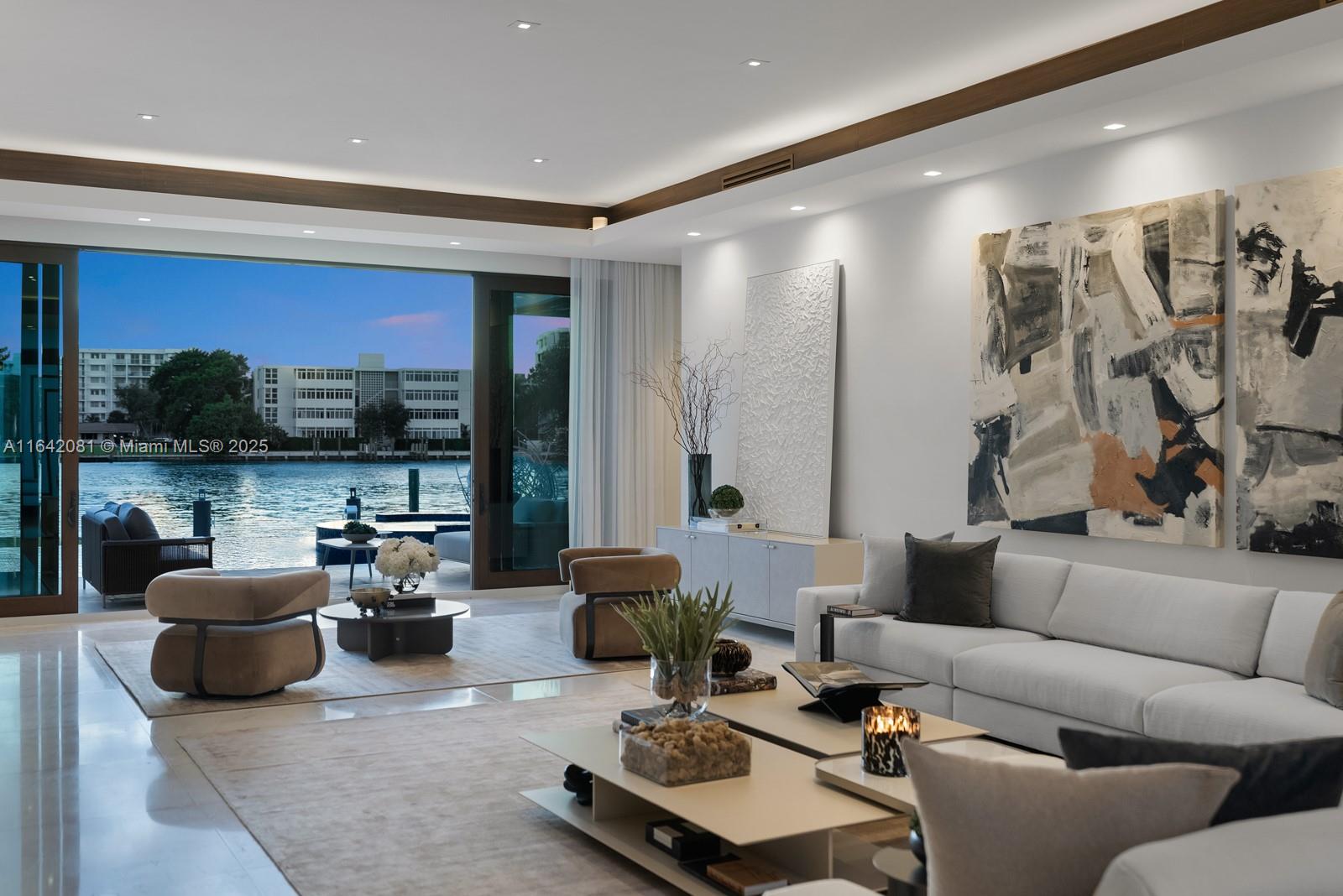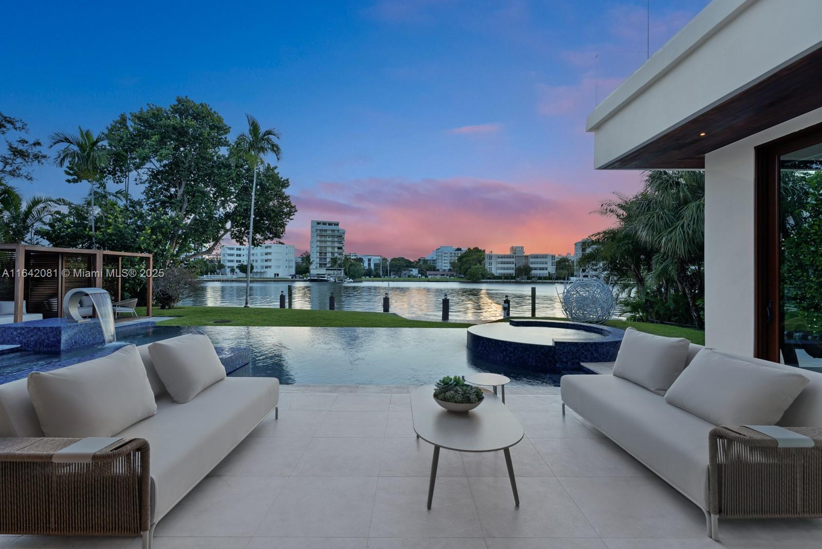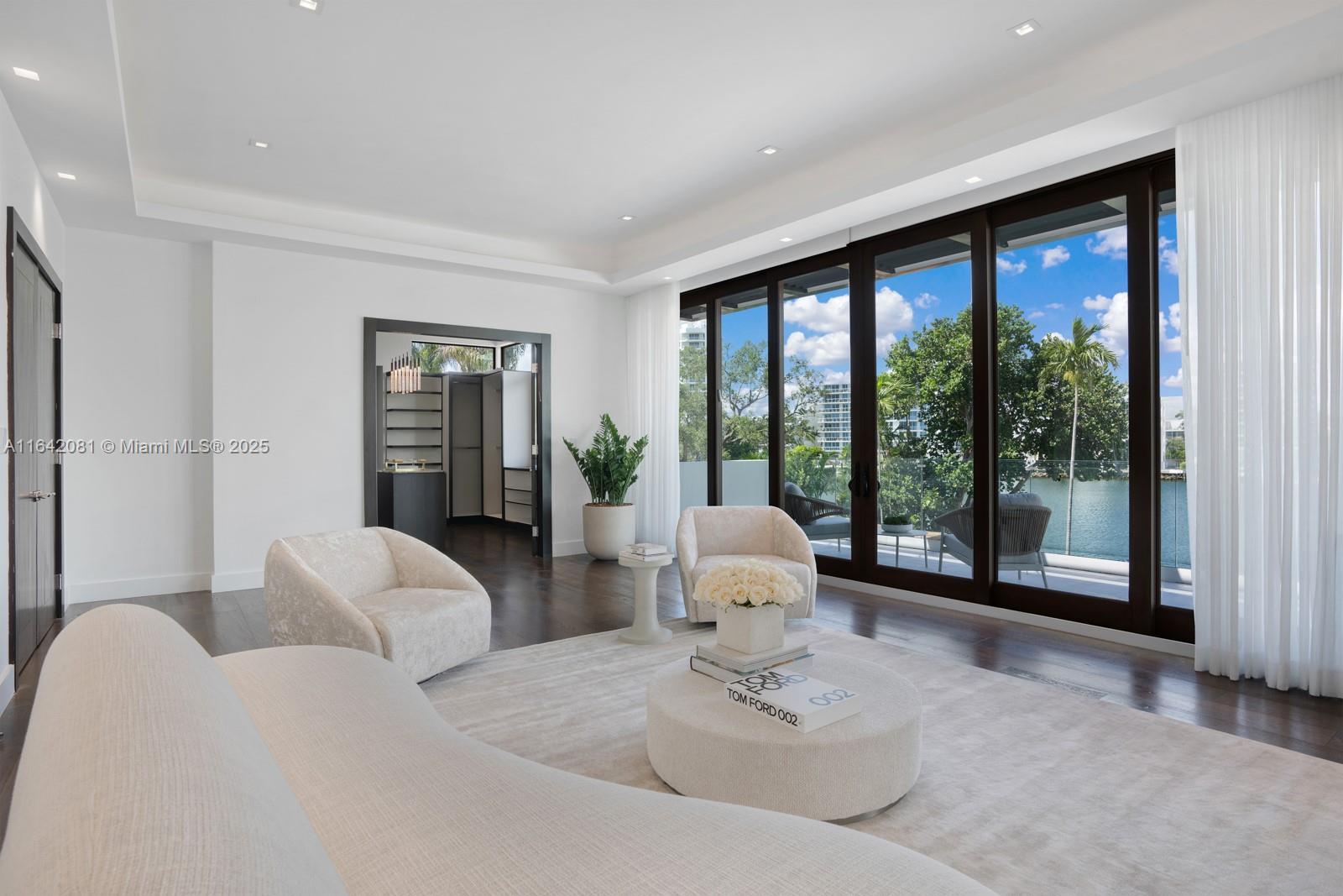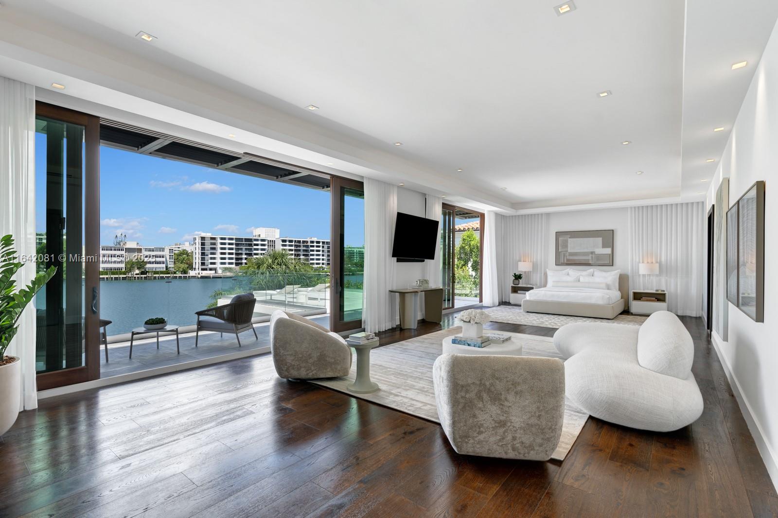 Step Inside with Me! Nestled within guard-gated Bal Harbour Village, 100 Bal Bay is 1 of only 36 waterfront addresses in this private enclave. 25' foyer ceilings open to a wood paneled hosting salon, graceful dining room and breakfast lounge all with Western views. The main level is completed with a contemporary marble kitchen + expansive eat-in island as well as 5 spacious guest suites. A modern staircase leads to the upper level dedicated to a palatial primary with seating area, dual dressing rooms and dual baths, adjacent study, and sun-deck to take in the sunsets. Embrace the outdoors at the mosaic pool + spa, 2 cabanas, greenspace, and dock along 95' of waters with open bay access. An elevator, 4-car garage, and proximity to Bal Harbour Shops, parks & the beach complete this offering.