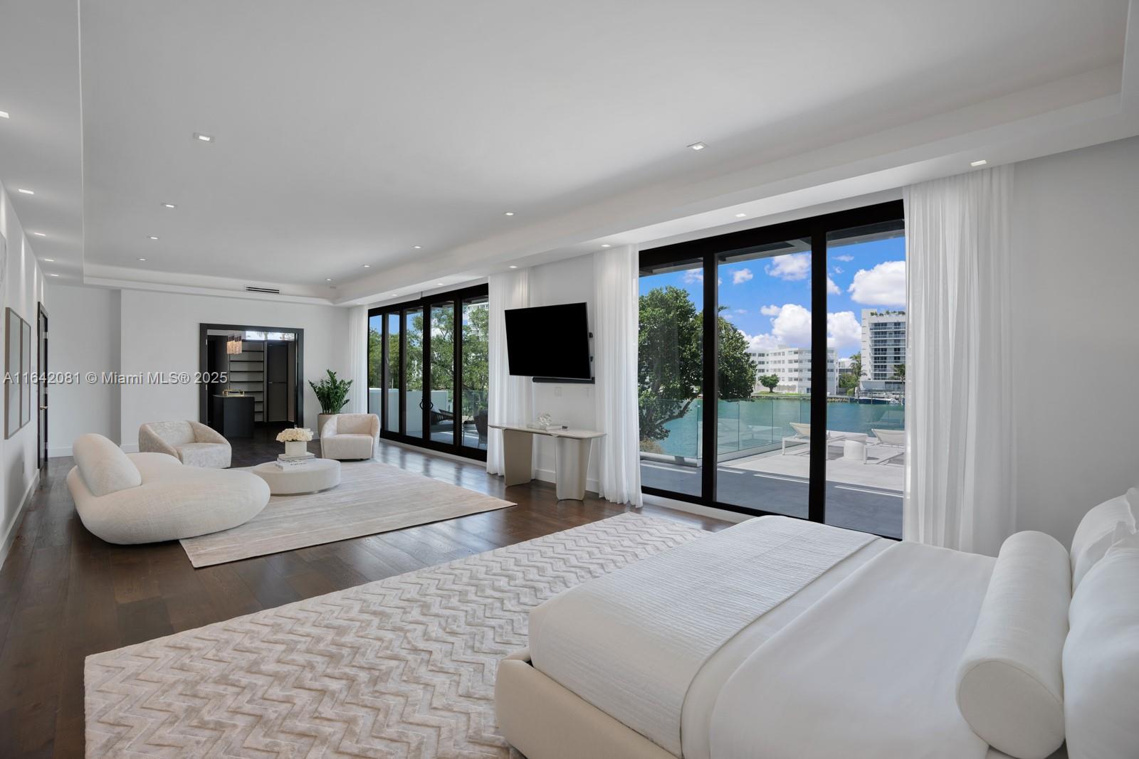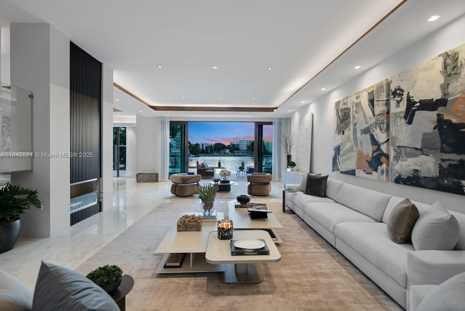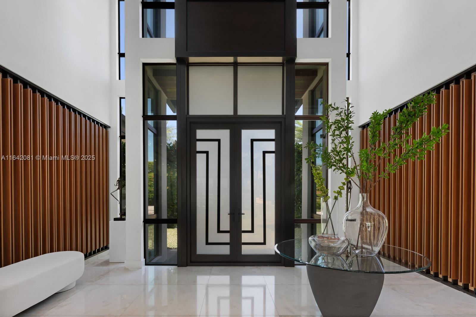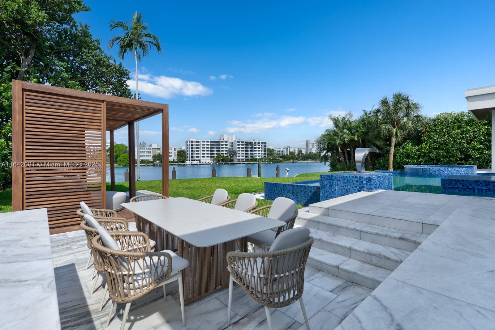 Step Inside with Me! Nestled within guard-gated Bal Harbour Village, 100 Bal Bay is 1 of only 36 waterfront addresses in this private enclave. 25' foyer ceilings open to a wood paneled hosting salon, graceful dining room and breakfast lounge all with Western views. The main level is completed with a contemporary marble kitchen + expansive eat-in island as well as 5 spacious guest suites. A modern staircase leads to the upper level dedicated to a palatial primary with seating area, dual dressing rooms and dual baths, adjacent study, and sun-deck to take in the sunsets. Embrace the outdoors at the mosaic pool + spa, 2 cabanas, greenspace, and dock along 95' of waters with open bay access. An elevator, 4-car garage, and proximity to Bal Harbour Shops, parks & the beach complete this offering.