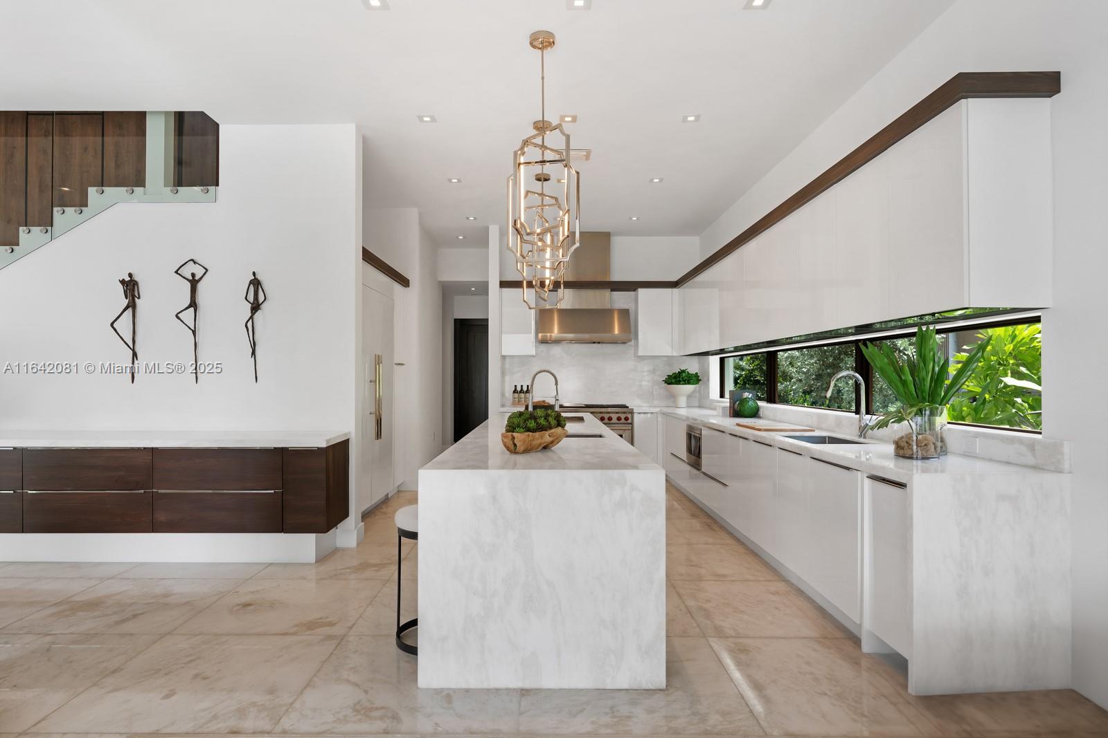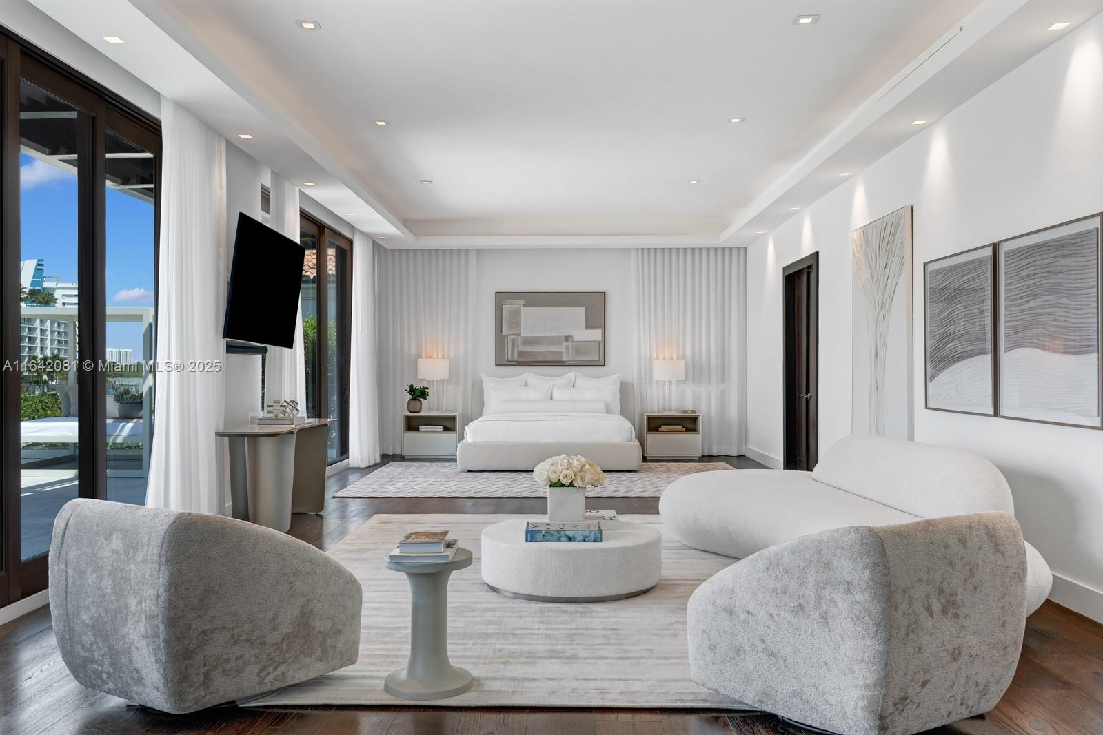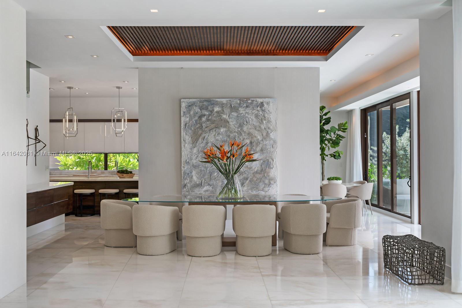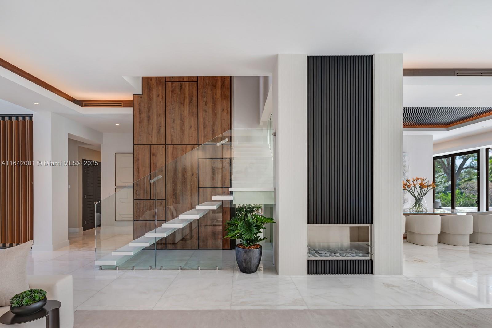 Step Inside with Me! Nestled within guard-gated Bal Harbour Village, 100 Bal Bay is 1 of only 36 waterfront addresses in this private enclave. 25' foyer ceilings open to a wood paneled hosting salon, graceful dining room and breakfast lounge all with Western views. The main level is completed with a contemporary marble kitchen + expansive eat-in island as well as 5 spacious guest suites. A modern staircase leads to the upper level dedicated to a palatial primary with seating area, dual dressing rooms and dual baths, adjacent study, and sun-deck to take in the sunsets. Embrace the outdoors at the mosaic pool + spa, 2 cabanas, greenspace, and dock along 95' of waters with open bay access. An elevator, 4-car garage, and proximity to Bal Harbour Shops, parks & the beach complete this offering.
