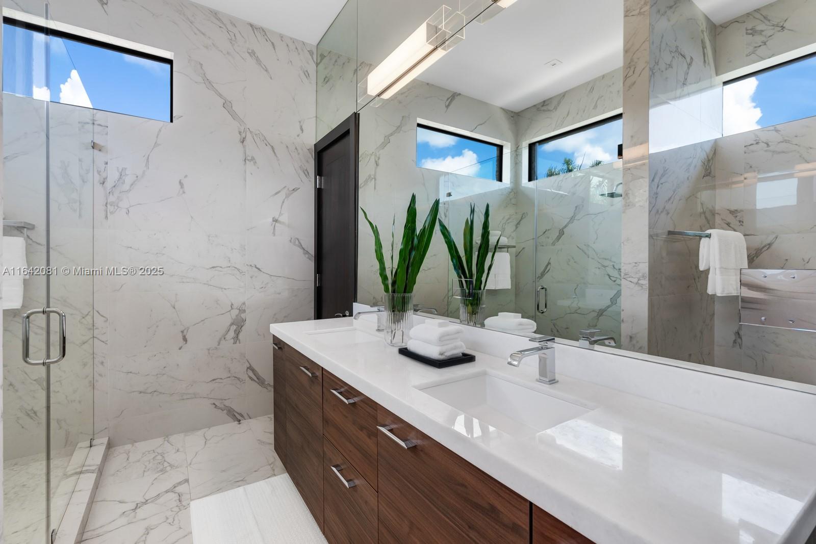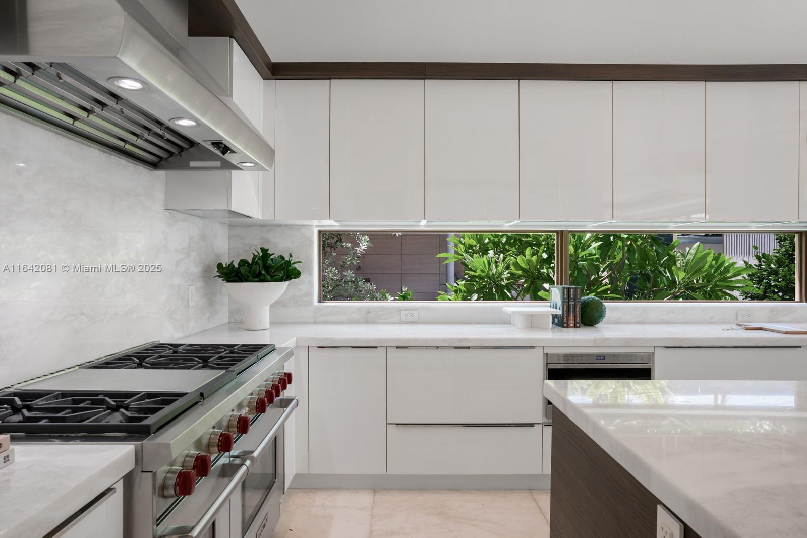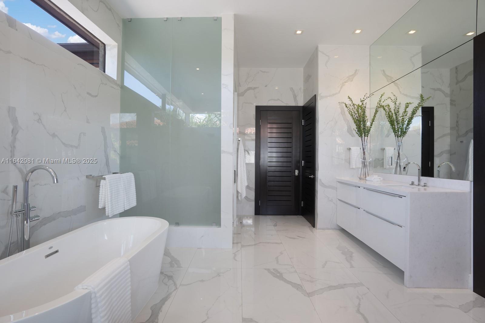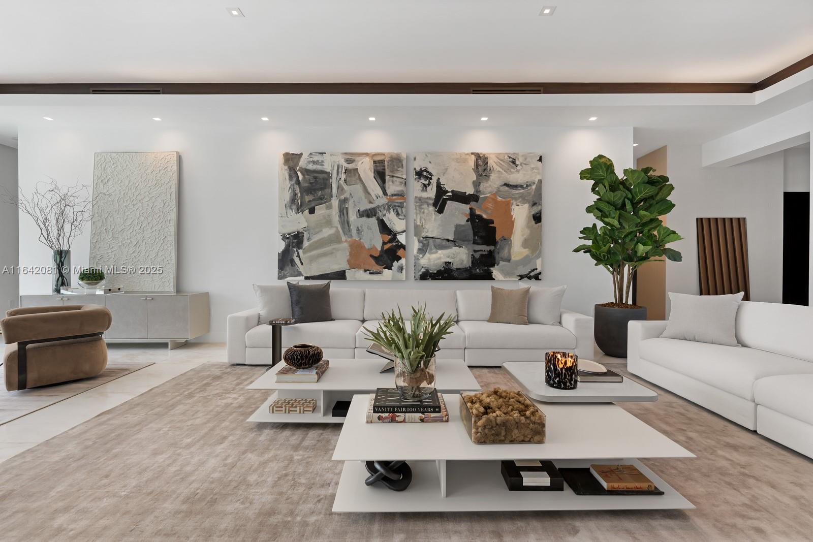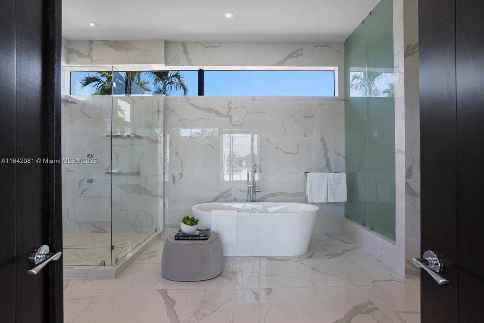 Step Inside with Me! Nestled within guard-gated Bal Harbour Village, 100 Bal Bay is 1 of only 36 waterfront addresses in this private enclave. 25' foyer ceilings open to a wood paneled hosting salon, graceful dining room and breakfast lounge all with Western views. The main level is completed with a contemporary marble kitchen + expansive eat-in island as well as 5 spacious guest suites. A modern staircase leads to the upper level dedicated to a palatial primary with seating area, dual dressing rooms and dual baths, adjacent study, and sun-deck to take in the sunsets. Embrace the outdoors at the mosaic pool + spa, 2 cabanas, greenspace, and dock along 95' of waters with open bay access. An elevator, 4-car garage, and proximity to Bal Harbour Shops, parks & the beach complete this offering.