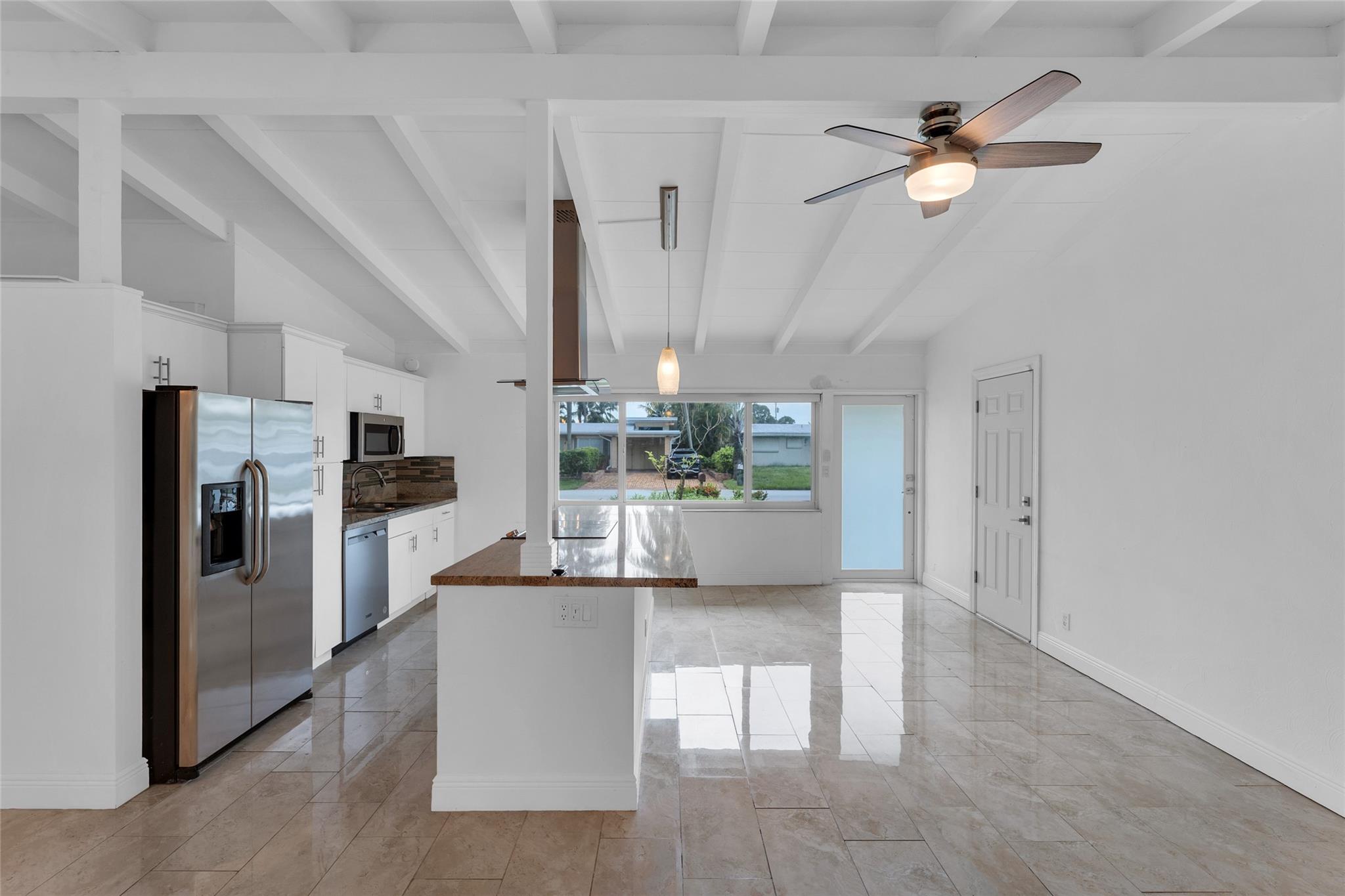 This cozy retreat features 3 bedrooms, 2 bathrooms and a spacious living area with vaulted ceilings and plenty of natural light. The expansive backyard includes an orchid garden, a wet bar, and ample space for a pool and/or outdoor entertaining. Additional features include an updated kitchen with stainless steel appliances, a one-car garage with a separate laundry room, impact windows/doors, and porcelain tile floors. Incredible location, just minutes from downtown, the beaches and the airport.