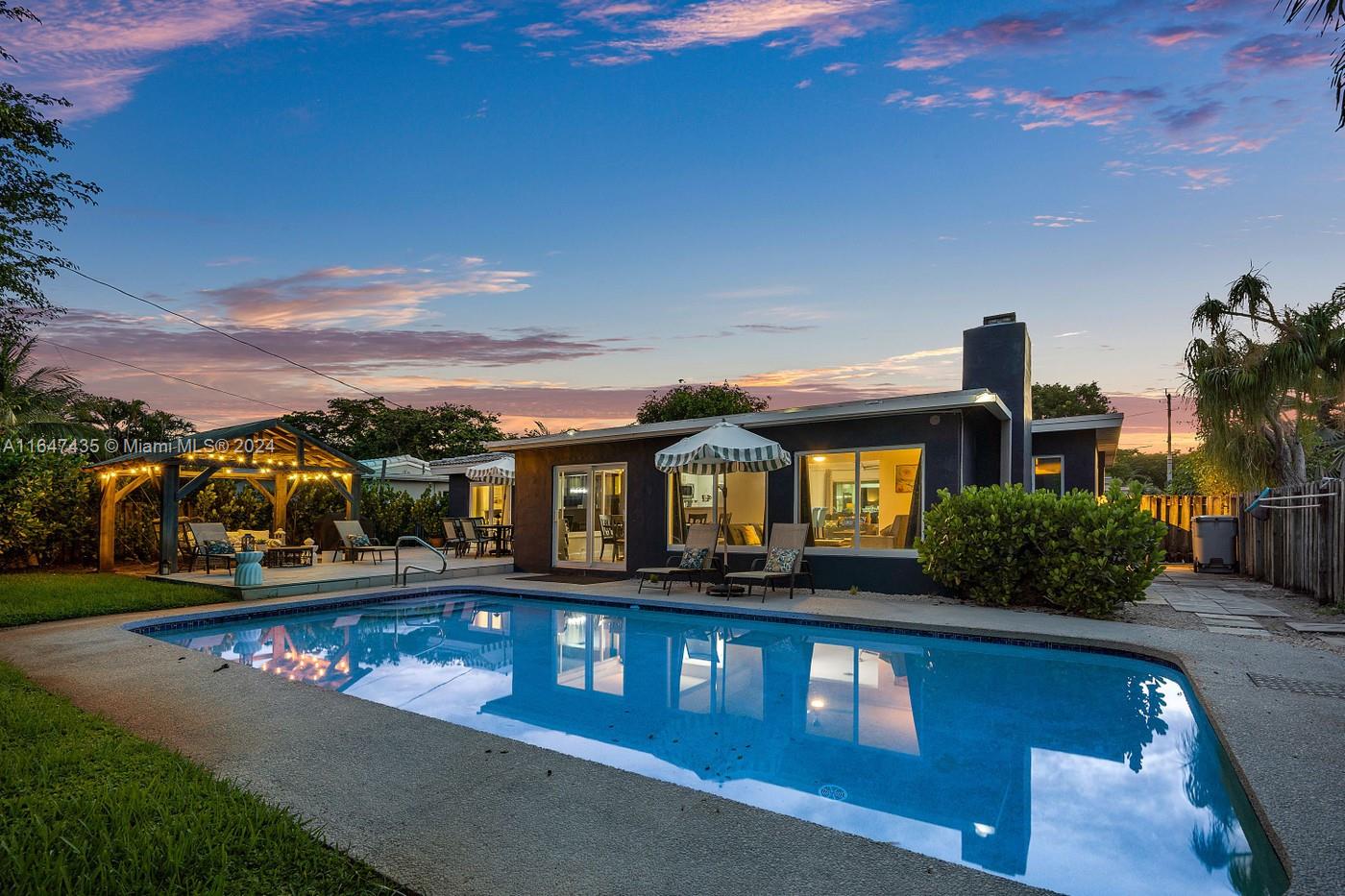 This newly updated and ready for move-in! This open floor concept 3-bedroom home includes separate living room and family room, heated pool, tankless water heater, hurricane impact windows and doors, a whole house generator, large dining space, and much more! The backyard is quintessential Florida living- cabana with a pergola, Lounge by the pool and enjoy complete privacy within tropical landscaping. Barrel tile roof, all tile flooring throughout, a 2023 Water heater, and a 2023 A/C with Nest Thermostat. Perfectly located in Lyon’s Park, so you can enjoy easy access to the beach, the Amphitheater, local highways, restaurants, shopping, Pompano Airpark, Fisher Family Pier and everything Pompano has to offer! NO HOA! Shown by appointment only.