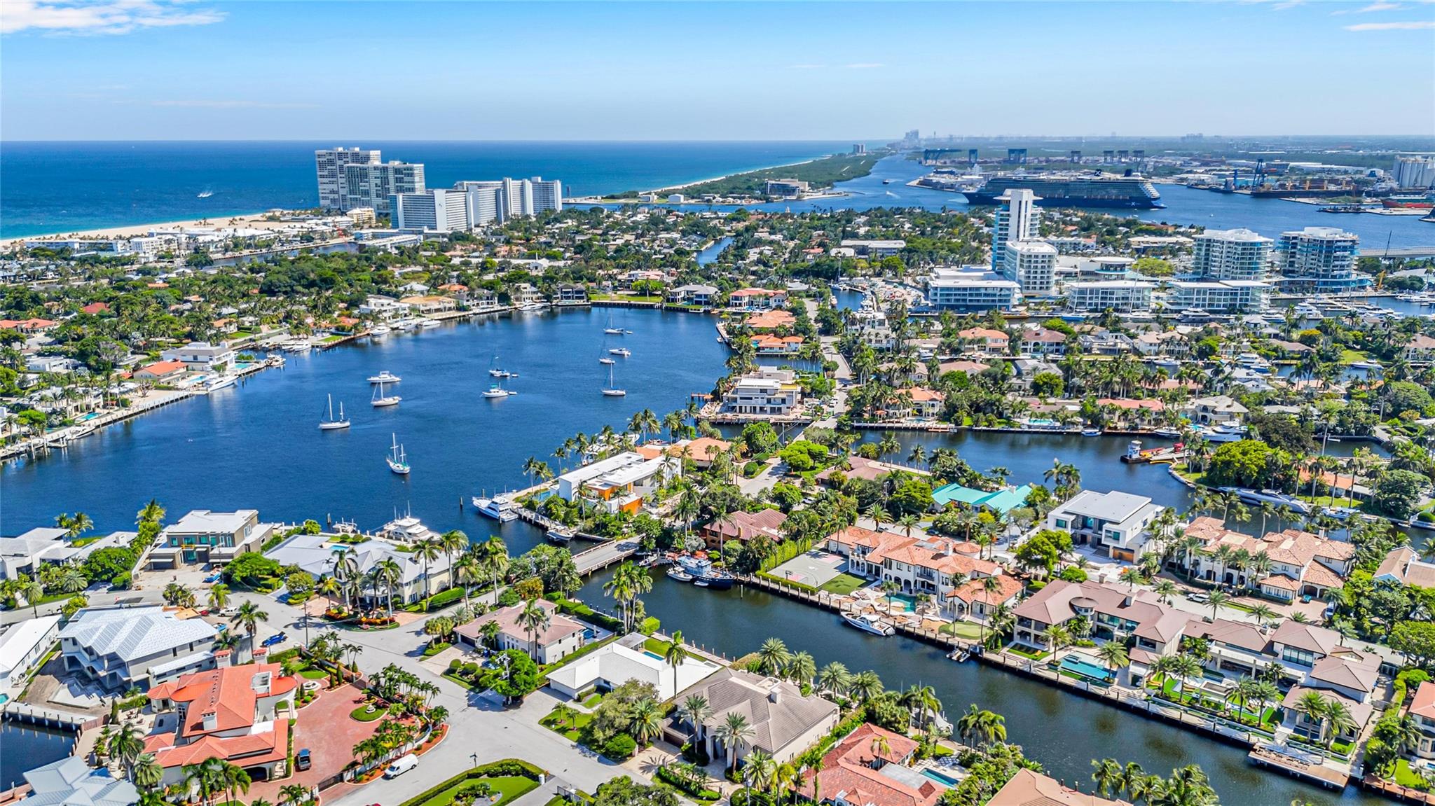 Introducing an exquisite luxury estate built in 2013 nestled in the prestigious gated Harbor Beach This architectural masterpiece offers 6 ensuite bedrooms 7.2 lavish bathrooms a grand media room, executive office and a state-of-the-art gym. The gourmet kitchen is a chef’s dream, a Viking 6-burner gas range, dual Miele ovens, dual Viking refrigerators/freezers and a butlers pantry. Spectacular temperature-controlled wine cellar, formal dining room, and sophisticated second living room with a cozy fireplace. The movie/media room with oversized screen, Outdoor living with a climatized summer kitchen, expansive veranda, sundeck, and a stunning swimming pool, complete with a cabana bath and outdoor shower. 100ft concrete dock Crestron smart home technology throughout and full-house generator