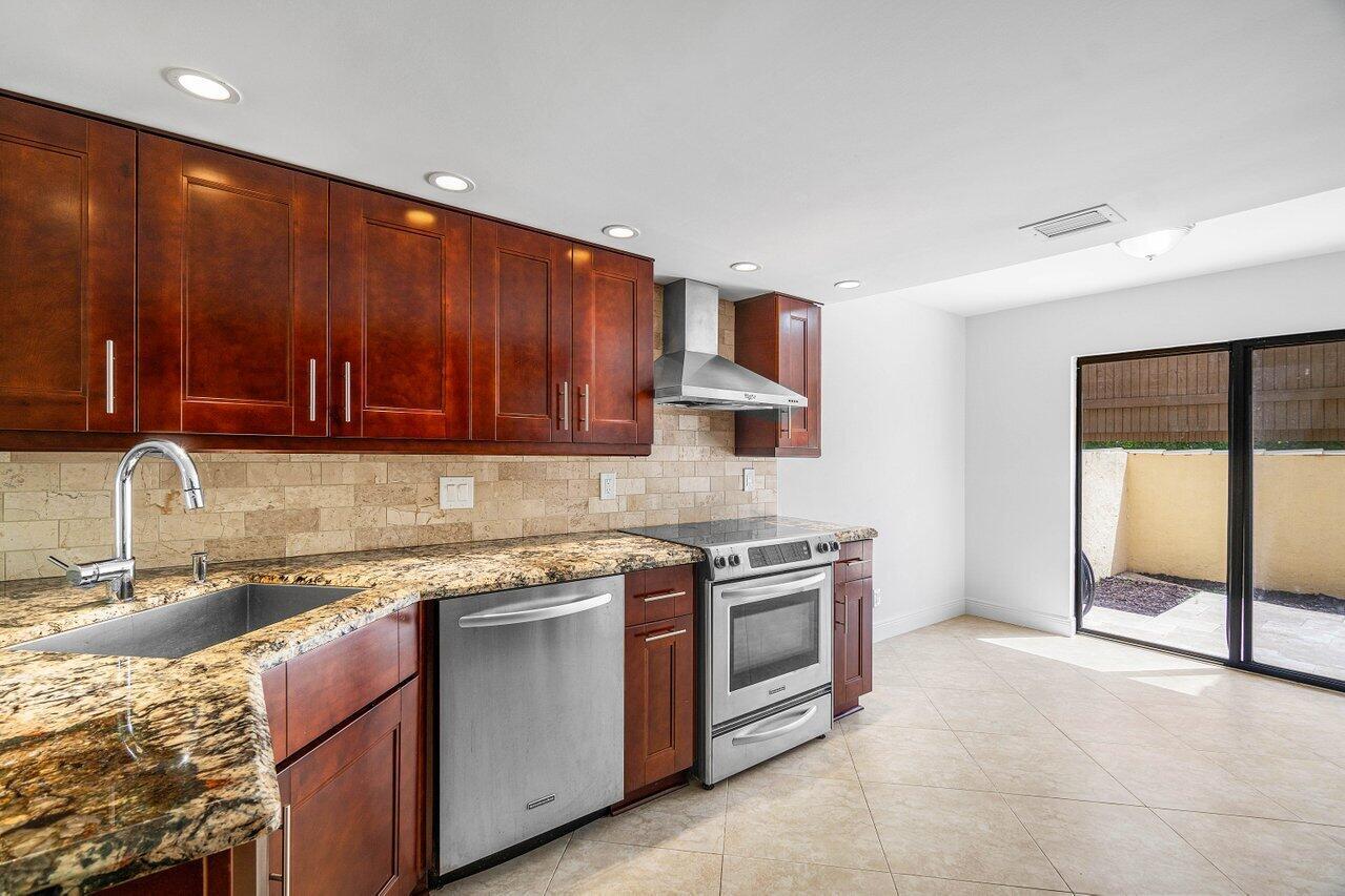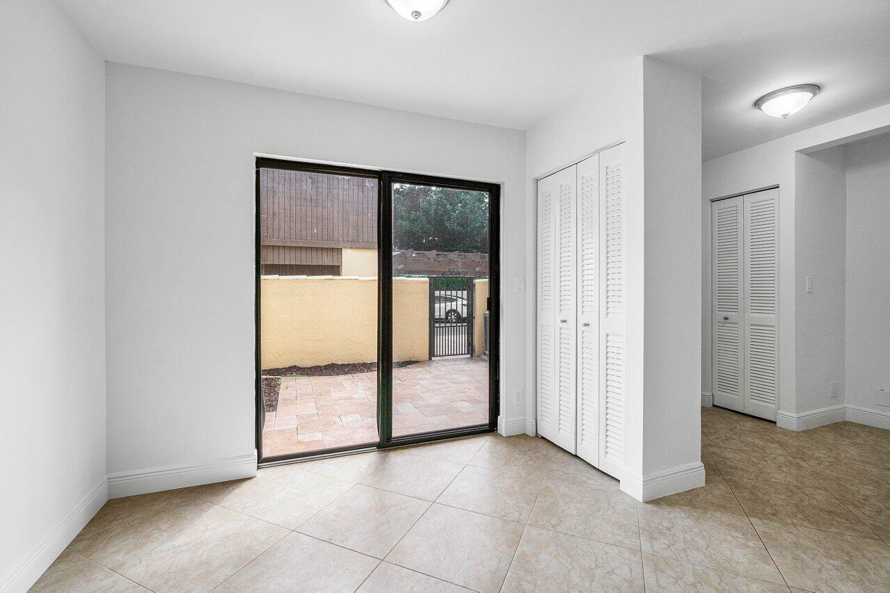 Rarely available....minutes to FAU and Boca Regional Hospital. Beautiful 2 BR, 2.5 BA townhouse in East Boca. Large townhome in quiet community featuring 2 over sized patios, private balcony off the primary BR and 2 covered spots right in front of your home. 1st floor features neutral tile on the diagonal, large eat in kitchen with wood cabinets, gorgeous granite, S/S appliances, pantry and breakfast bar open to oversized living area with sliders to private patio. Upstairs is spacious ensuite bedroom, W & D, and generous primary BR with double sinks and tub/shower. Plenty of light and closets ...feels like a single family home. Backyard overlooks garden area...no rear neighbor. Close to community pool. Extremely desirable east Boca location close to beach, pet and investor friendly!