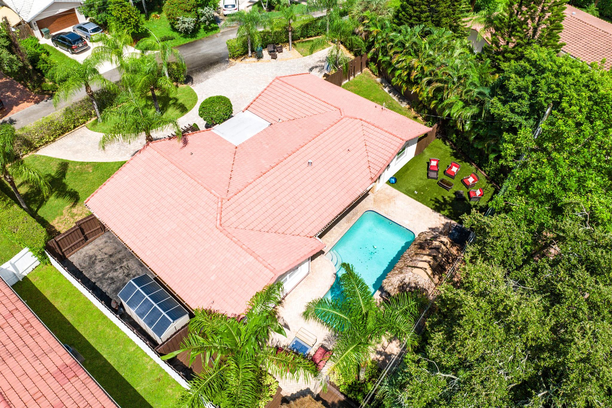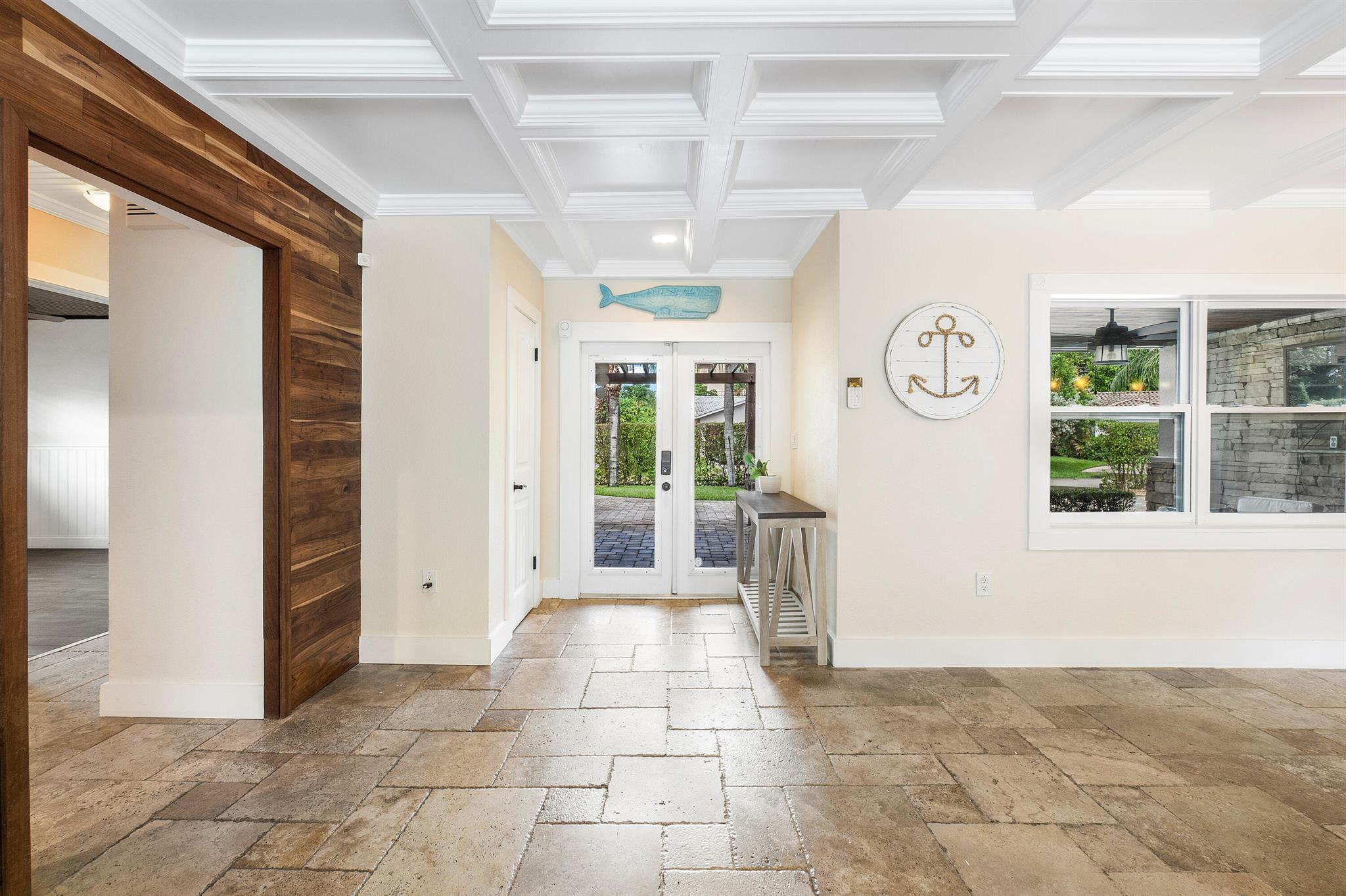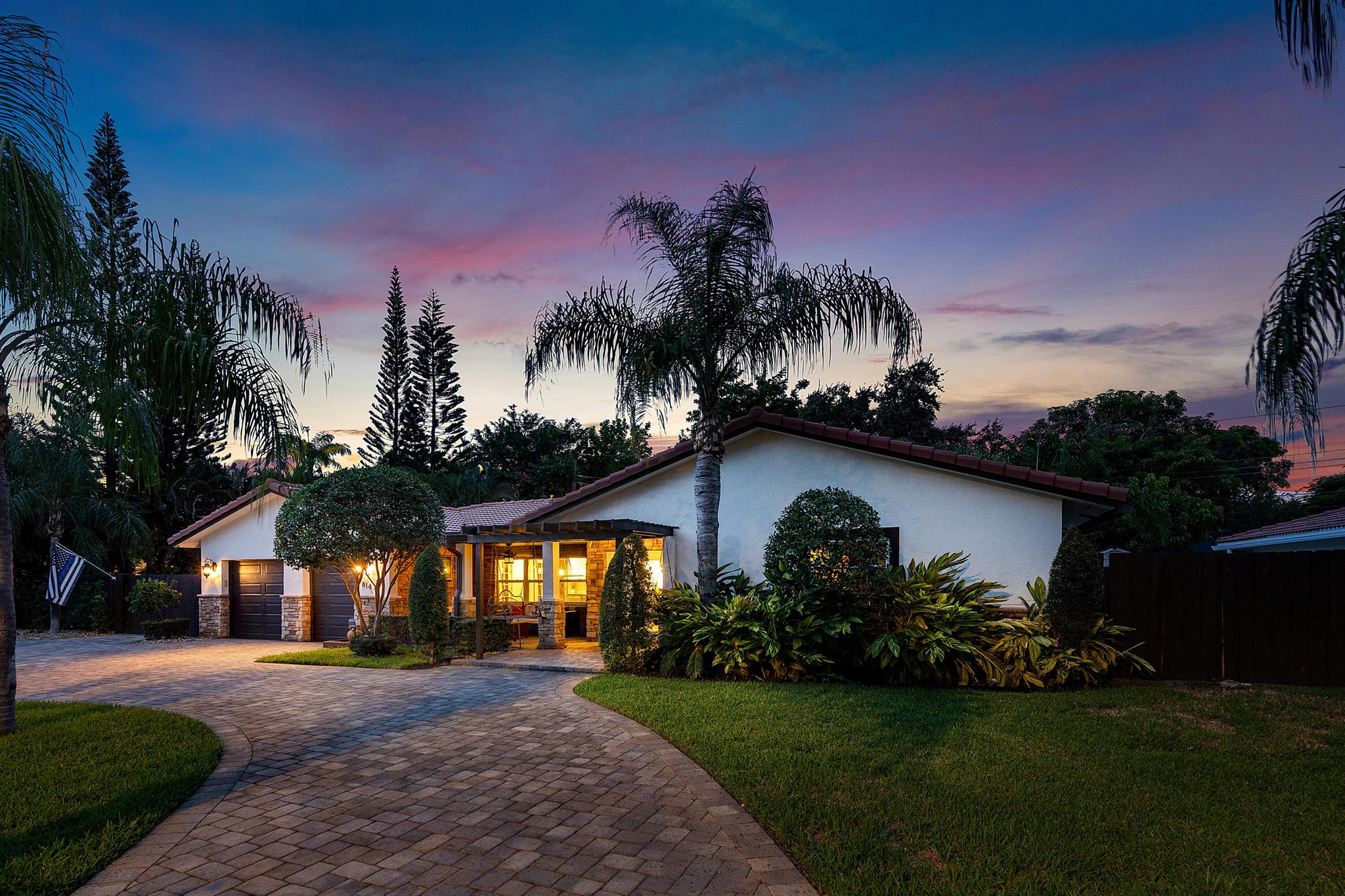 This East Boca Gem sited on an oversized 10,000 SF Lot is now available! You are greeted be a beautiful facade with a private, ultra-large circular paved driveway, stacked stone finishes and lush landscaping. Tons of natural light, updated kitchen with stone countertops, tons of cabinet and storage space and Stainles Steel appliances. Custom trims & coffered ceilings throughout, Resort style backyard with Southern exposure for sun all day long! Heated pool and great outdoor living spaces offer you the South Florida lifestyle you're looking for. Amazing outdoor tiki bar with a built-in summer kitchen, perfect for entertaining and outdoor security system in place. You absolutely cannot beat this location in the Tunison Palms / Old Floresta area, highly desirable, historic