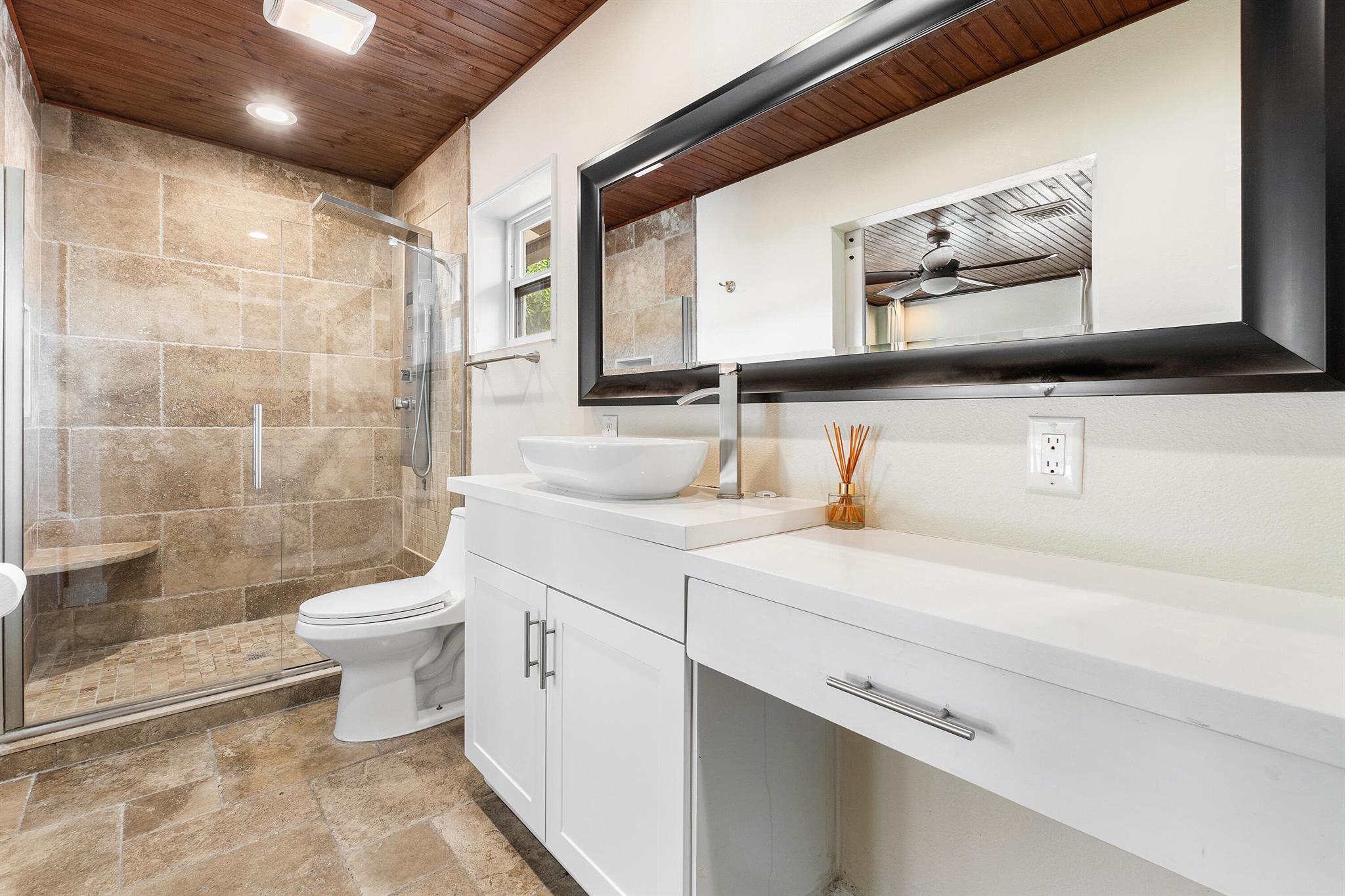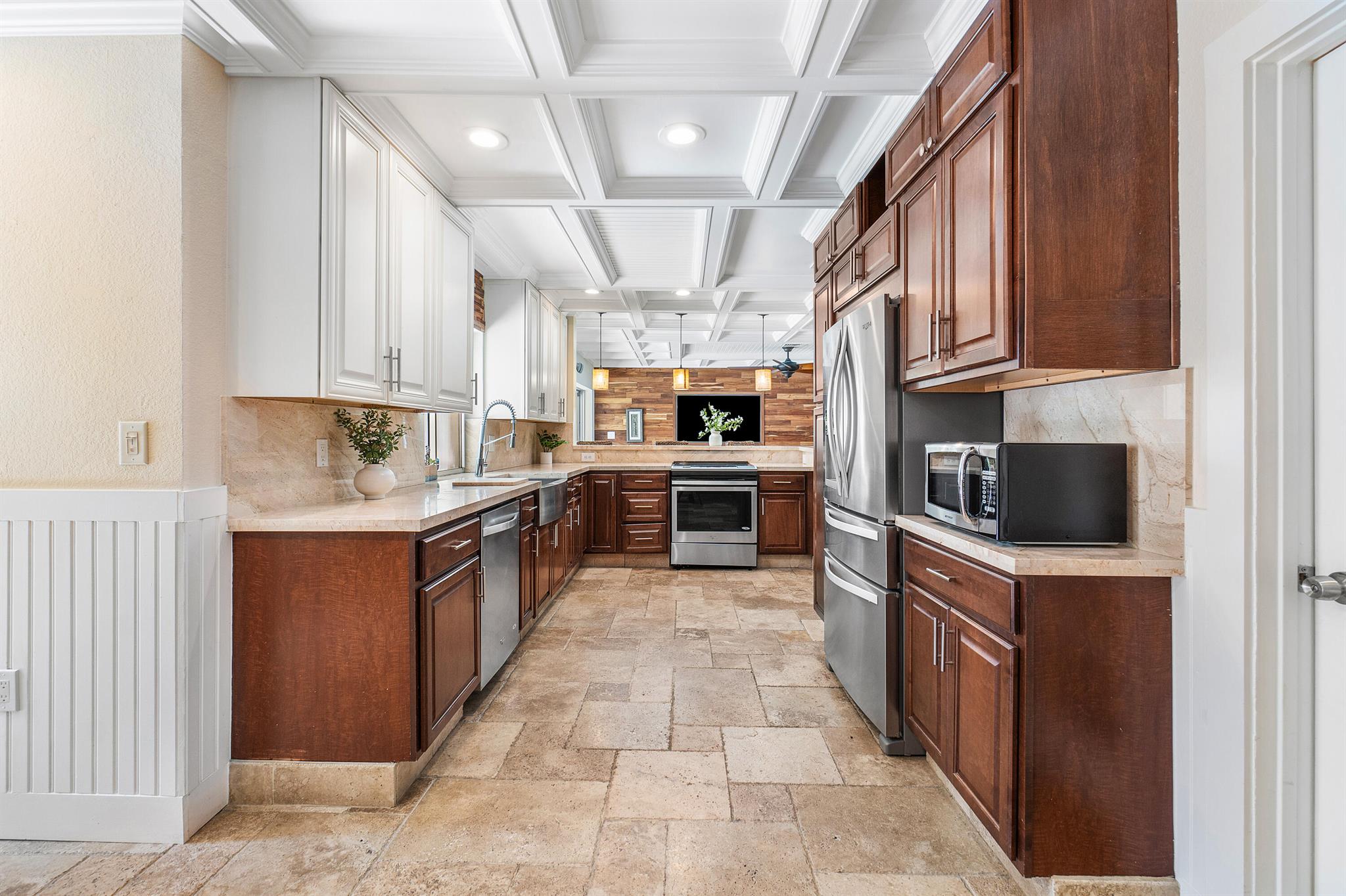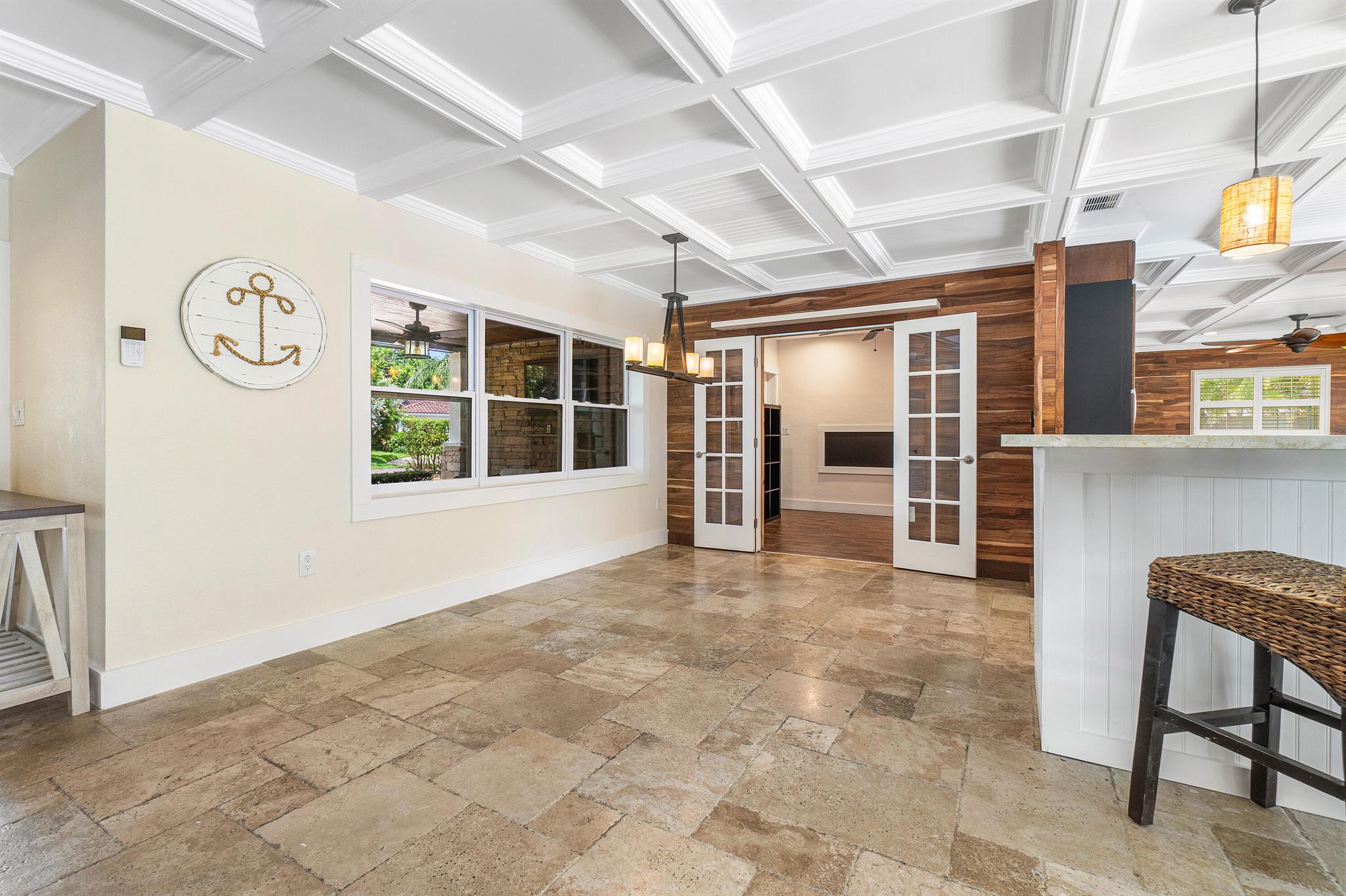This East Boca Gem sited on an oversized 10,000 SF Lot is now available! You are greeted be a beautiful facade with a private, ultra-large circular paved driveway, stacked stone finishes and lush landscaping. Tons of natural light, updated kitchen with stone countertops, tons of cabinet and storage space and Stainles Steel appliances. Custom trims & coffered ceilings throughout, Resort style backyard with Southern exposure for sun all day long! Heated pool and great outdoor living spaces offer you the South Florida lifestyle you're looking for. Amazing outdoor tiki bar with a built-in summer kitchen, perfect for entertaining and outdoor security system in place. You absolutely cannot beat this location in the Tunison Palms / Old Floresta area, highly desirable, historic
