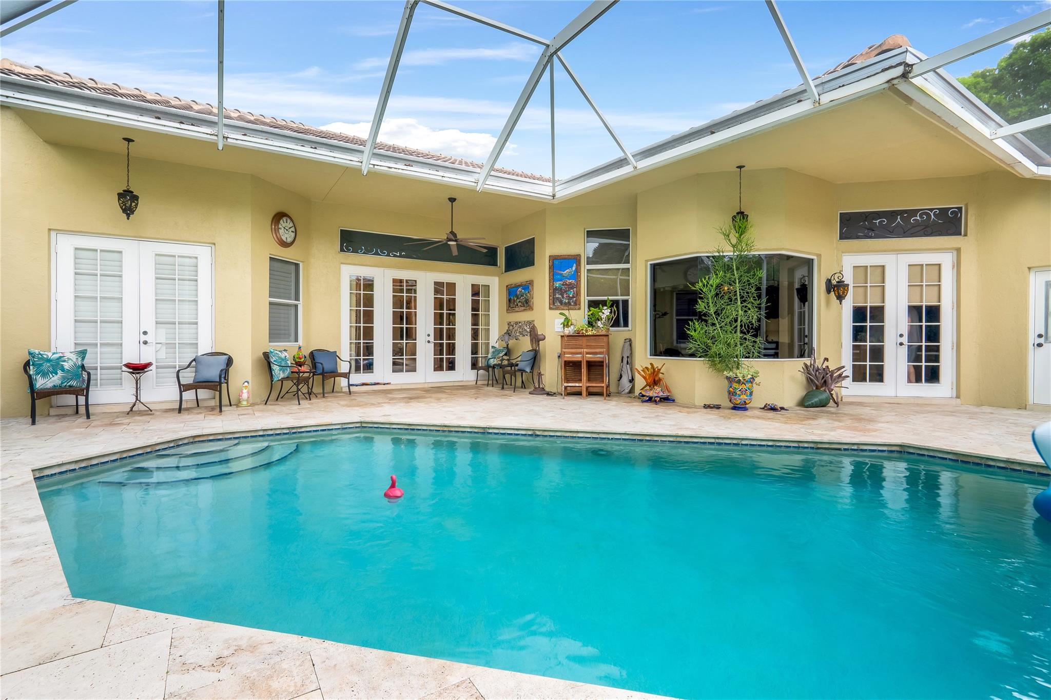 The minute you walk through the front door you will know that you have found your new home! Fabulous floor plan with Quality features throughout. 23 1/2 '' porcelain tile flooring, Chef's kitchen w/custom cabinetry, Faber ventilation system, Subzero refrigerator, GE Monogram appliances, Thermador glass cook top, Kitchen aid stand alone ice-maker. Master bath remodeled recently w/steam shower and teak collapsible benches. Hunter Douglas window treatments and Plantation Shutters throughout. Crown molding,6'' baseboards, Led high hat lighting . Oversized family room w/wet bar. Large screened pool/entertaining area with Travertine tile has cook area with sink and refrigerator. 22 kw full home generator w/ inground tank. Many more features await your discovery! Priced to sell , Don't wait !!!