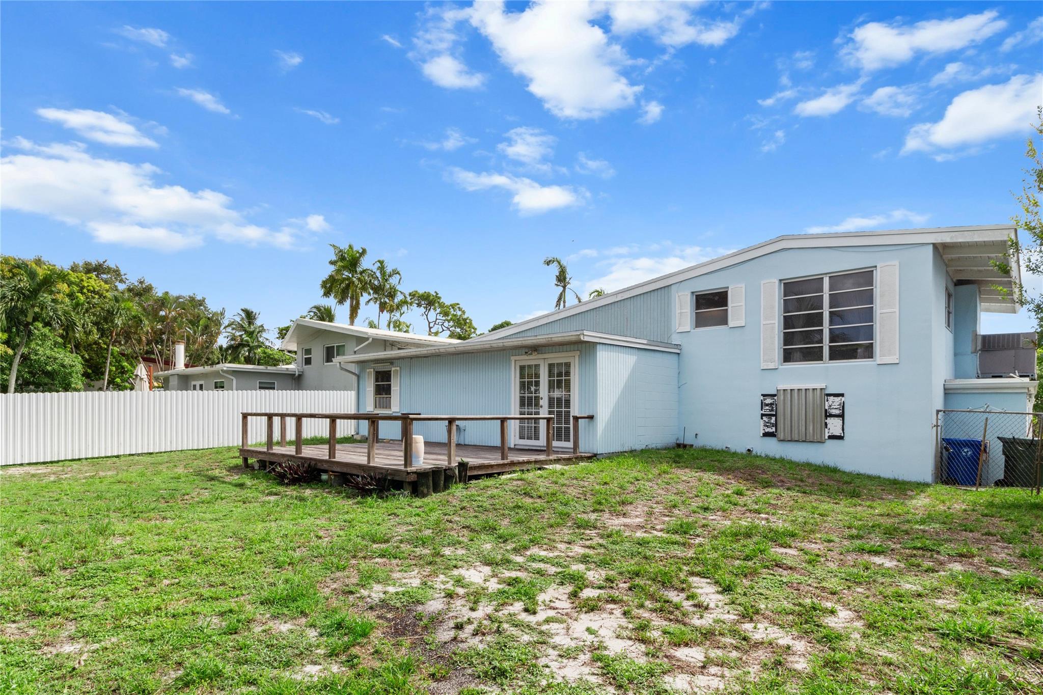 Welcome to this unique 3-bedroom, 2-bath multi-level home in the desirable Lauderdale Isles community. Full of original charm, this property is move-in ready or offers the opportunity to renovate and customize to your taste. Inside, you'll find a spacious layout with ample room for living and entertaining. The large Florida room is ideal for gatherings, while the expansive backyard with a wood deck provides plenty of outdoor space. There's room to add a pool and create your oasis! Two recently serviced AC units ensure year-round comfort. With ample storage, you'll have space to stay organized. Whether you're seeking a character-filled home or a canvas for your dream space, this Lauderdale Isles gem offers endless possibilities.