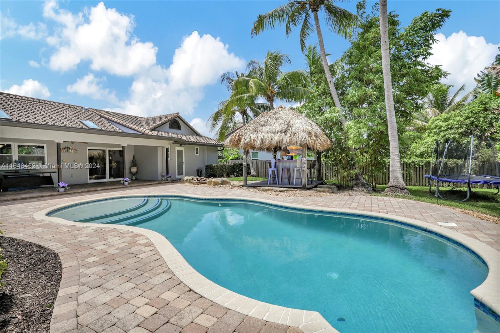 Welcome to your dream home in the sought after Plantation Acres community. This beautifully maintained 4 BED 3 BATH home offers the perfect blend of luxury, comfort, and style. Step inside to find beautiful finishes including impact windows and doors throughout. The roof was replaced in 2020. The chef's kitchen is equipped with top-of-the-line appliances and ample counter space. The true highlight of this property is the incredible backyard oasis. Dive into your saltwater pool or relax under the tiki hut. The location is incredible and close to shopping, dining, major highways, and the Sawgrass Mall. Don't miss out on this exceptional opportunity to own a piece of paradise!