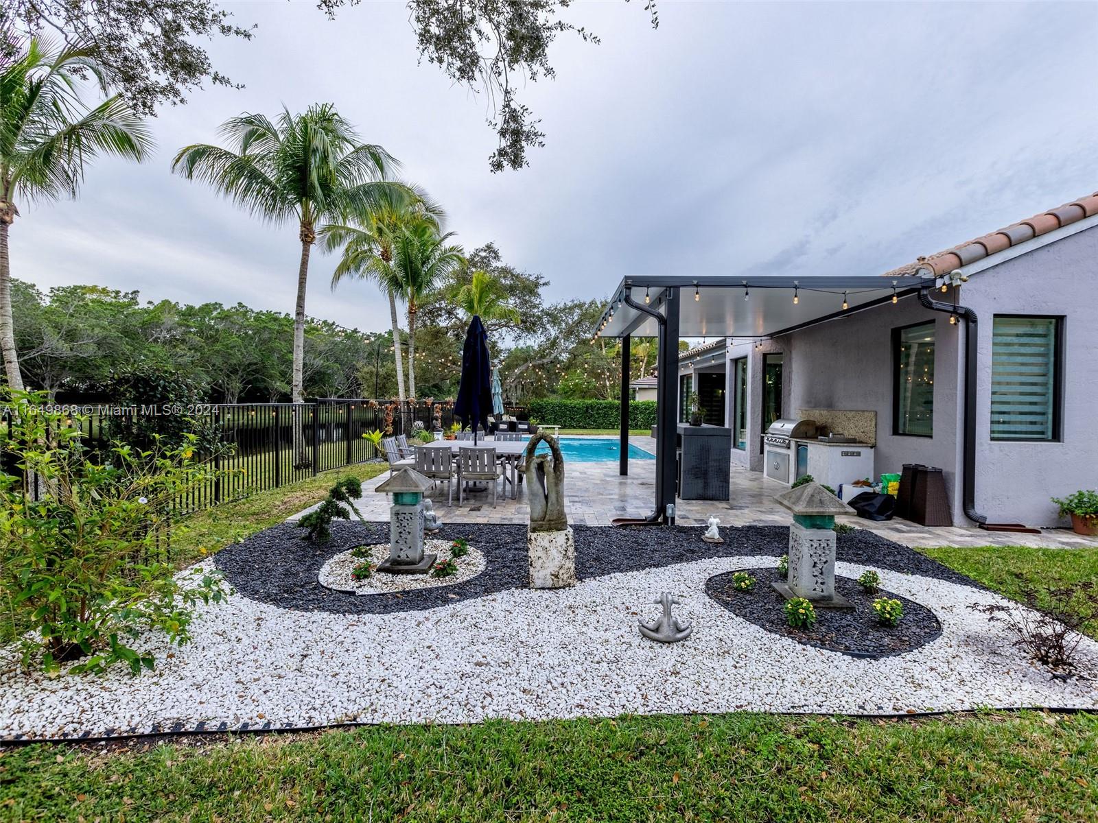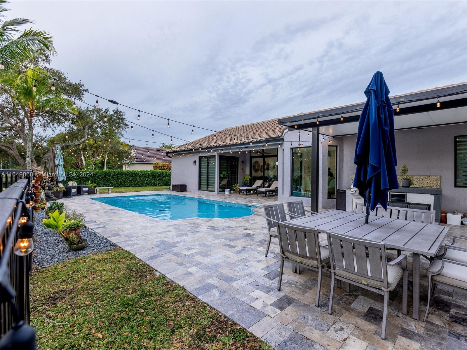 Completely renovated modern masterpiece in The Lakes! This 5 BR, 4 full bathrooms home boasts a stunning entry walkway, leading to a spacious living area with/ high ceilings and oversized porcelain tiles. The New kitchen features top-of-the-line stainless steel appliances, white granite waterfall counters, a huge center island, and a custom coffee station/bar with a wine fridge. Enjoy the best of Florida living with/ a covered patio, expansive pool deck, covered outdoor kitchen, and beautifully landscaped grounds overlooking the canal for ultimate privacy. Additional features include New impact windows and doors, a New barrel tile roof (2022), a laundry room, custom closets, a finished oversized garage, and a huge driveway. Turnkey is an understatement! Make this your dream home!