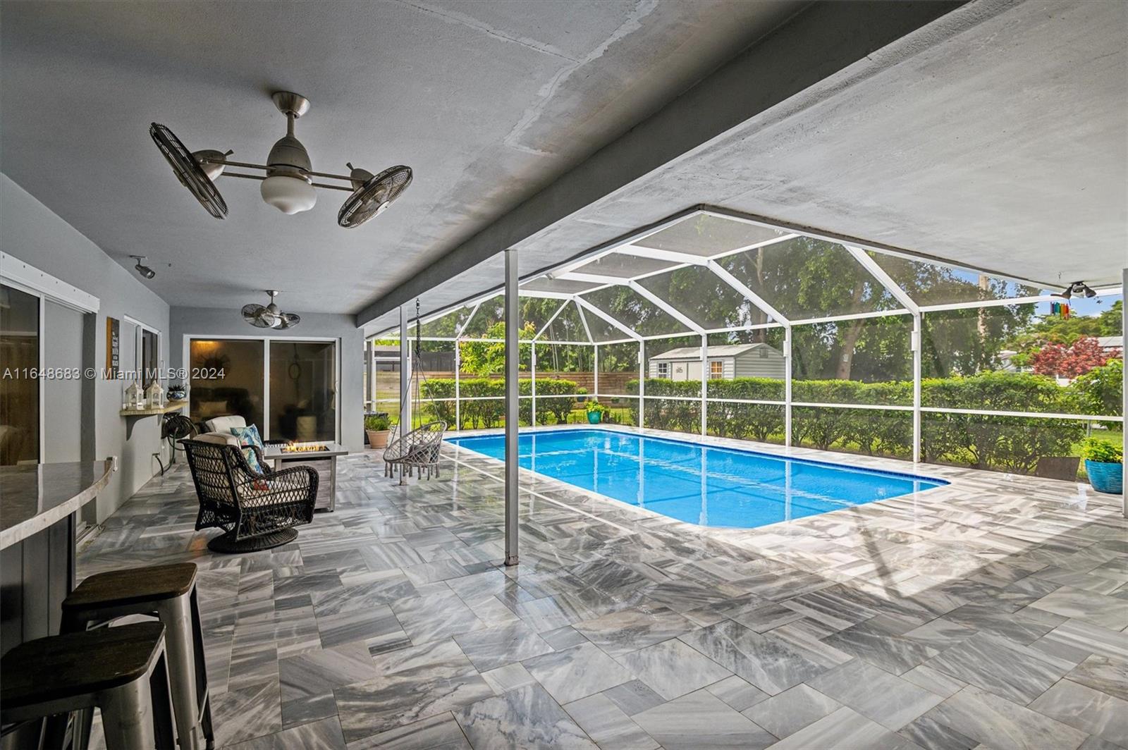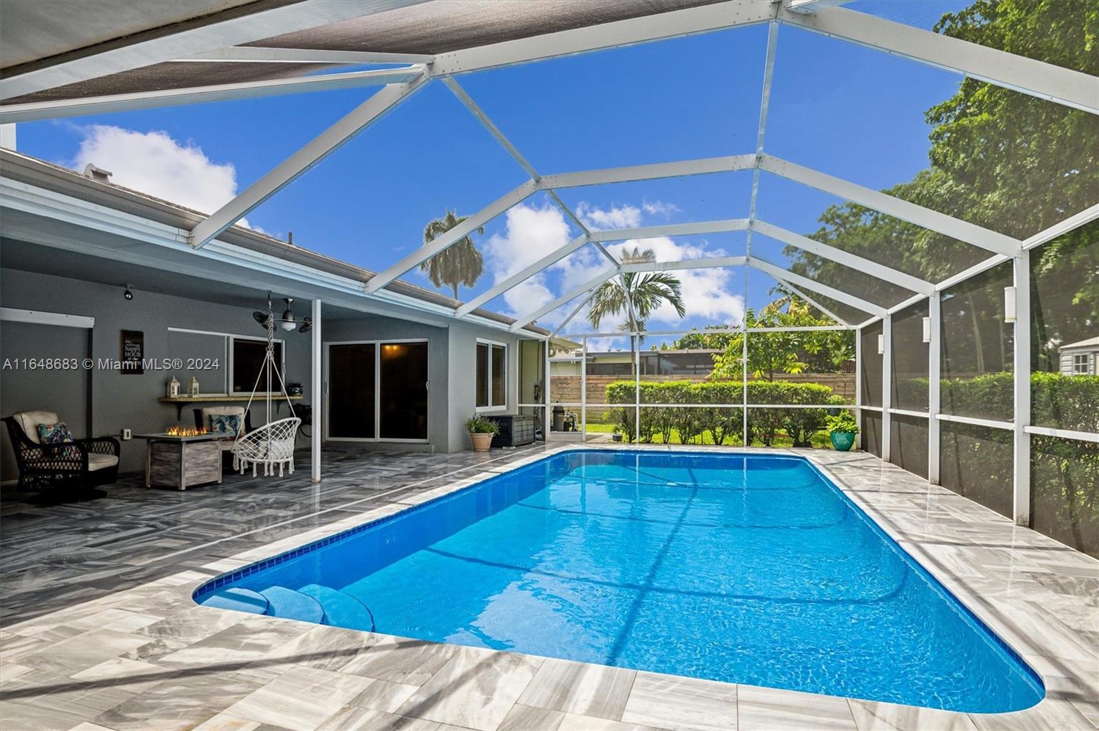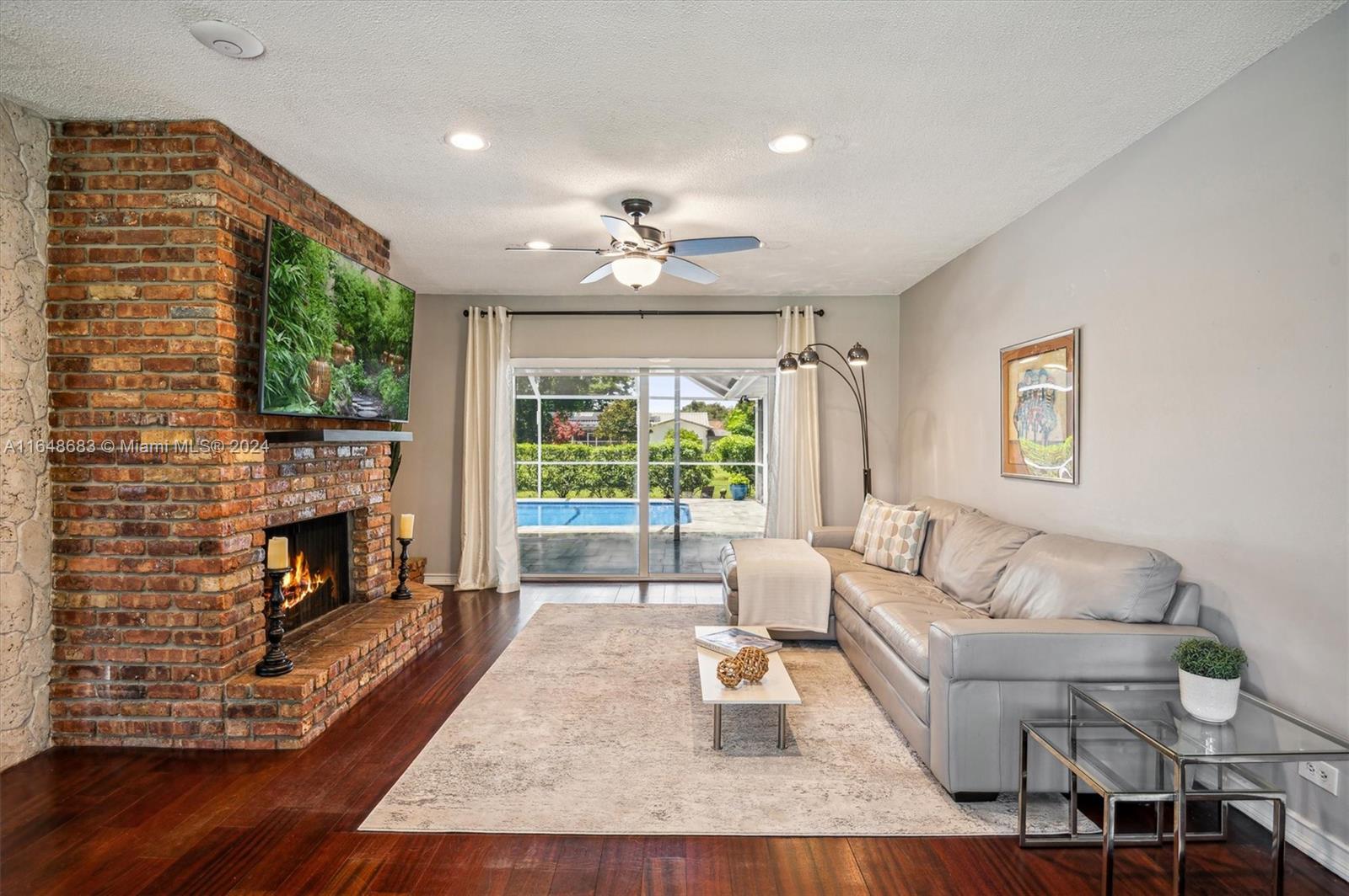 Spacious 3 bed/2 bath, 2 car garage pool home w/over 2,500 SqFt features all the updates you've been looking for. Sparkling salt water pool w/new marble pavers. IMPACT WINDOWS & DOORS throughout. Bright entry foyer leads to an open concept living area w/sunken living room, brick FIREPLACE, two bay windows, updated kitchen w/remote LED lighting, hardwood floors throughout, and generous family room that could convert to a 4th bedroom suite. Opposite the living areas you'll find two guest bedrooms & updated guest bath and an oversized primary suite all w/direct pool access. ROOF (2016), AC (2018), CAST IRON PIPES REPLACED (2021), shed w/drywall & electric (2021), fully fenced yard, NEW GUTTERS w/leaf filter, IRRIGATION & WATER HEATER all within last 3 years.