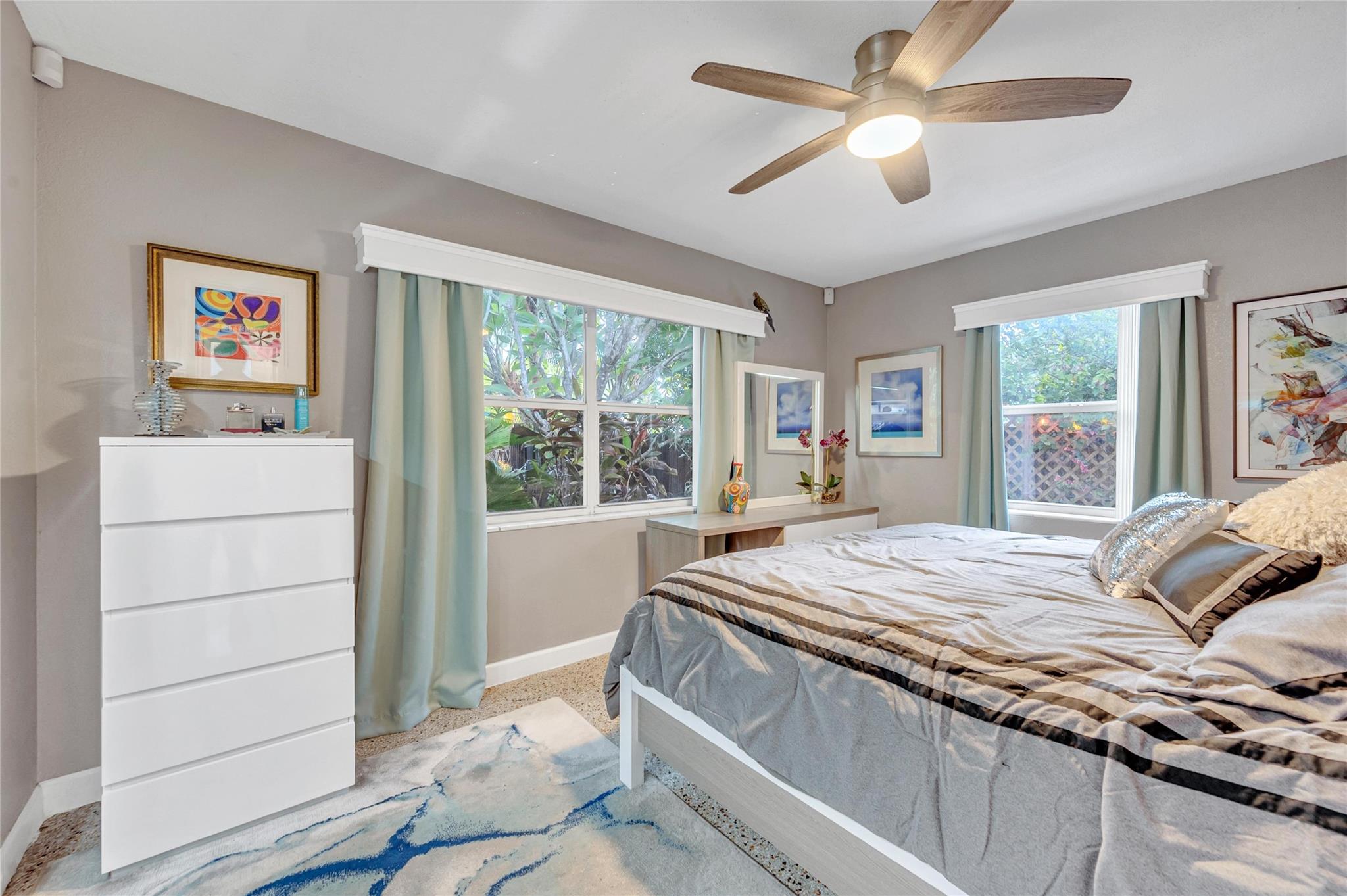 Mid-century modern gem on a private, oversized corner lot in Middle River Terrace! Updated 2/1 features restored terrazo flooring, conversation-pit style living room and galley kitchen with granite countertops, stainless steel appliances and decorative backsplash. Impeccalbe, lushly landscaped grounds will have you feeling as if you are living at a resort 24/7! Italian marble pool deck surrounding a heated AND chilled salt water pool with waterfall, outdoor showers and multiple sitting areas create the perfect Zen ambiance! All of this plus a potting/planting area, extra storage room/shed, covered carport and an air-conditioned laundry room! Excellent eastside location....only a few blocks from Wilton Drive and just minutes to downtown, Las Olas and the beach!!