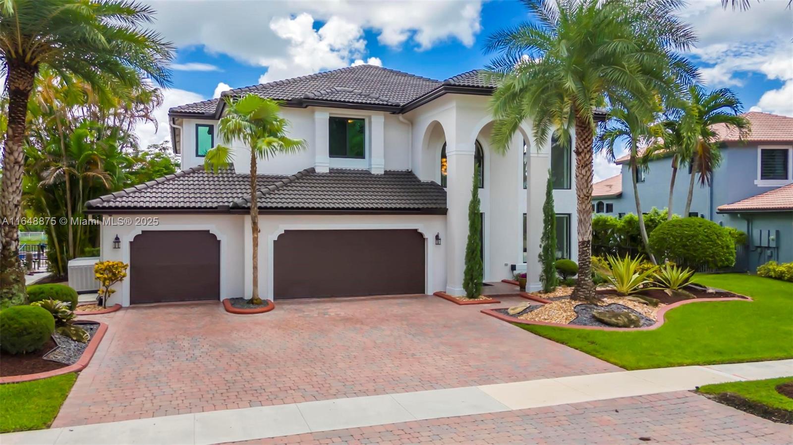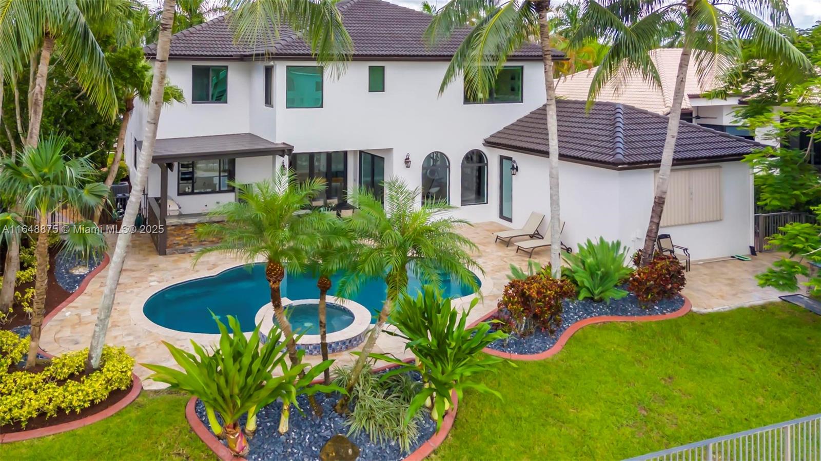 Discover luxury in the exclusive gated community of Sunset Lakes with this extraordinary lakefront estate. This stunning home features 5 bedrms, 4.5 baths, and a 3-car garage, all perfectly situated in a cul-de-sac. The home boasts a newly renovated gourmet kitchen with top-of-the-line finishes, new tile flooring downstairs, and fresh interior and exterior paint. Enjoy cinematic experiences in your private home theatre or entertain guests in style with the summer kitchen with a custom-built gazebo. NEW IMPACT WINDOWS, DOORS, AND GARAGE DOORS!! A full house propane generator with a 250-gallon underground tank. The pool has a new saltwater system, heater, and pump. Centrally located near top-rated schools, shopping, and dining, this home offers a perfect blend of luxury and convenience.
