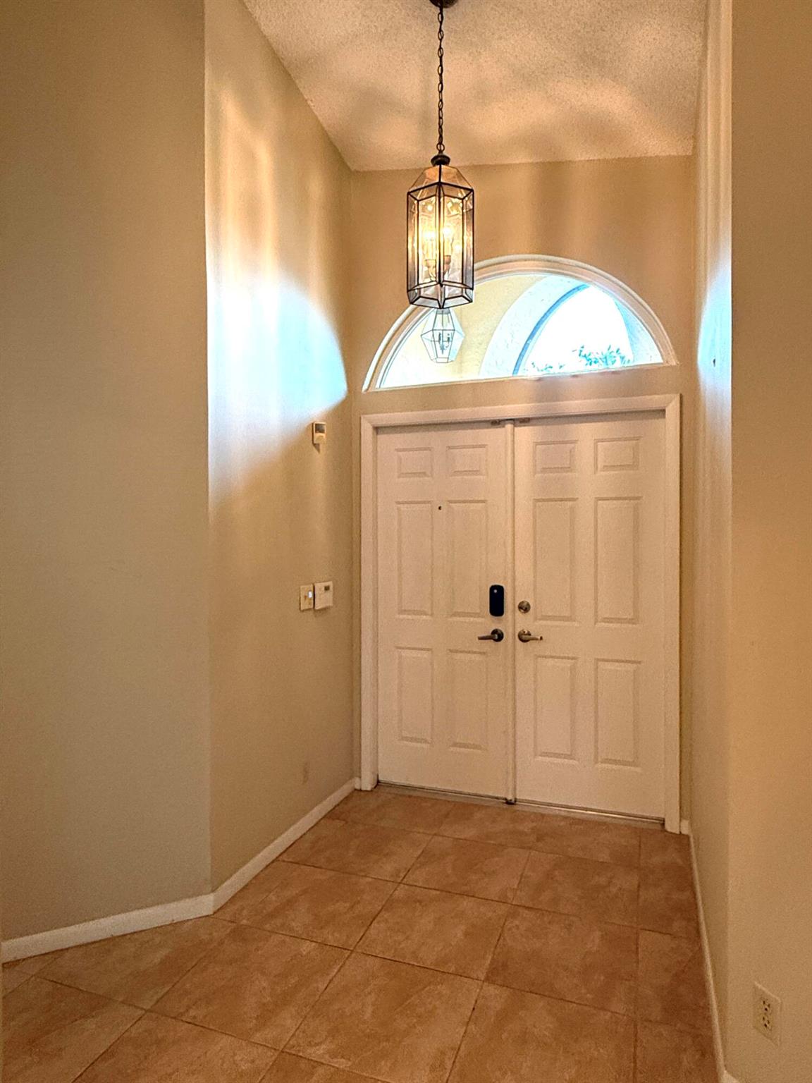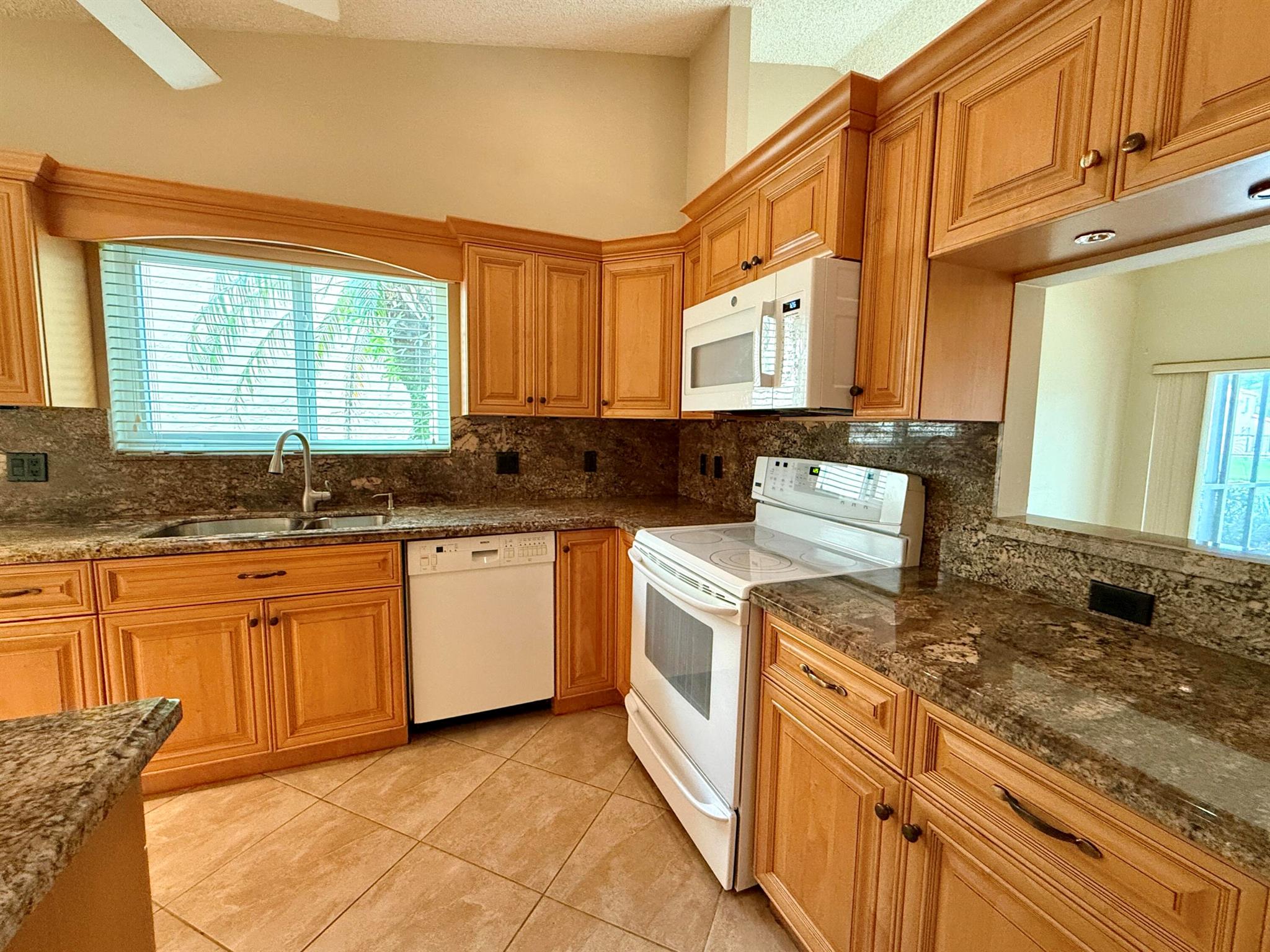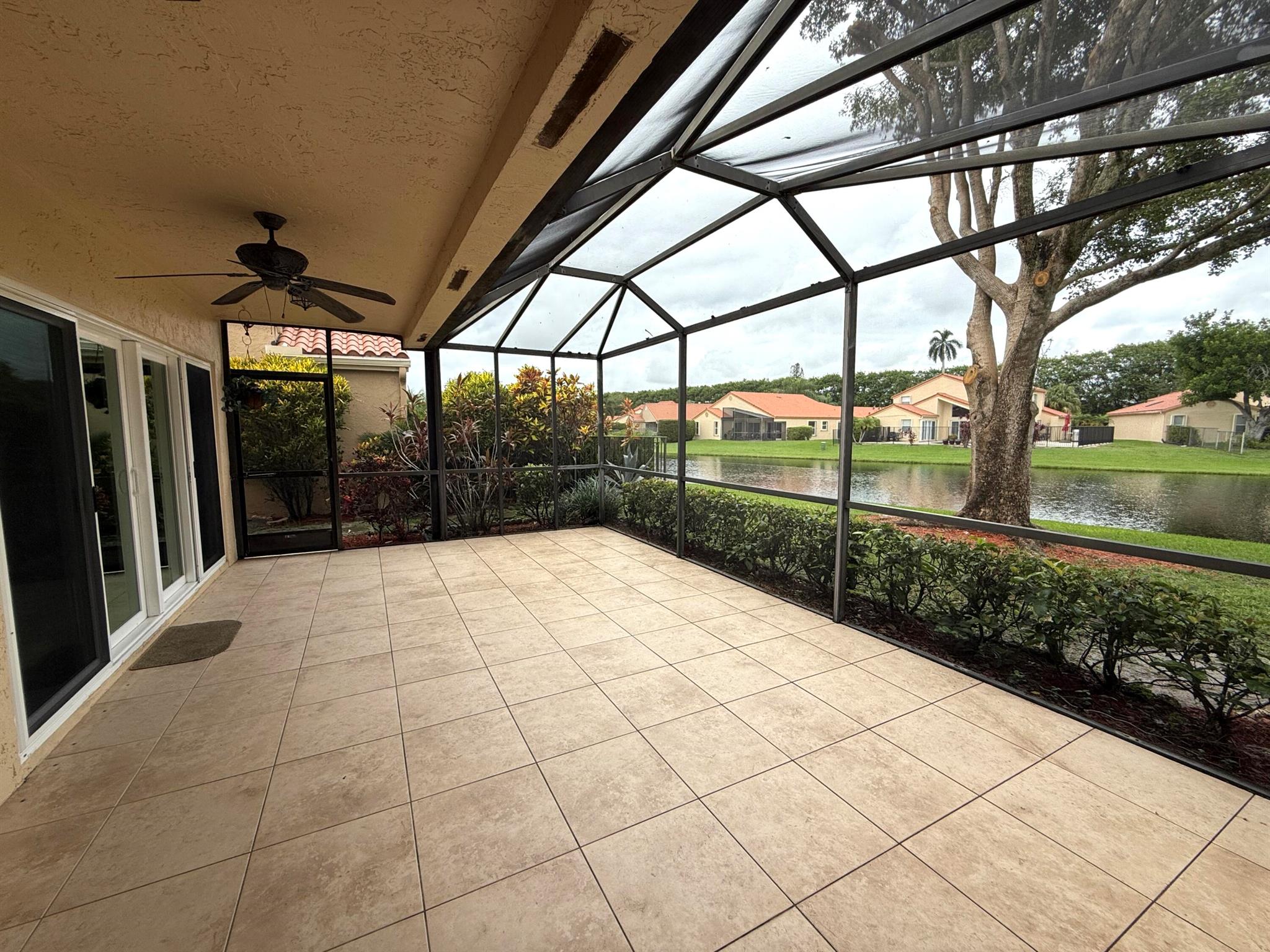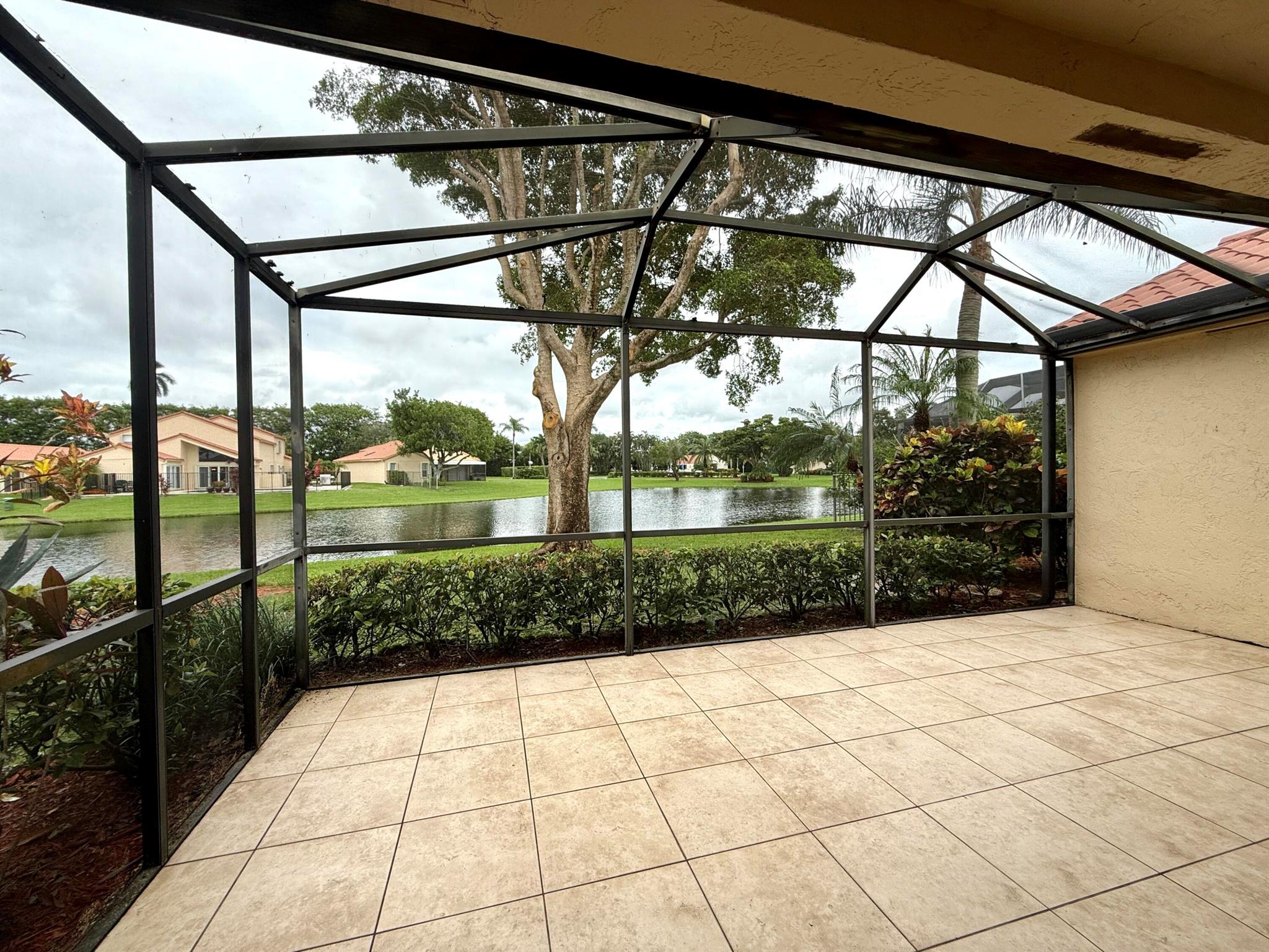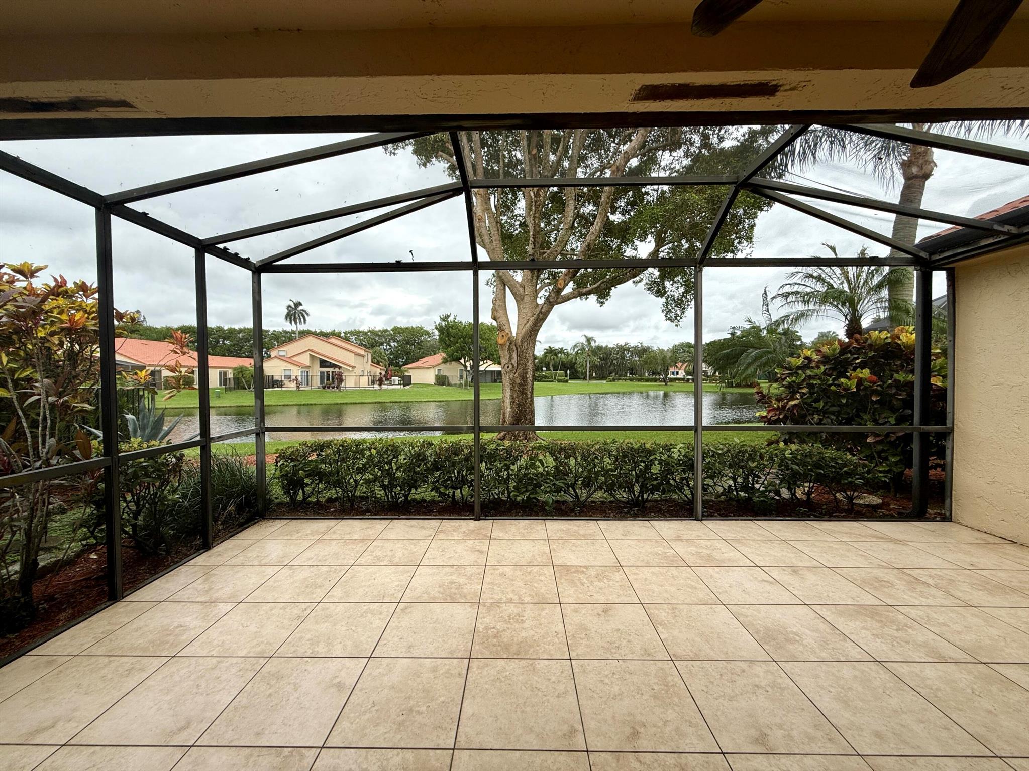 Beautifully updated 3BR/2BA lakefront single family Rosewood model home located in a gated community. Vaulted ceilings, ceramic tiles and laminate flooring. Remodeled kitchen features granite countertops, wood cabinets, white appliances and dinette area. Laundry room has washer, dryer, sink and hot water heater. 2 car attached garage with driveway parking. Central Air conditioning. Hurricane Impact windows/sliding glass doors. Tiled screen enclosed covered patio with wide lake views. Brentwood offers a community clubhouse with social and fitness rooms, pool, tennis courts, satellite clubhouse, pool, basketball/handball courts. HOA fee includes landscaping, Hotwire HDTV/Internet, management fees and painting of houses every 7 years. A rated schools, a wonderful place to call home.