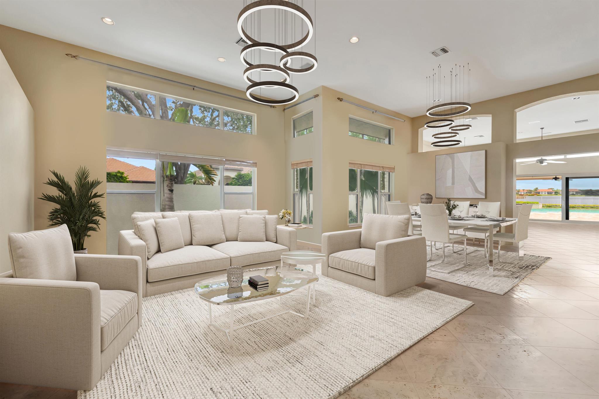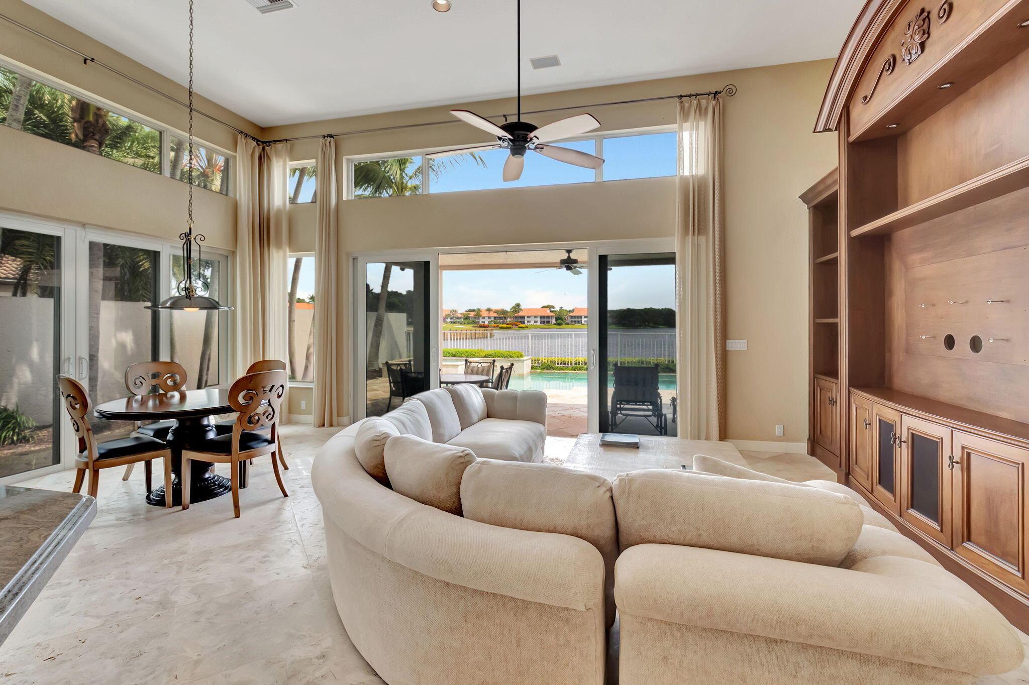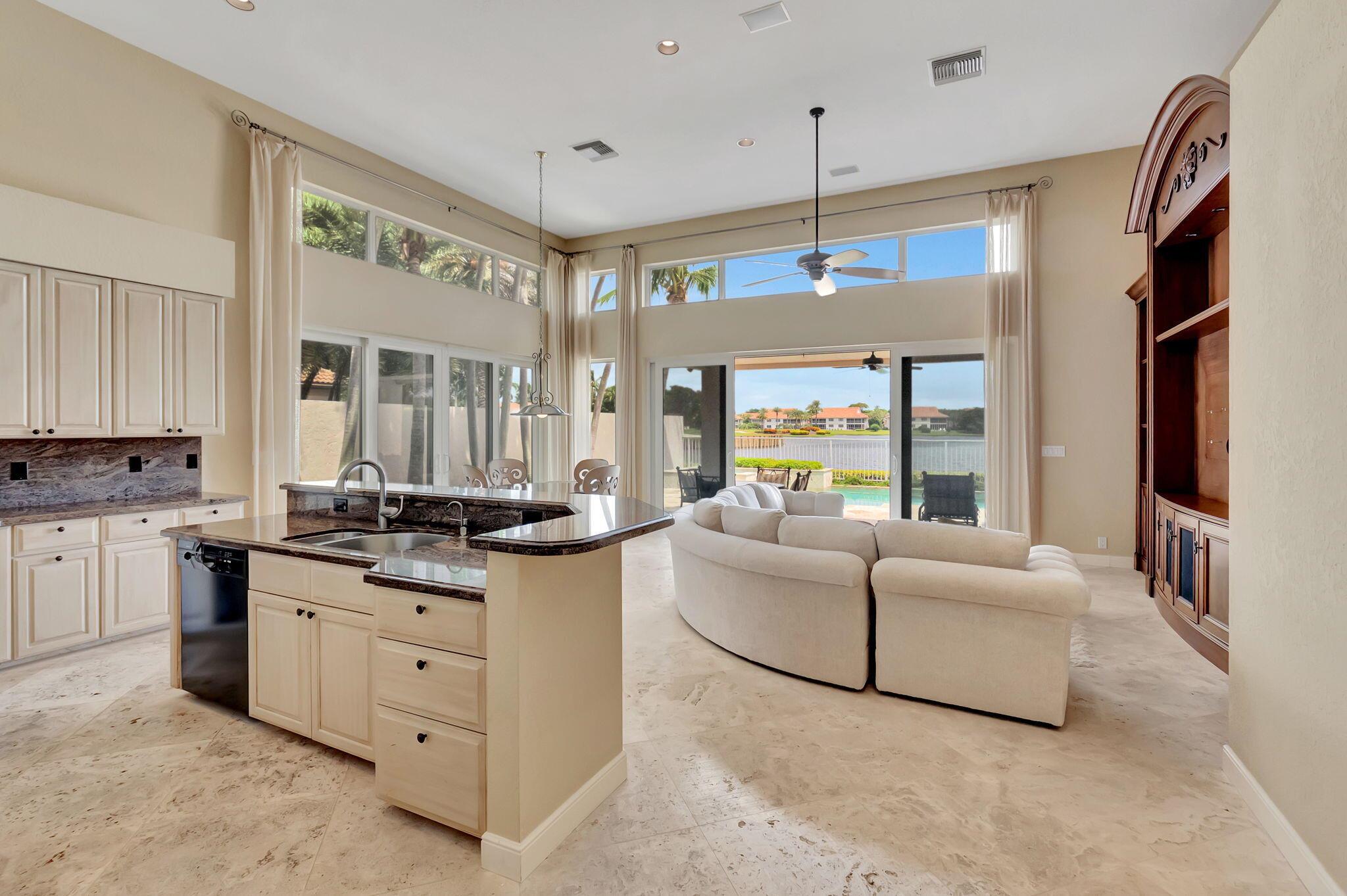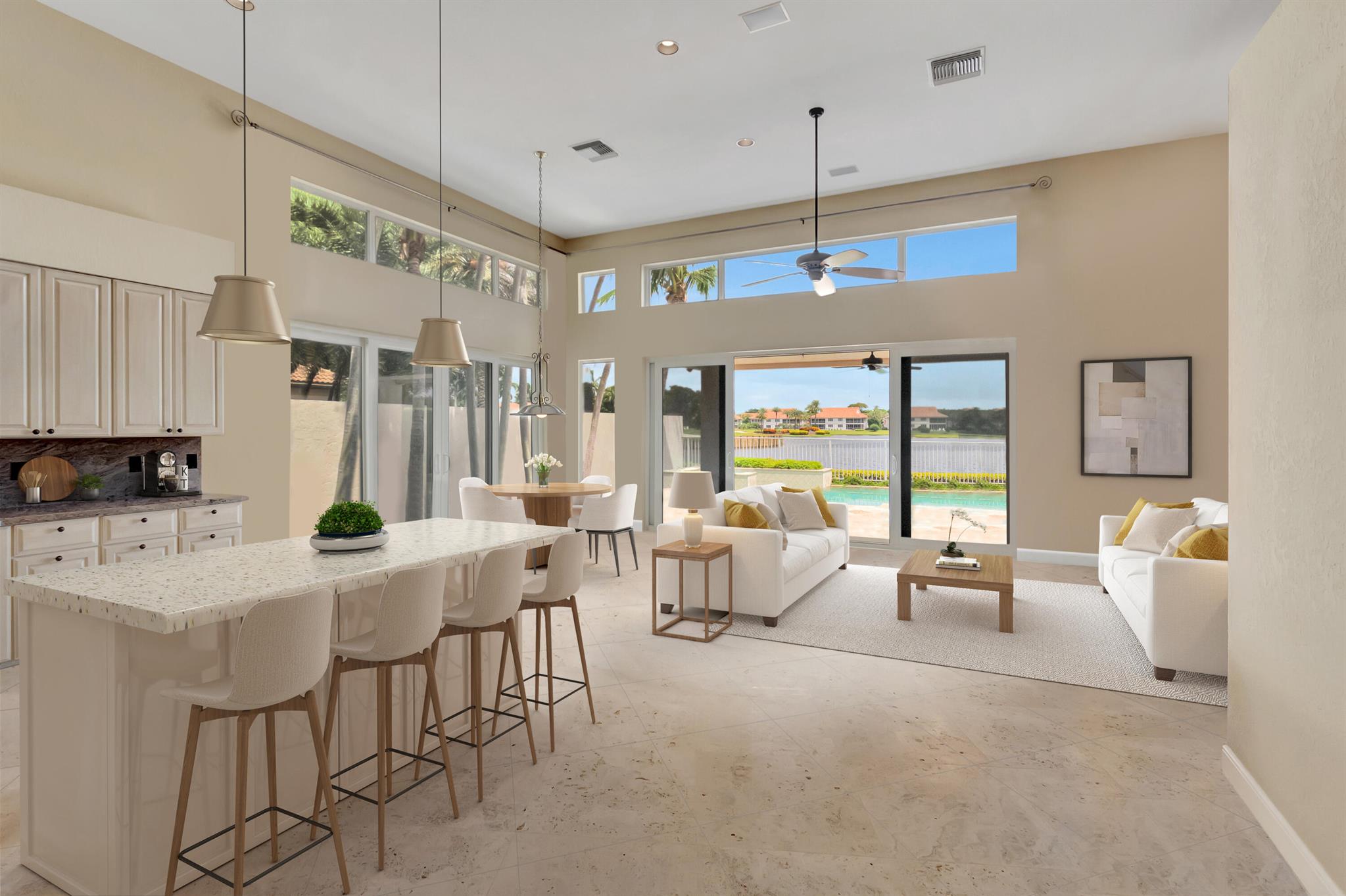 Welcome to this stunning, one-story ranch-style home located in the prestigious village of Bay Isle within the Broken Sound Country Club. Boasting 3 spacious bedrooms, 3 full baths, and a generous 2,866 square feet of living space, this exceptional residence is on the market for the first time ever with some of the best views Broken Sound has to offer. As you step inside, you'll be greeted by an open and inviting floor plan that seamlessly blends elegance with comfort. Large impact windows & doors fill the home with natural light, offering breathtaking views of the tranquil lake and the pristine golf course just beyond your backyard. Perfect for both everyday living and entertaining, this home features a spacious living area, & open kitchen with center island. The oversized master