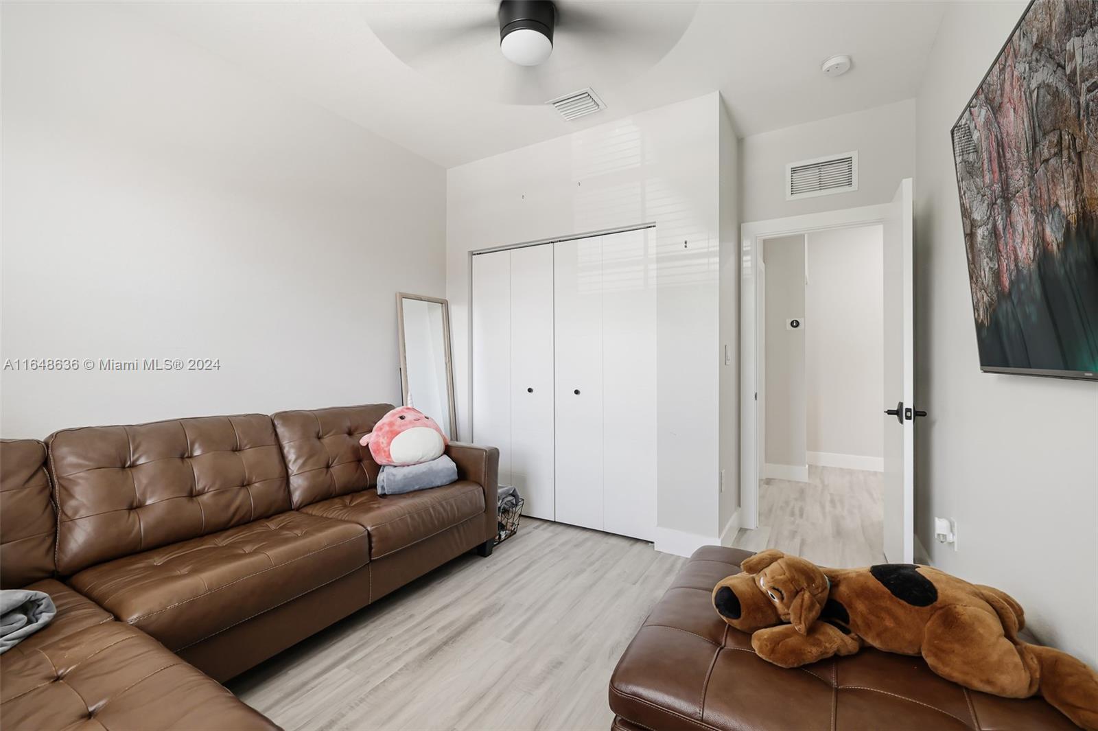 Looking for the perfect home that nothing needs to be done? Look no further, this home features 4 Bedrooms, 2 1/2 Baths one car garage. Completely remodeled and tastefully updated, with an amazing backyard. The backyard has 6 foot privacy fence, a pergola with a T.V., just perfect for family gatherings, bar-b-que and enjoying a game. Gated community with plenty of visitor parking, club house, pool, gym, 24Hrs security rovers and the association cuts your grass