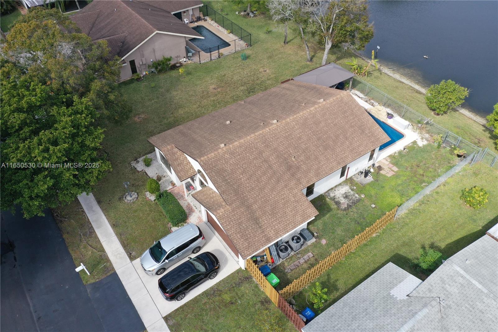 Welcome to your dream home where comfort meets luxury in this beautifully updated property!This residence features 3 spacious bedrooms and 2 modern bathrooms.BONUS 4TH ROOM/OFFICE/DEN W/CLOSET.The expansive two-car garage offers ample storage.Enjoy breathtaking pool and lake views from your backyard oasis, complete with a charming 10ftx20ft cedar gazebo—perfect for relaxing afternoons near the sparkling pool. The home's roof was replaced in 2018 with high-quality plywood, ensuring durability and peace of mind. Inside, revel in the tile flooring, renovated bathrooms, and stylish baseboards that add a touch of elegance.Hurricane-rated front/garage doors,newer fridge,and newer pool motor/timer/filter.Painted exterior 2022,2024 wood fence, professionally cleaned AC ducts/dryer vent. A/C 2024
