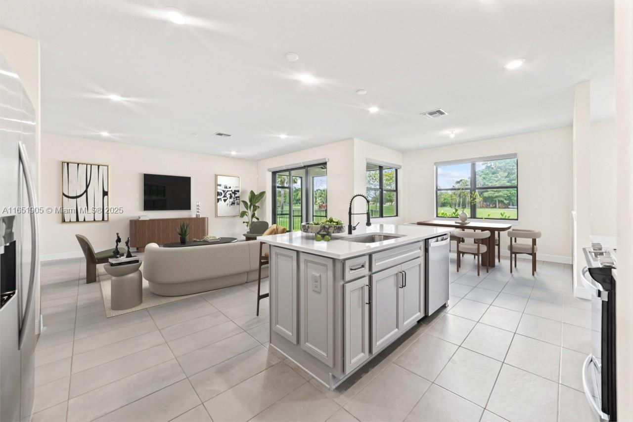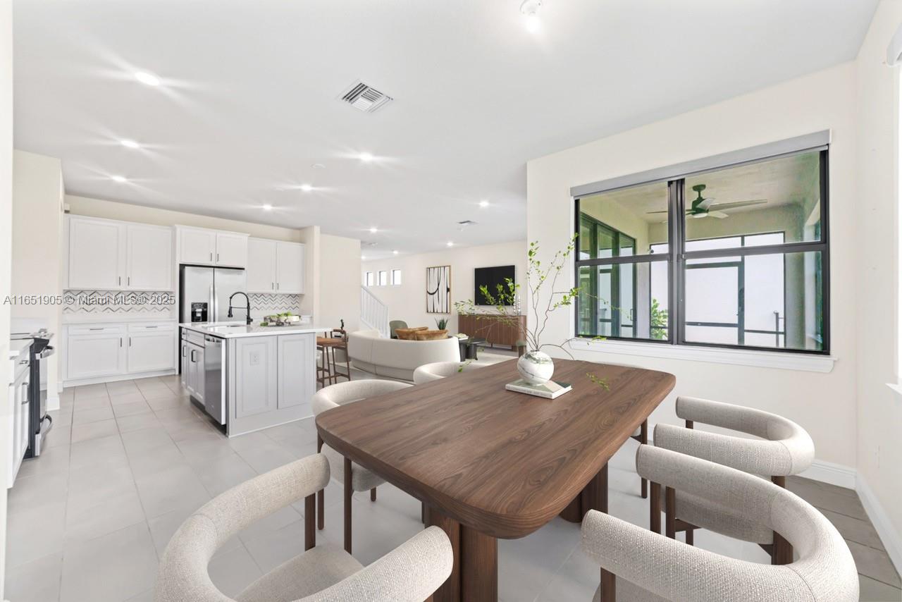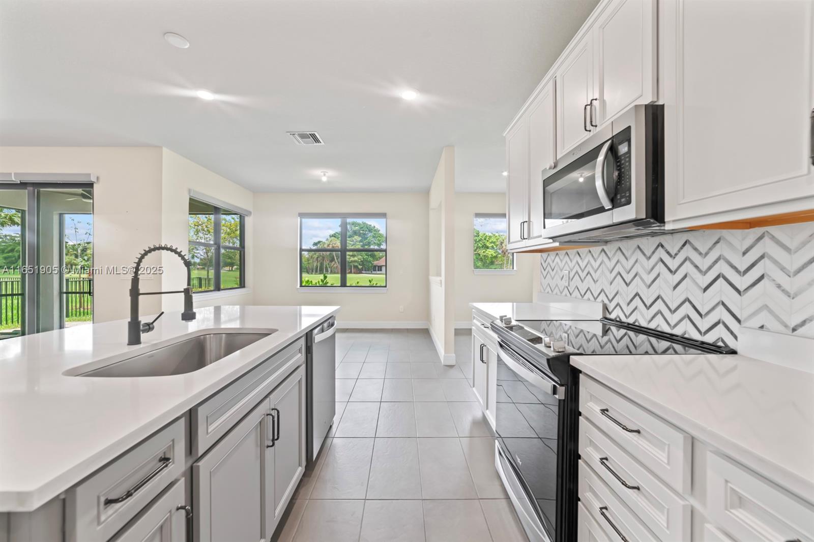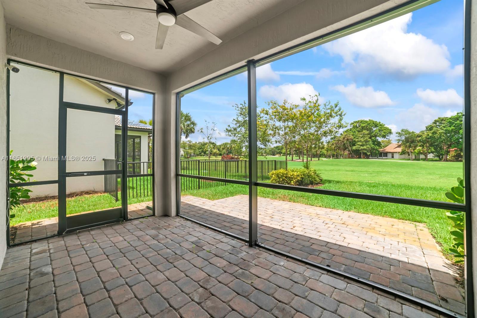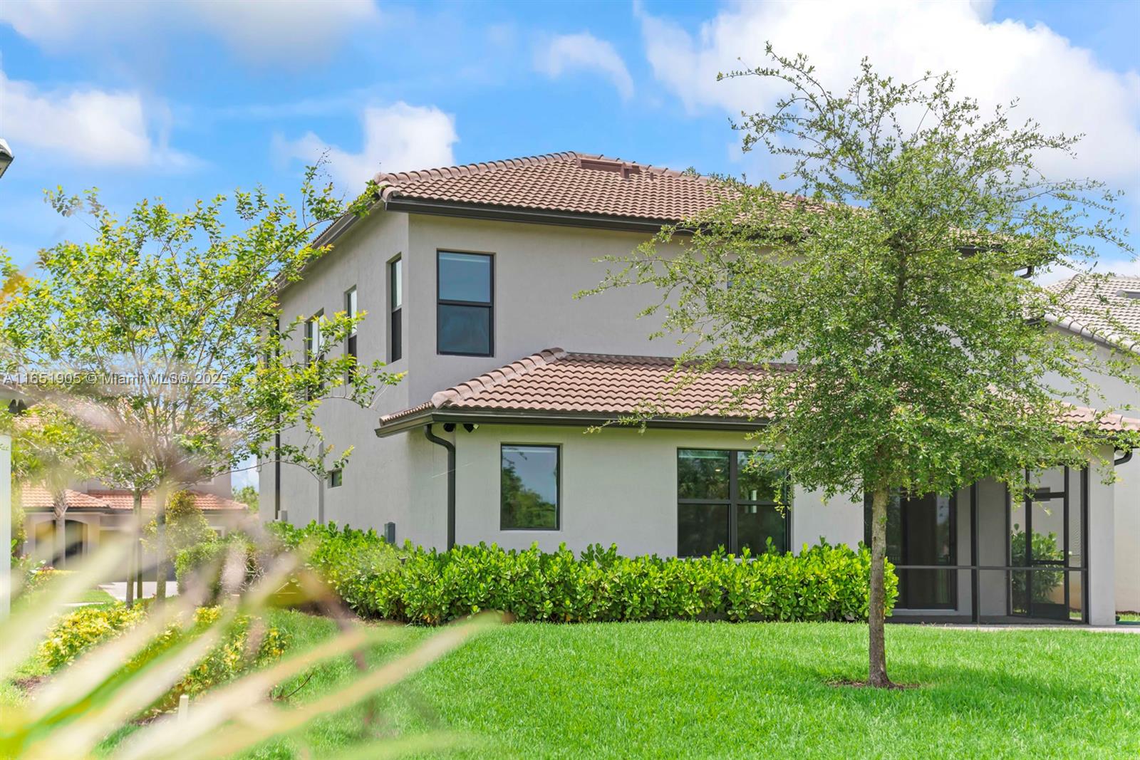 Golfer's dream home!! Welcome to The Enclaves at Woodmont, where modern elegance meets spectacular golf course and lakes views. This rare, expanded model offers 4 bedrooms + office-den; 2 full bathrooms & half bath, 3270 sq ft of comfort and style. Built in 2022 by Pulte Homes, the property is a truly move-in read. Designed for today's lifestyle: a chef kitchen with oversized island with bar seating, custom cabinetry, and stainless-steel appliances. Features include impact windows, walk-in closets, window treatment and plenty of storage. Step outside to the covered patio with breathtaking golf views and room to build your dream pool! HOA includes landscaping and social membership to Woodmont Country Club, with access to resort style amenities: pool, gym, golf, tennis, restaurant and more.