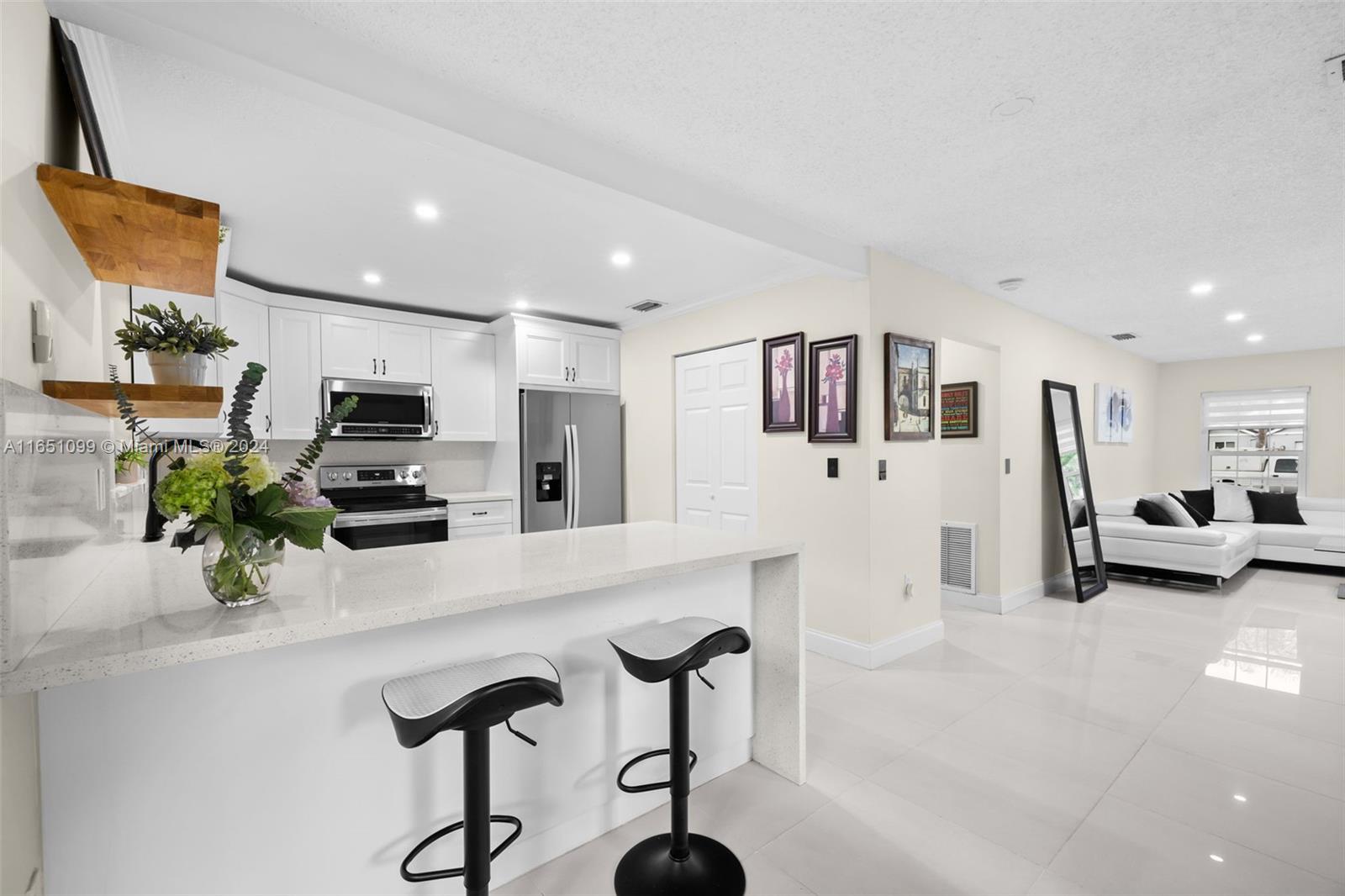 Nestled in the serene sought-after Hampton Lakes in Sunrise, this stunning two-story home offers a perfect blend of comfort and style. The first floor features elegant white ceramic flooring, impact windows with SolarMax energy efficiency, a beautifully remodeled kitchen with sleek white cabinetry and quartz countertops, complemented by a convenient half bath. The second floor to discover three spacious bedrooms with laminate flooring, including a master suite with a walk-in closet, and two full bathrooms. The expansive fenced backyard with pavers is perfect for entertaining and enjoying the outdoors, while the brand-new roof, backed by a 10-year warranty, ensures peace of mind. With an unbeatable location near major highways and top-rated schools, this home is a true gem for any family.